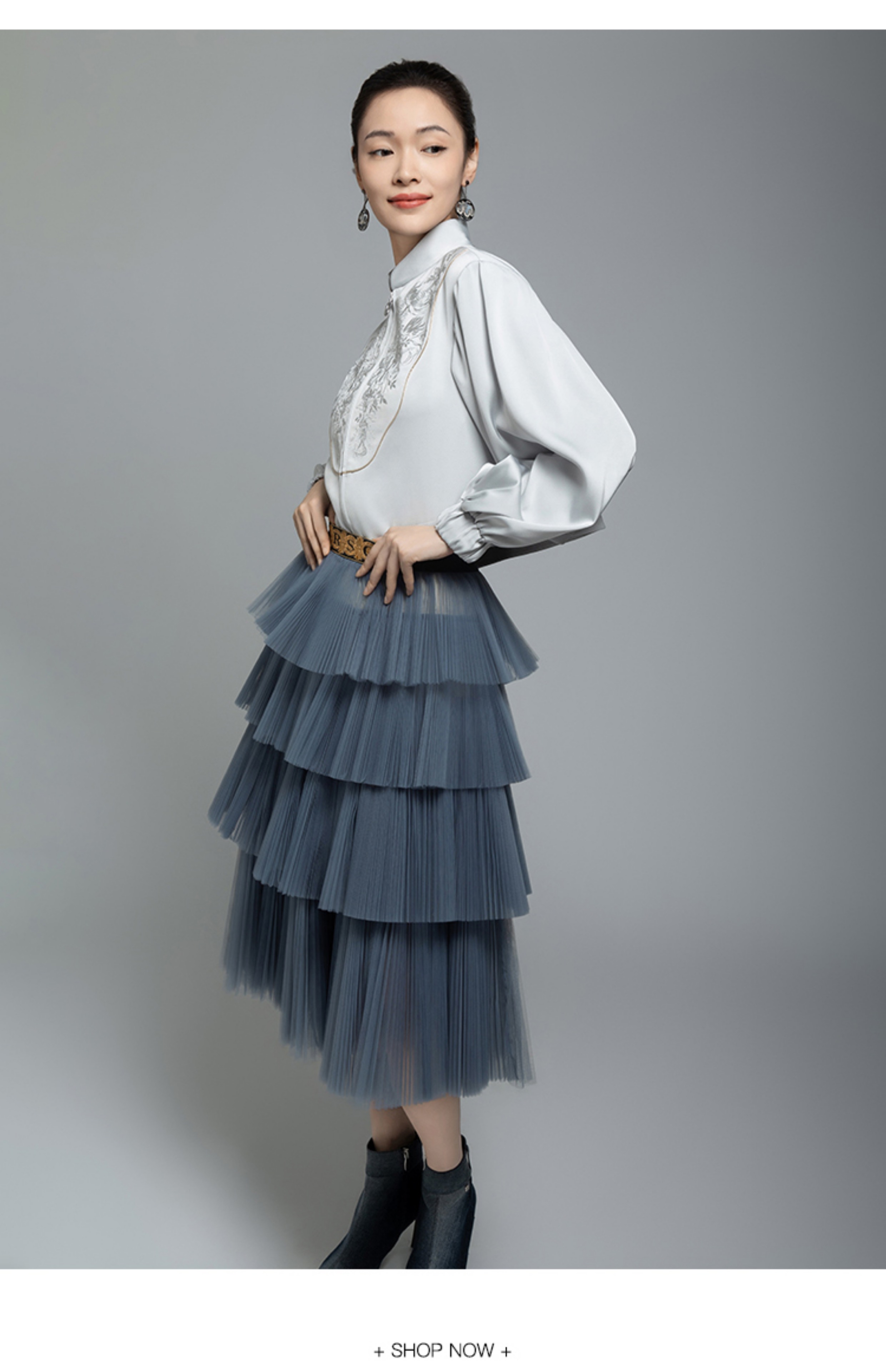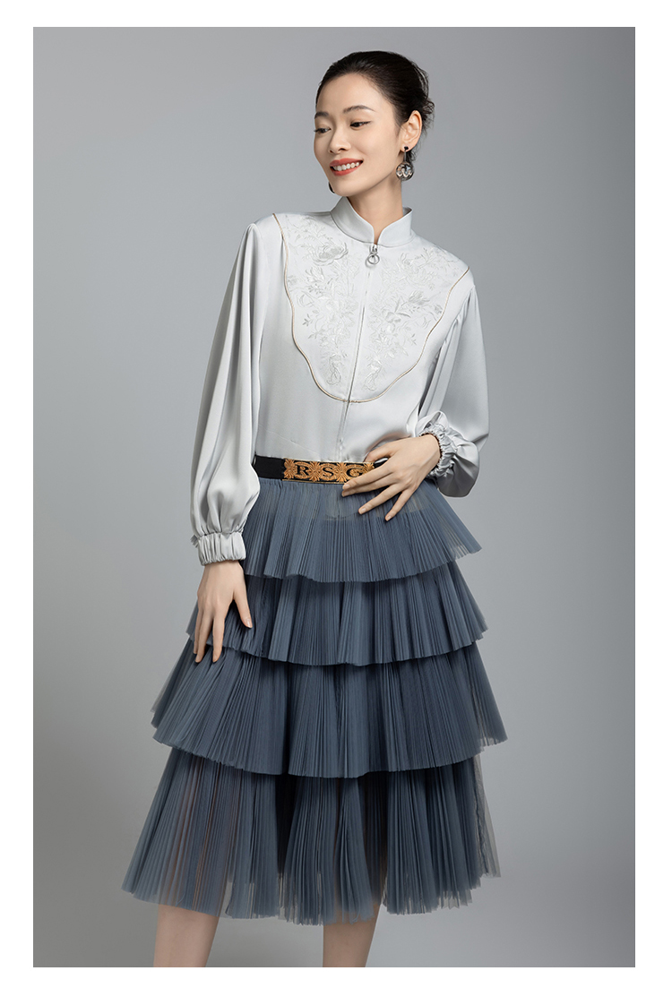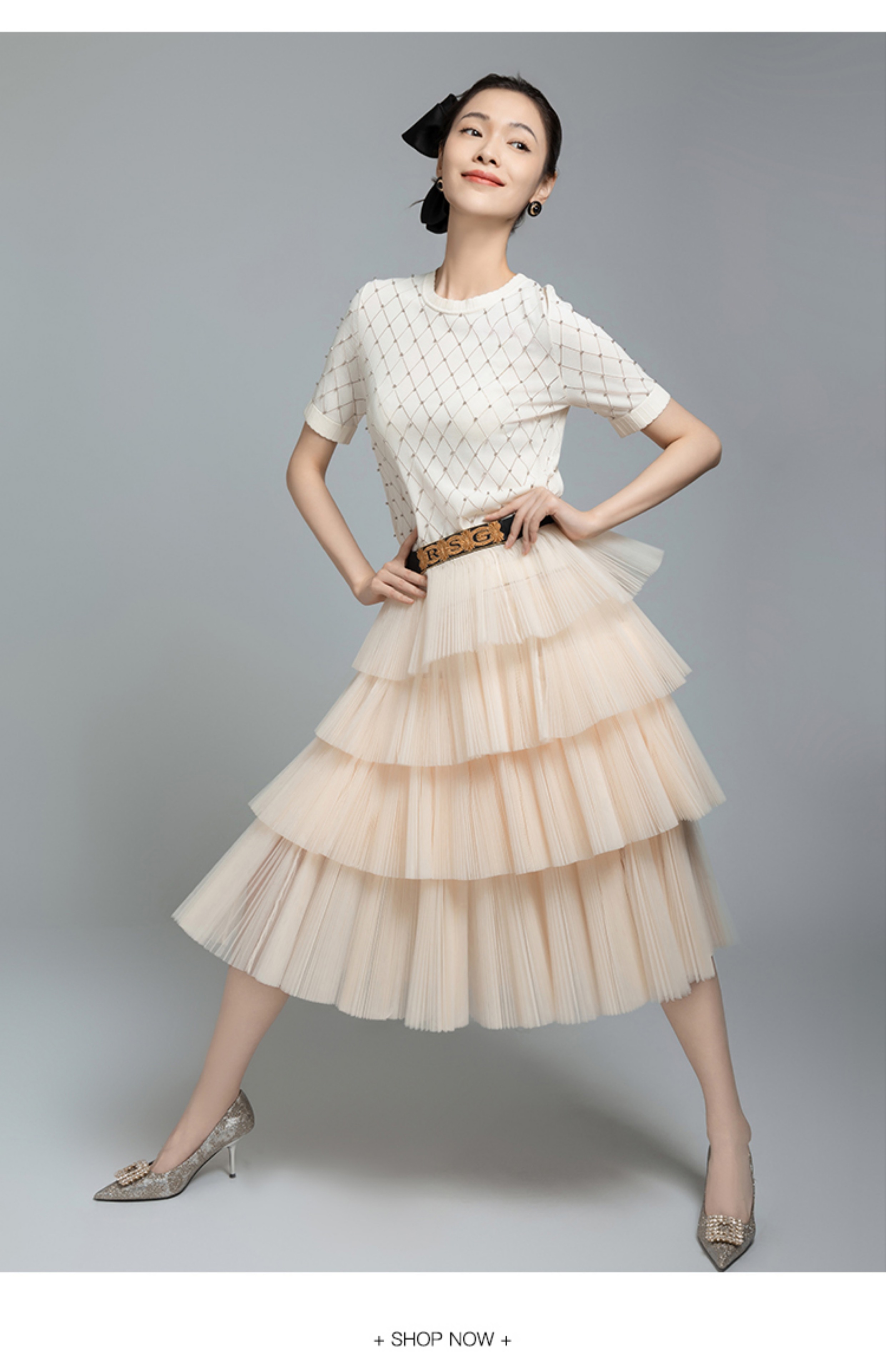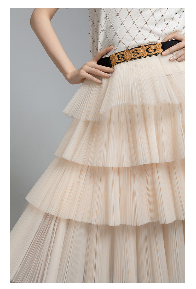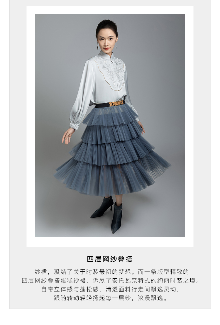 郭培成衣品牌马卡龙色法式宫廷复古风层叠纱裙