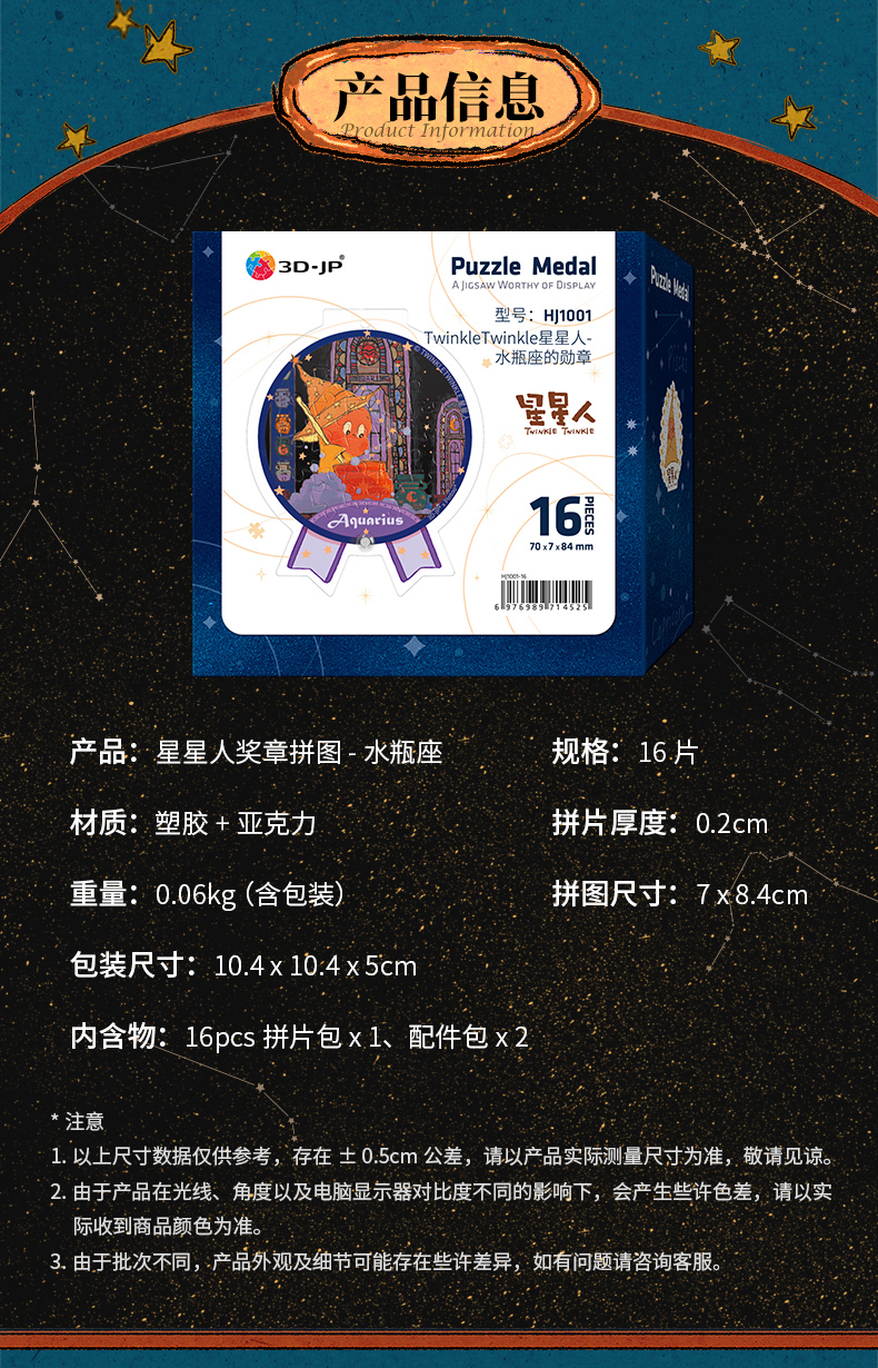 16片 奖章拼图 HJ1001 TwinkleTwinkle星星人-水瓶座的勋章