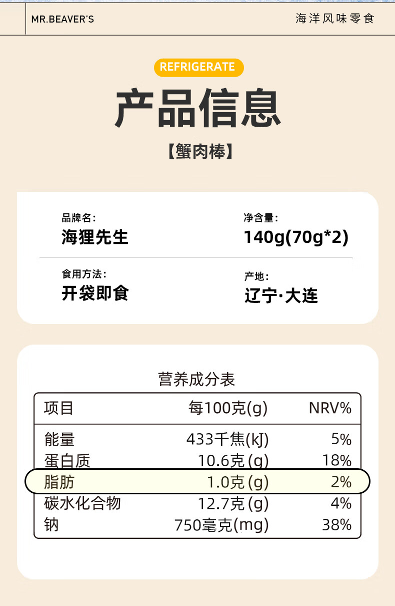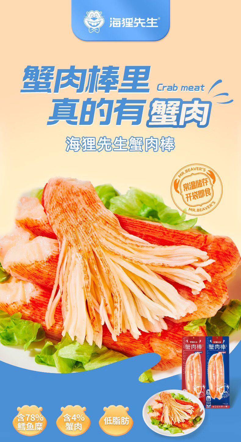 【分仓直发包邮】海狸先生原味蟹肉棒140g*5袋