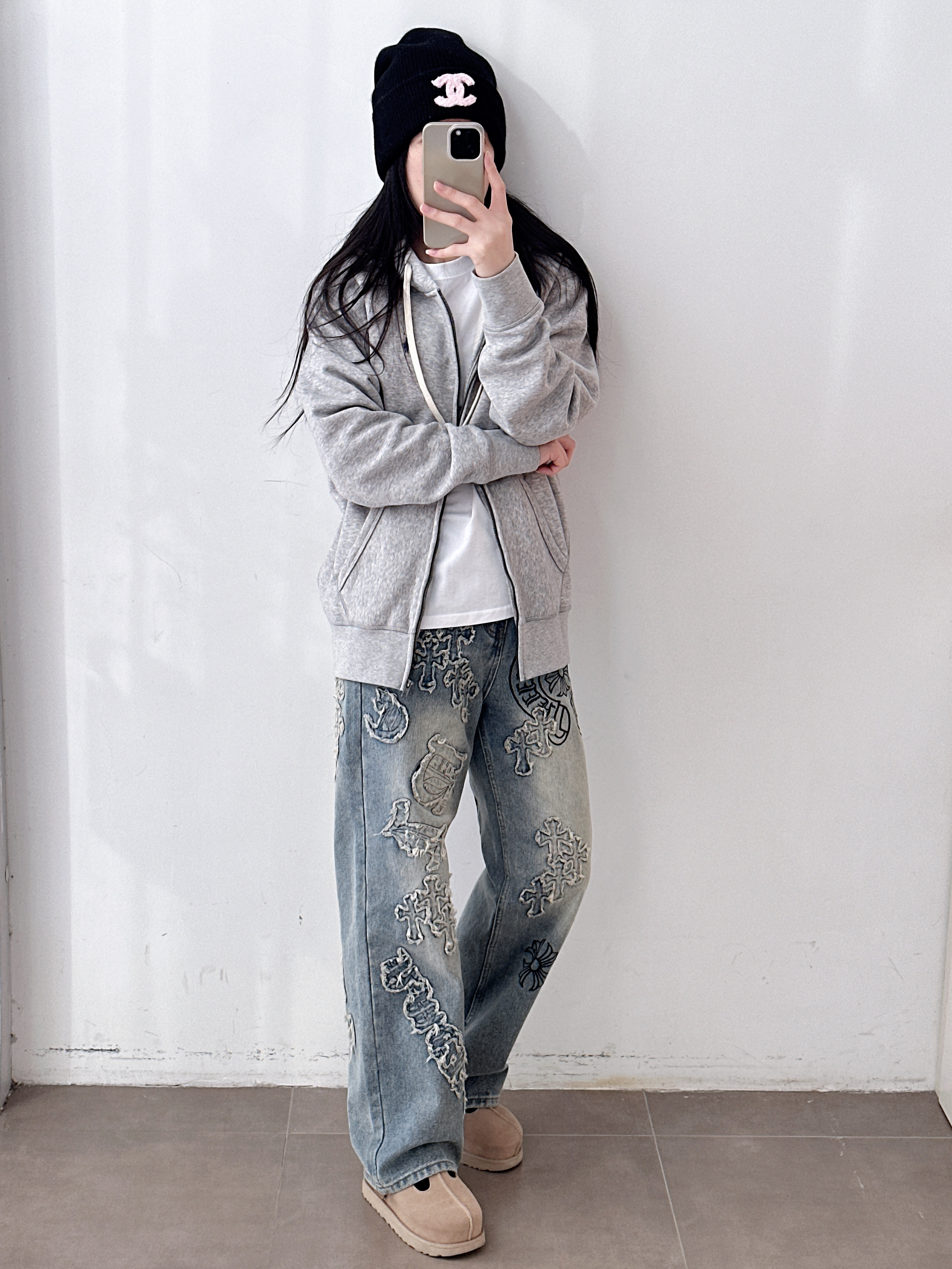 毛边高腰直筒牛仔裤弹力显瘦烟管裤女