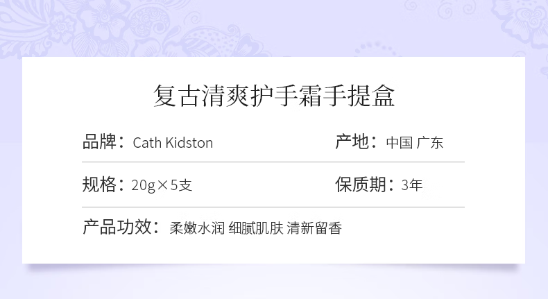 英国CATH KIDSTON复古清爽护手霜手提礼盒 5款 奢香持久留香 20g*5支