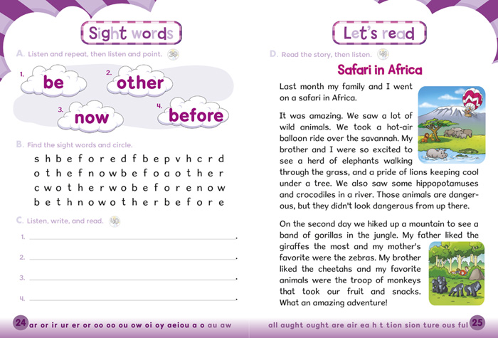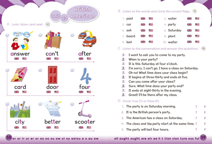 与表意的汉字不同,英语为表音文字,即英语单词的发音与其拼写形式之间存在的规律性,例如:boat,float,soap 等单词里字母组合oa 的发音和拼写是相同的。通过系统的学习与训练,掌握了上述拼读规律的学习者在看到一个新的单词,如road 时,便可读出其发音/road/,或者在听到发音/road/时,即可写出其拼写r-o-a-d,这即是我们通常所说的见词能读、听音能写的能力。此种能力不仅可以帮助孩子更加迅速、有效地认知并记忆单词,更有助于初学英语的孩子以一种*直接的方式(而不是借助另一套符号体系,如国际音标等)搭建起英语单词的发音、词形和词意三者之间的联系,从而为其用英语进行阅读和写作奠定了*初的基础。“丽声瑞格叔叔自然拼读法”的作者以丰富的英语教学及教师培训经验为基础,从初学英语的亚洲孩子的角度设计编写该系列图书,遵循由易到难、由浅入深、由一般到特殊的规律,完整、系统、科学地教授了自然拼读法,并结合多样、实用、有创意的游戏活动和歌曲歌谣,让孩子循序渐进、轻松快乐地掌握并运用英语读写的基本技能。“丽声瑞格叔叔自然拼读法”共分五个级别,每个级别含学习用书、活动用书、CD光盘、CD-ROM或DVD-ROM互动课件、字母卡、拼读卡等学习资源。