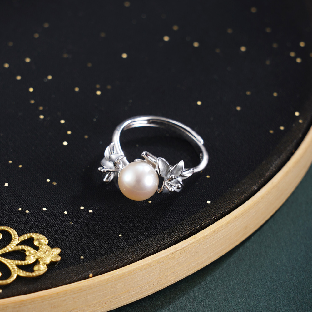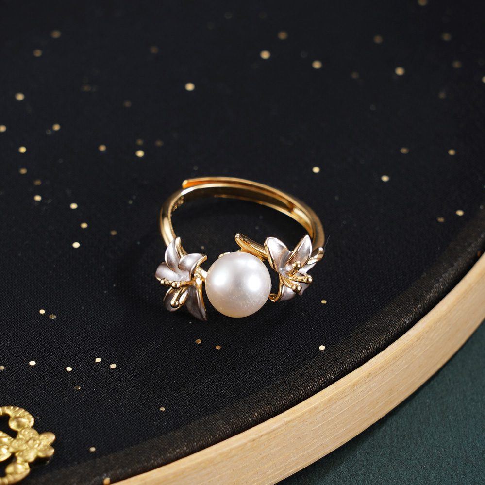 子佩集【浓情花语】银S925珍珠惜王妃戒指【R1808】双色百合花2602