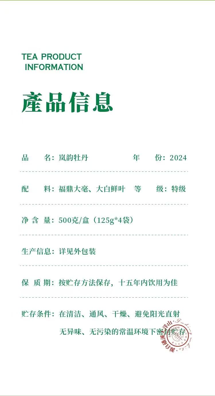 福鼎白茶 | 2024年一叶九鼎 大洋山 高山岚韵牡丹 500g