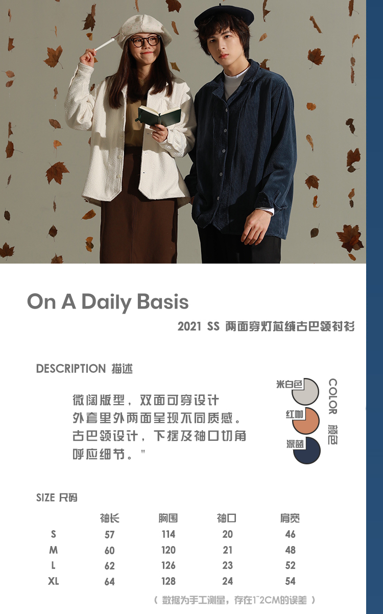 OADB/A14413A003/两面穿灯芯绒古巴领衬衫