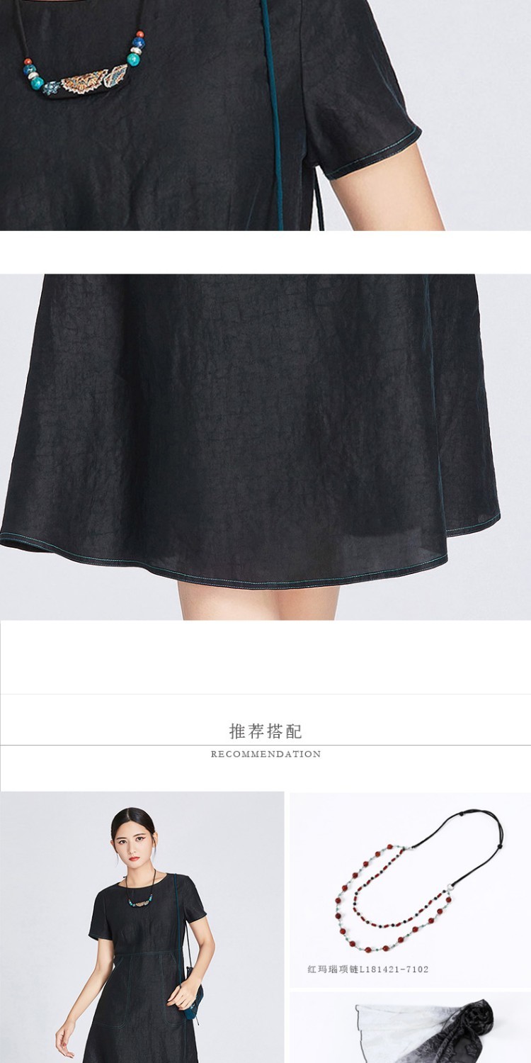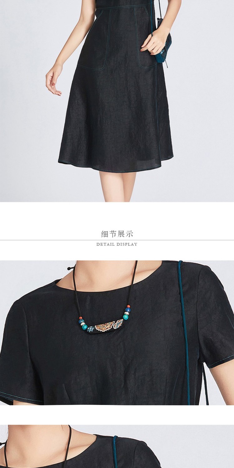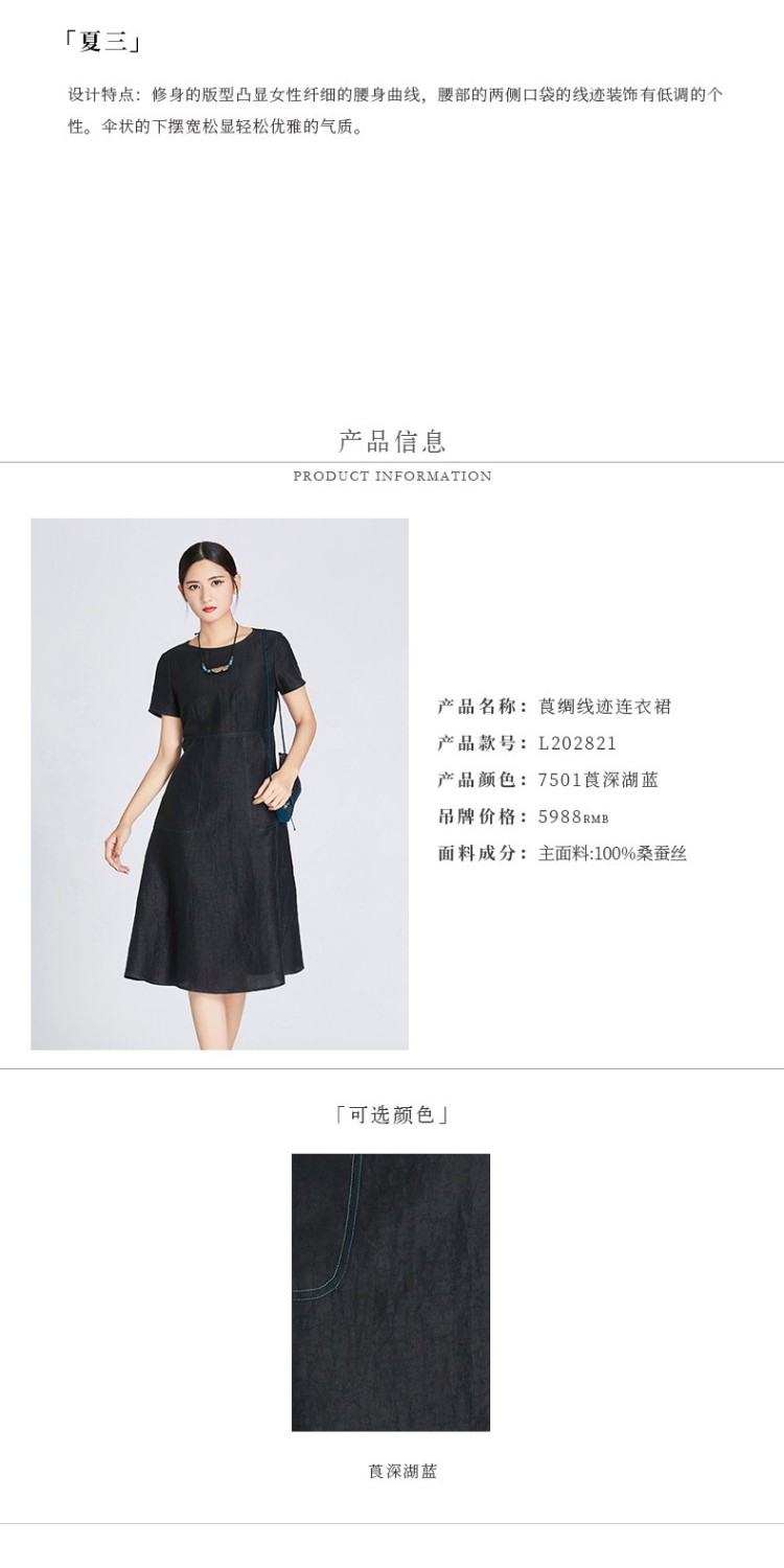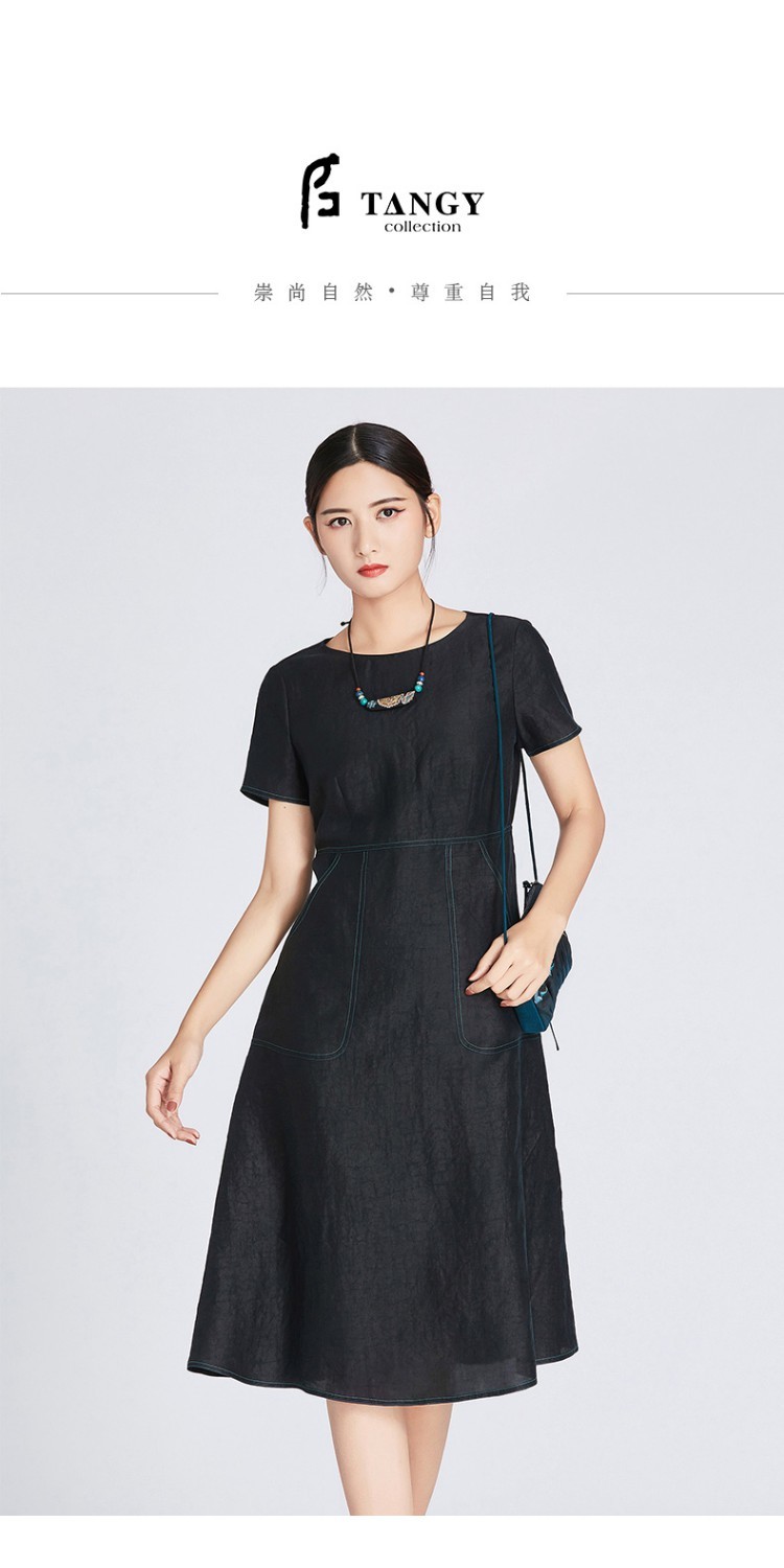 TANGY Collection/天意精品夏季新品香云纱圆领真丝线迹莨绸连衣裙
