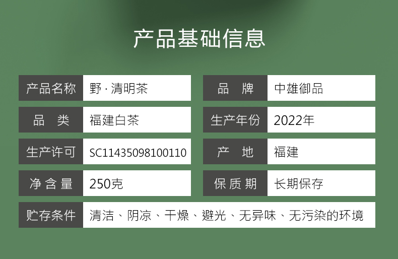 白茶丨中雄御品 2022年 野·清明茶 250克