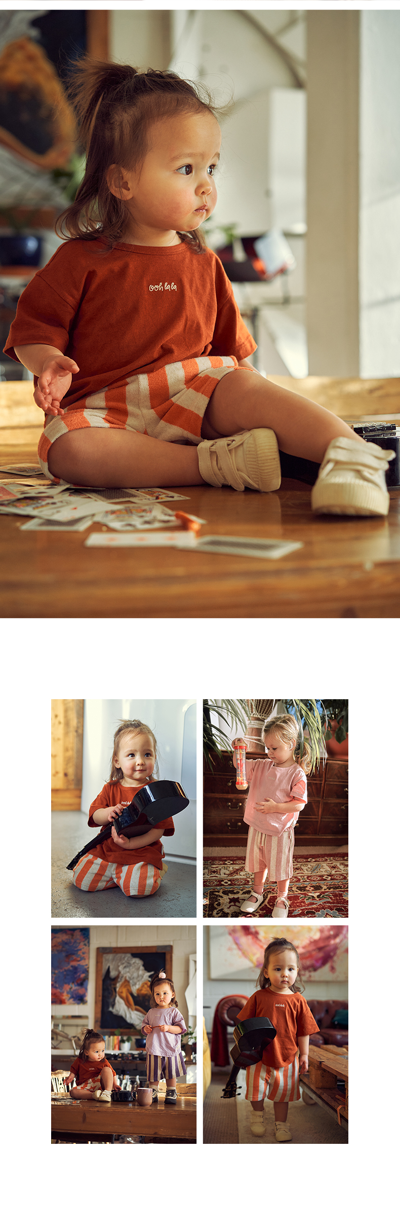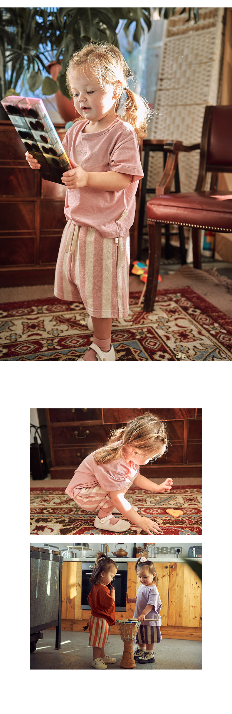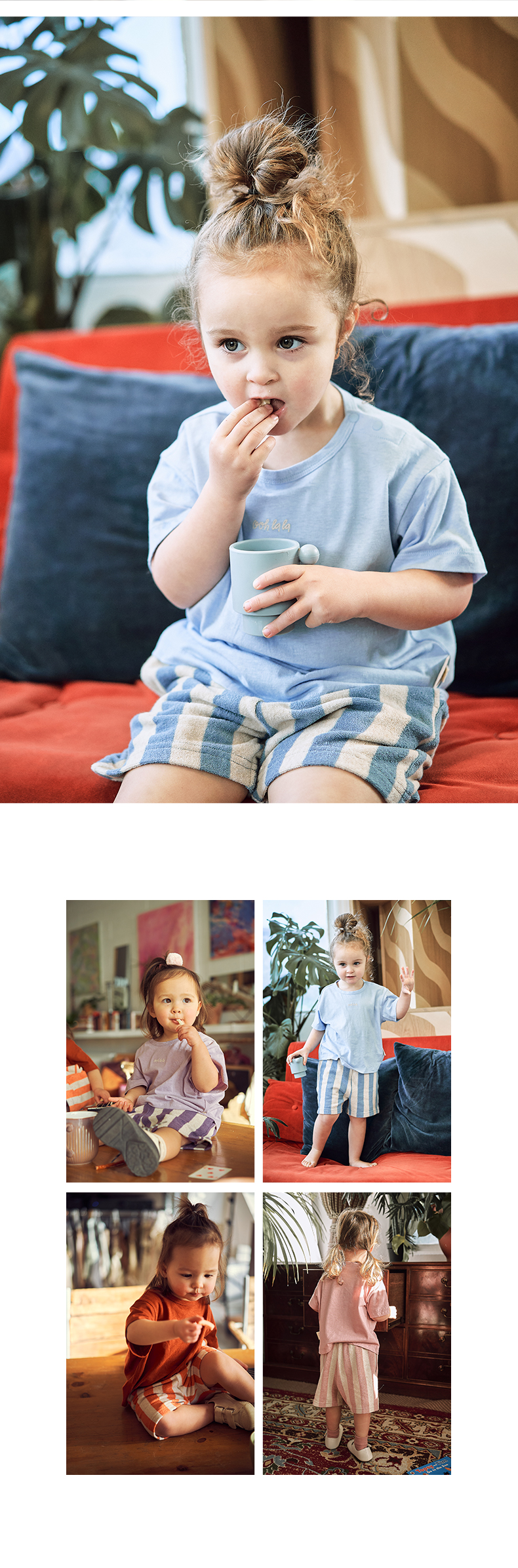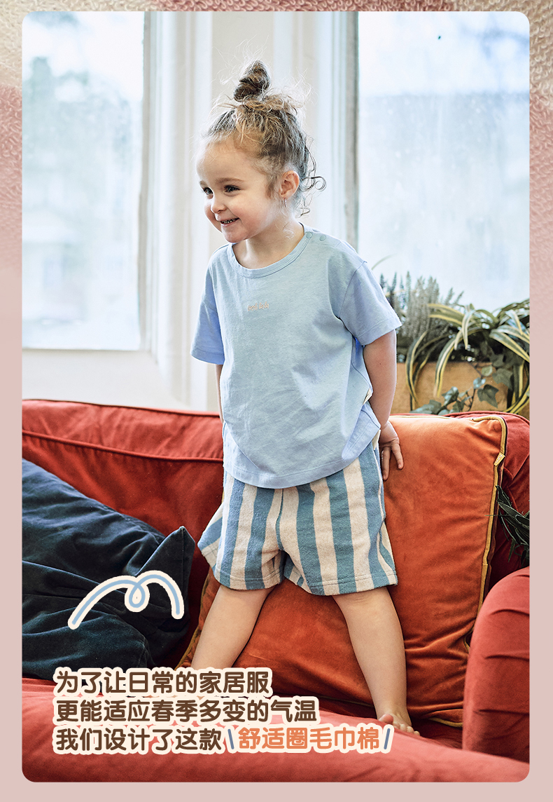 【云优选】lelejove北欧风25春夏儿童短袖T恤亚麻混纺透气T恤毛巾料条纹短裤