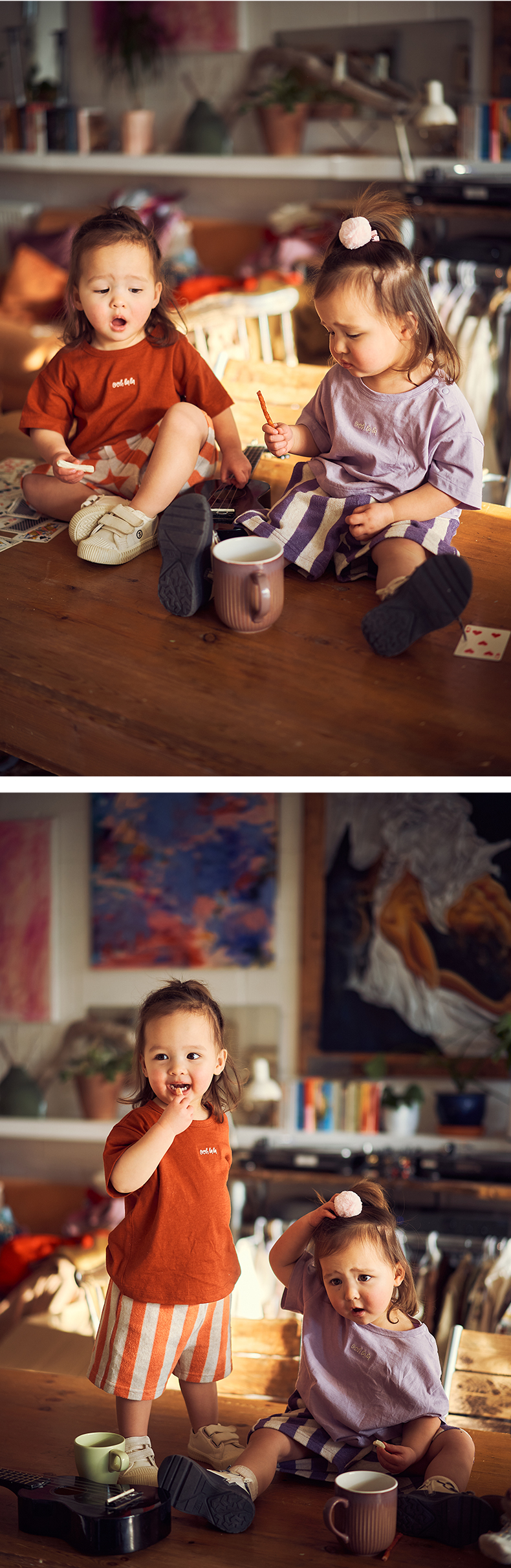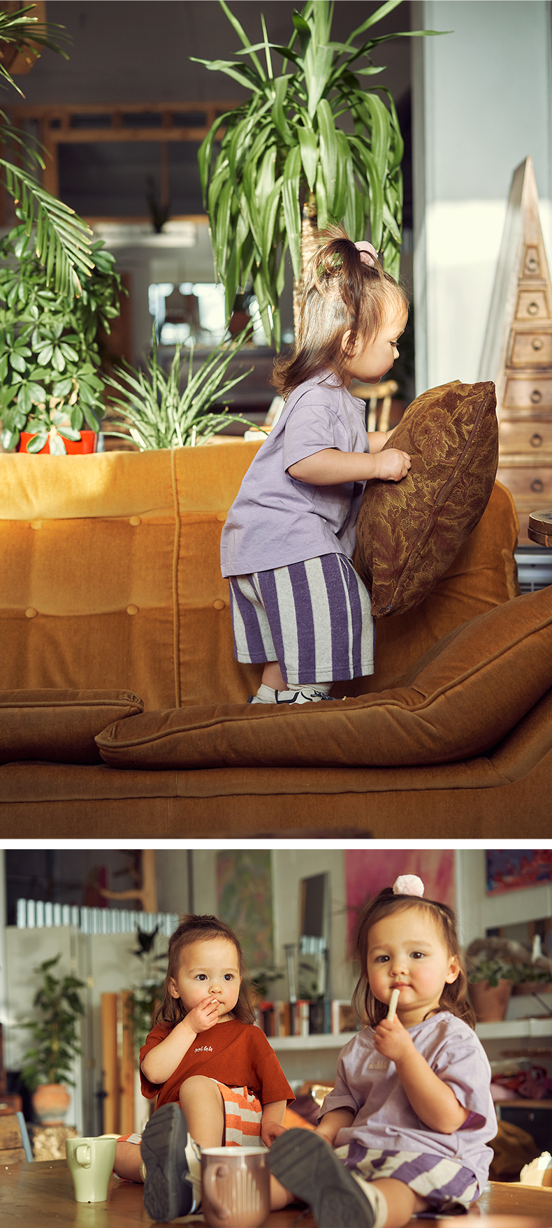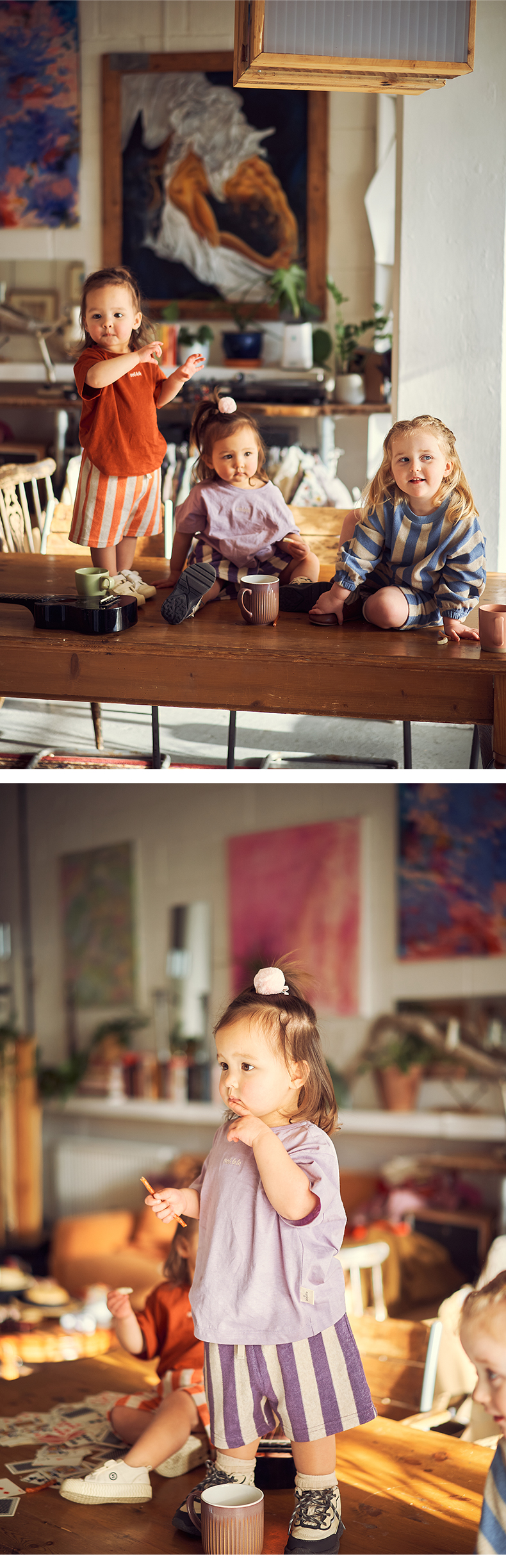 【云优选】lelejove北欧风25春夏儿童短袖T恤亚麻混纺透气T恤毛巾料条纹短裤