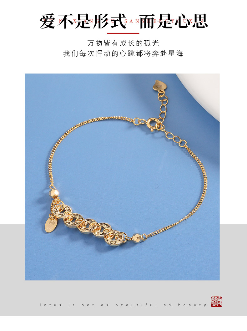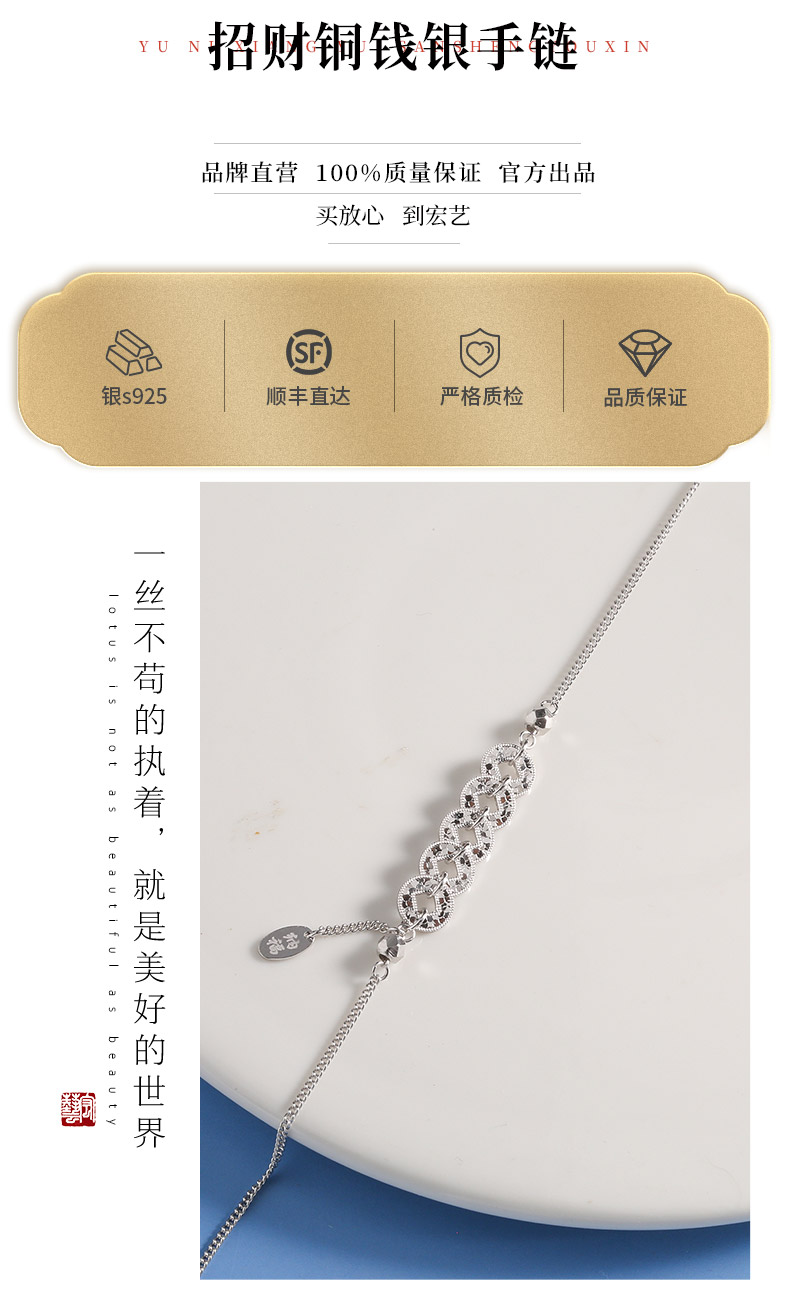 【宏艺珠宝】招财铜钱·银s925手链