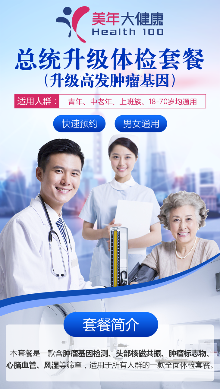 美年大健康总统升级体检套餐,尊享VIP一对一服务,全身160项精准检查