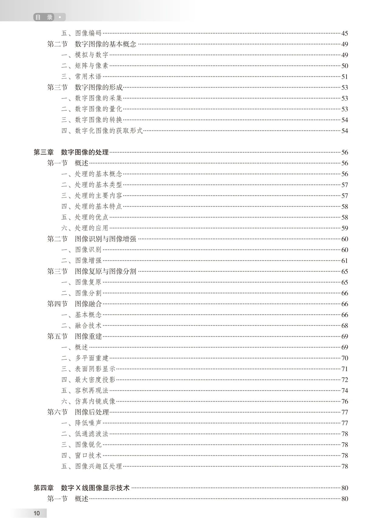 全书内容紧跟数字X线成像技术学新技术日新月异的发展步伐;追踪数字X线成像技术学亚学科的新理论、新方法及新技术;强化数字X线成像技术学的学科交叉性、融合性和前沿性特性;强调以临床实际问题为导向,忠实专业,高于专业,研究专业及其交叉学科,最后回归和服务专业的指导思想。
