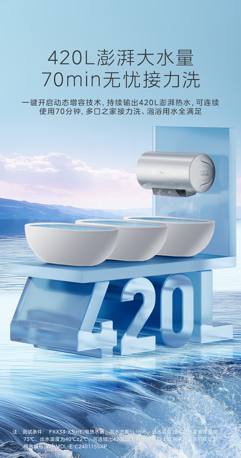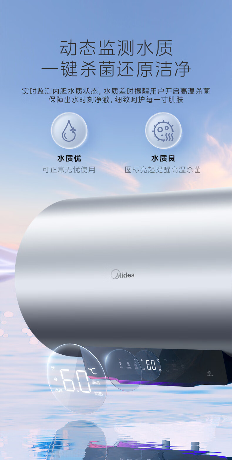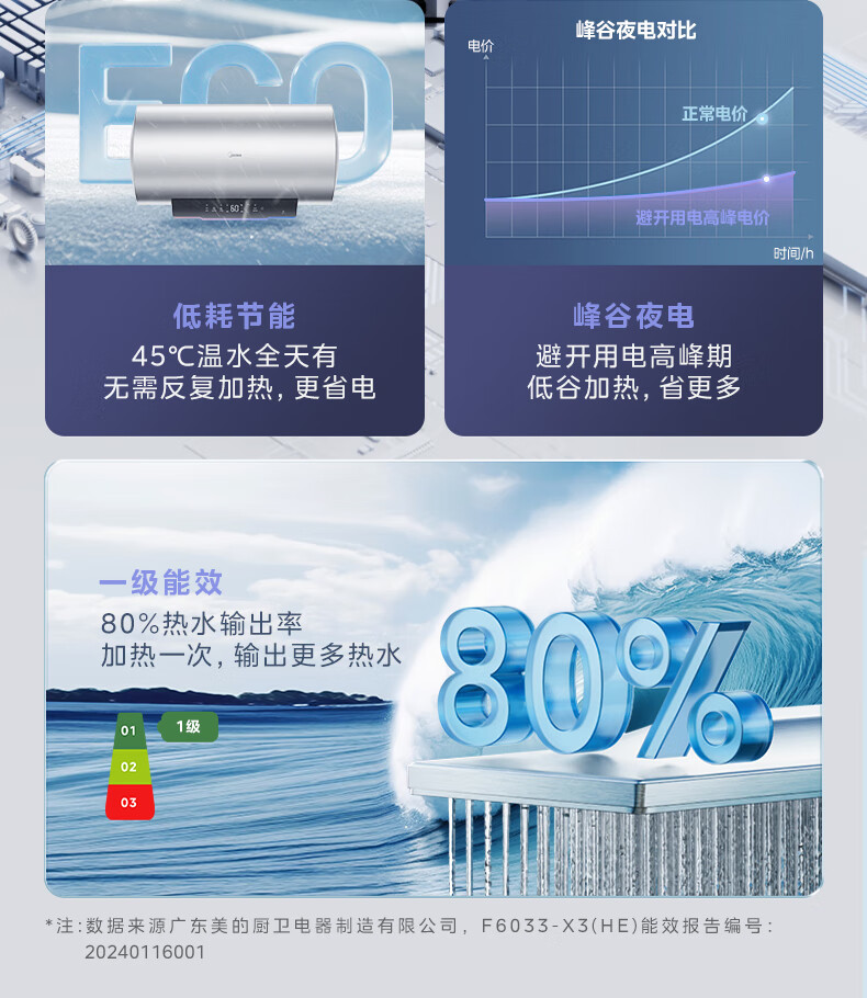 美的电热水器100升一级能效节能省电家用大容量储水式3300W热水器