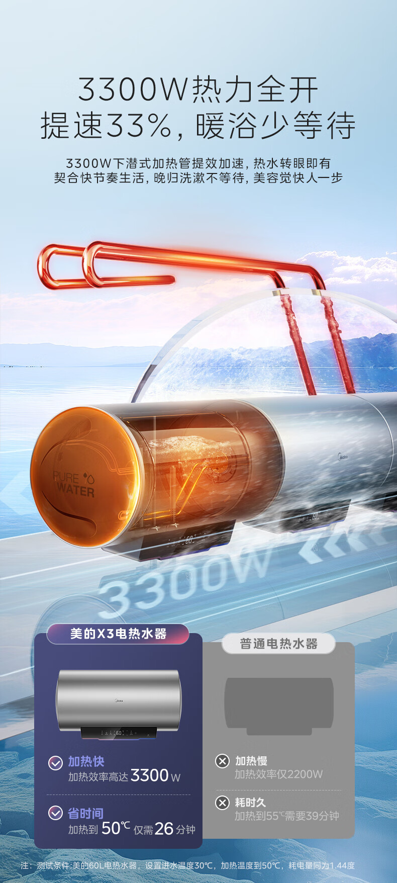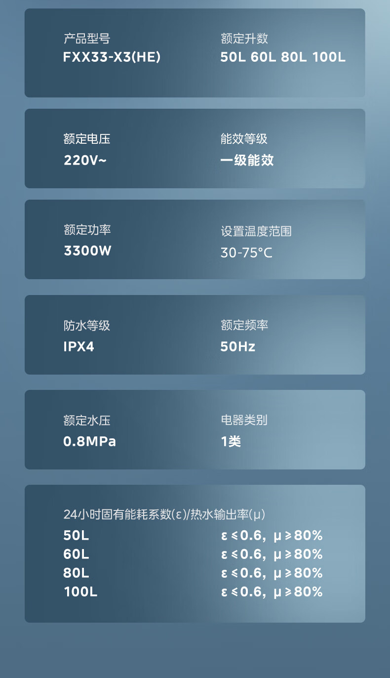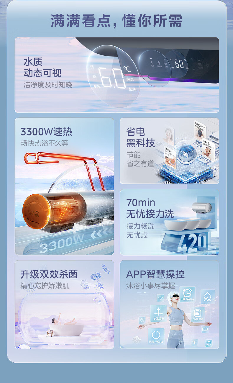 美的电热水器100升一级能效节能省电家用大容量储水式3300W热水器