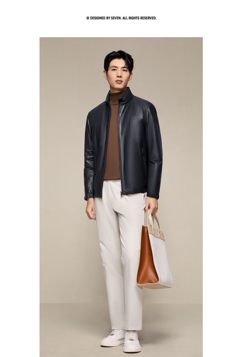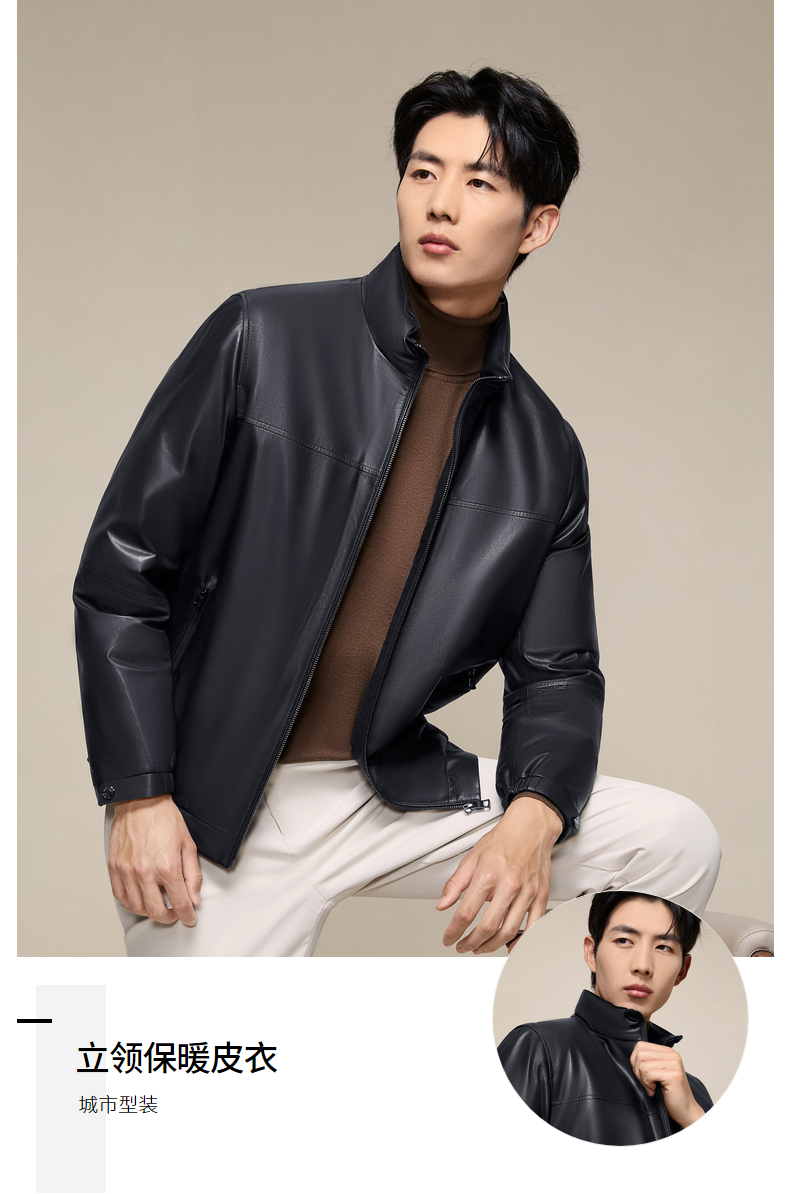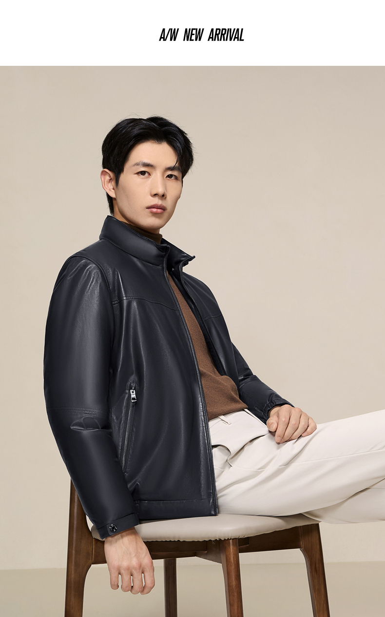 【高端系列/轻薄山羊皮/85鹅绒】柒牌立领商务厚款防风真皮皮衣男129J70630