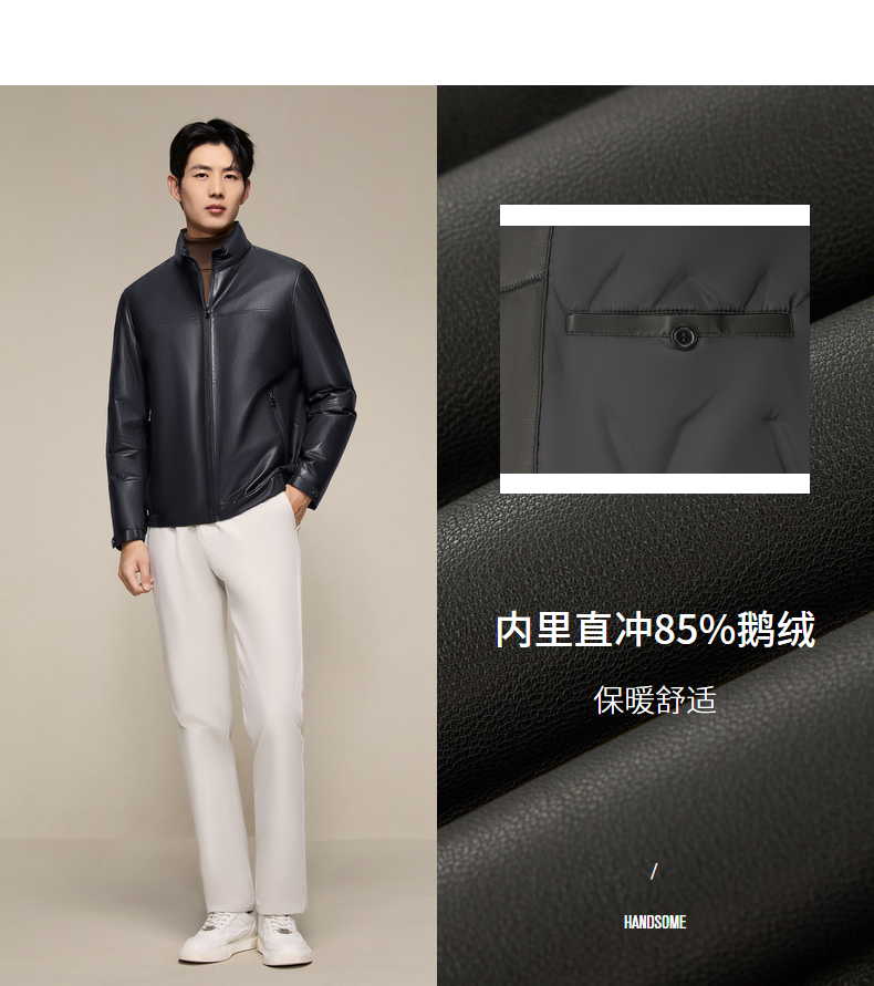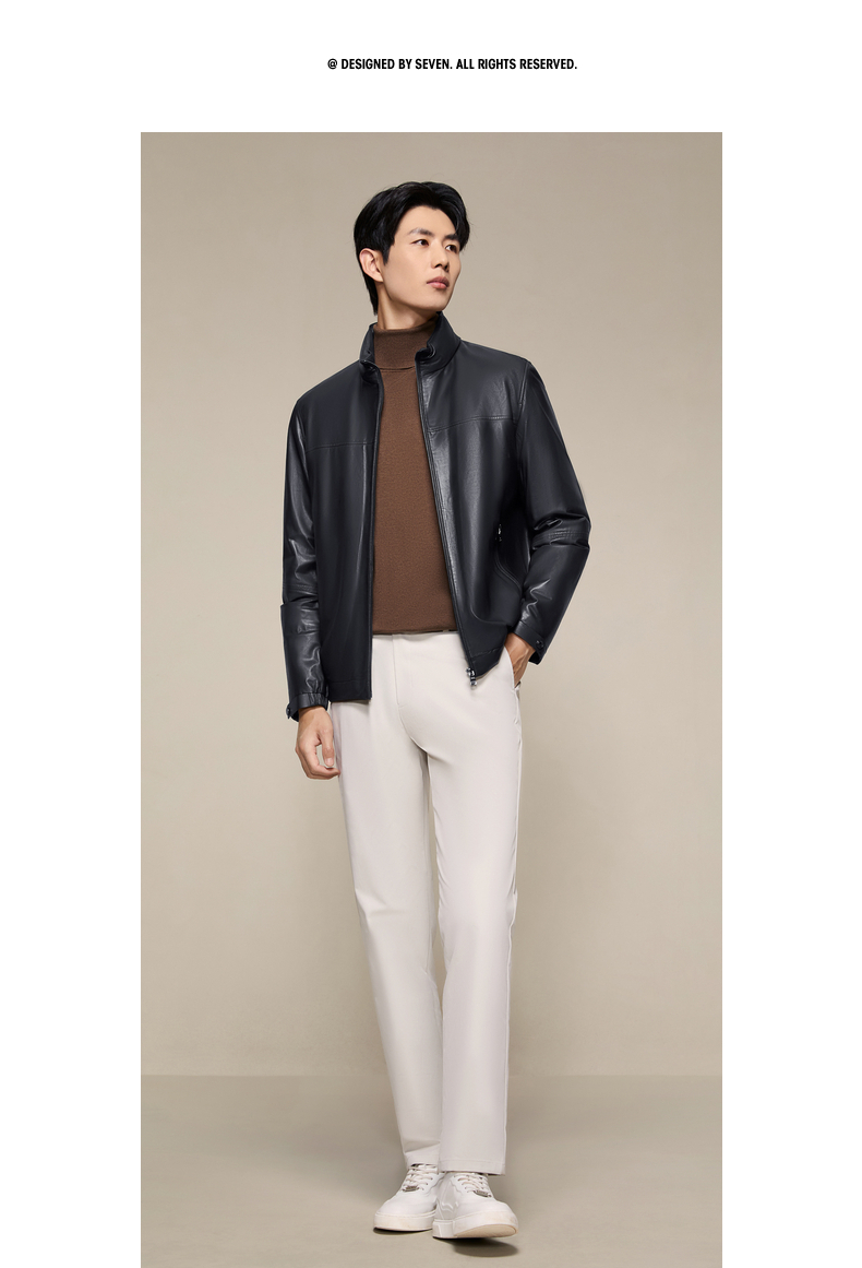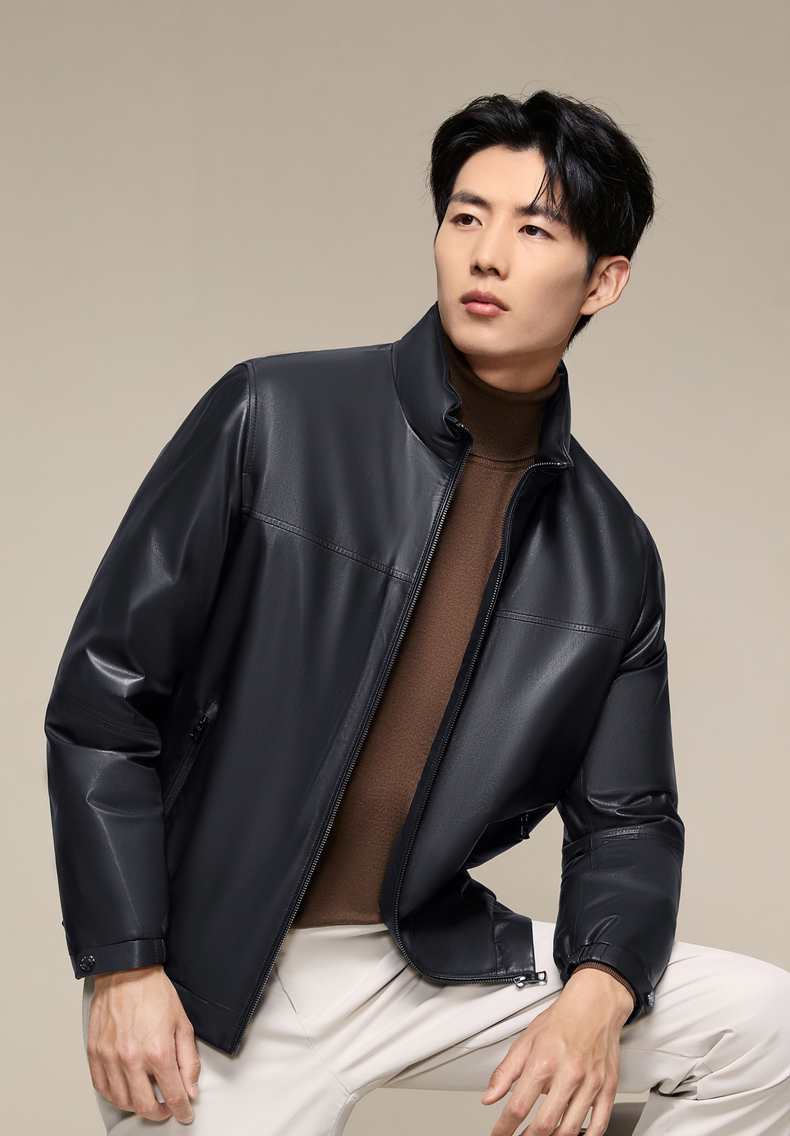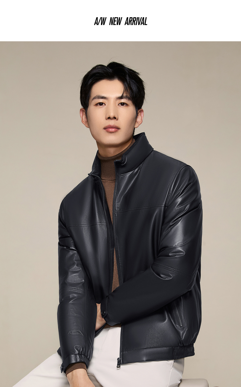 【高端系列/轻薄山羊皮/85鹅绒】柒牌立领商务厚款防风真皮皮衣男129J70630