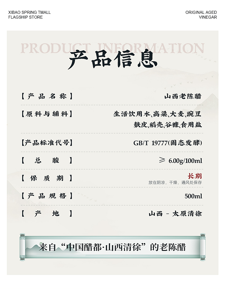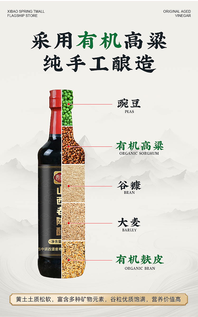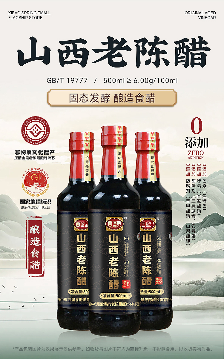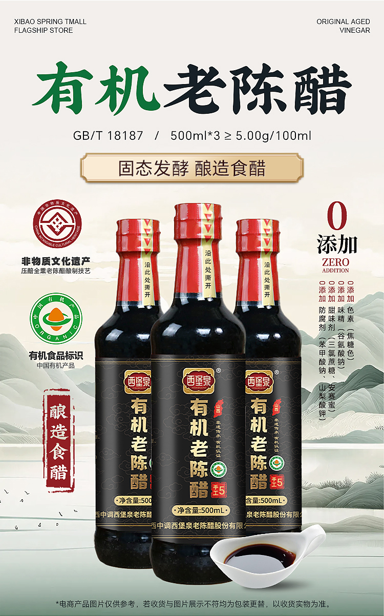 【手工酿制 做菜香】山西西堡泉老陈醋/有机陈醋 酸味醇厚,味烈而悠长 富含总黄酮,川芎嗪(GB/T19777固态发酵 非物质文化遗产)