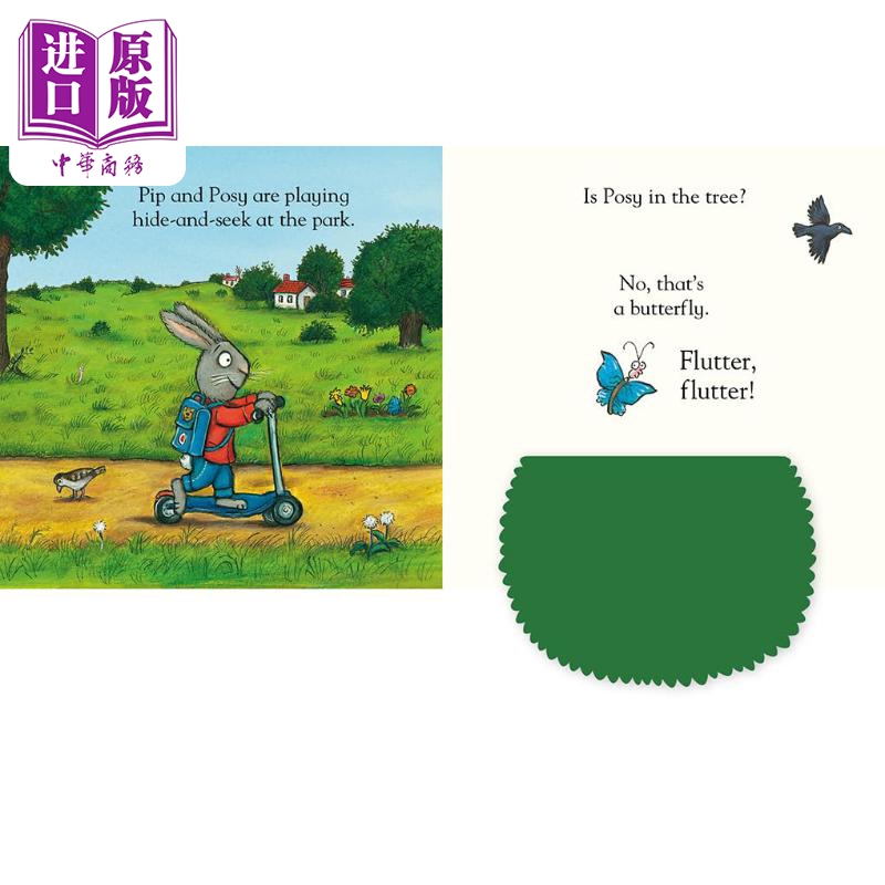 这本坚固的纸板书非常适合好奇的手,他们喜欢在每一页上寻找 Pip 和 Posy 的同时,一次又一次地探索和拉动毡盖。