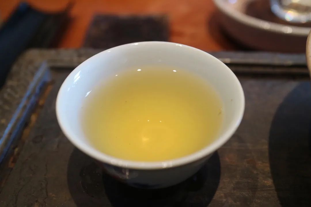 第一泡润茶水,松针香只是微显,更多的感受到的是冰糖甜,很多不懂的人以为冰糖甜多高级,冰岛多贵,其实原料够好,海拔够高,很多茶都可以达到。这款茶润茶水的冰糖甜已经不次于冰岛老寨了,而且茶汤的清、活,也都不次于冰岛老寨核心古树,只是这款茶转化略慢,需要更多时间而已。这些都是基操,不用惊奇,看后面。