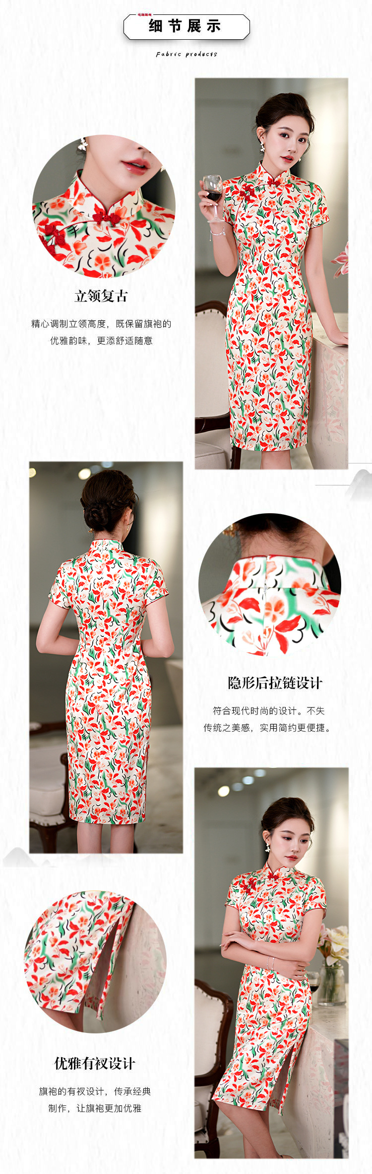 2024春夏新款现代年轻少女时尚改良新中式A版短袖旗袍SYK 21883