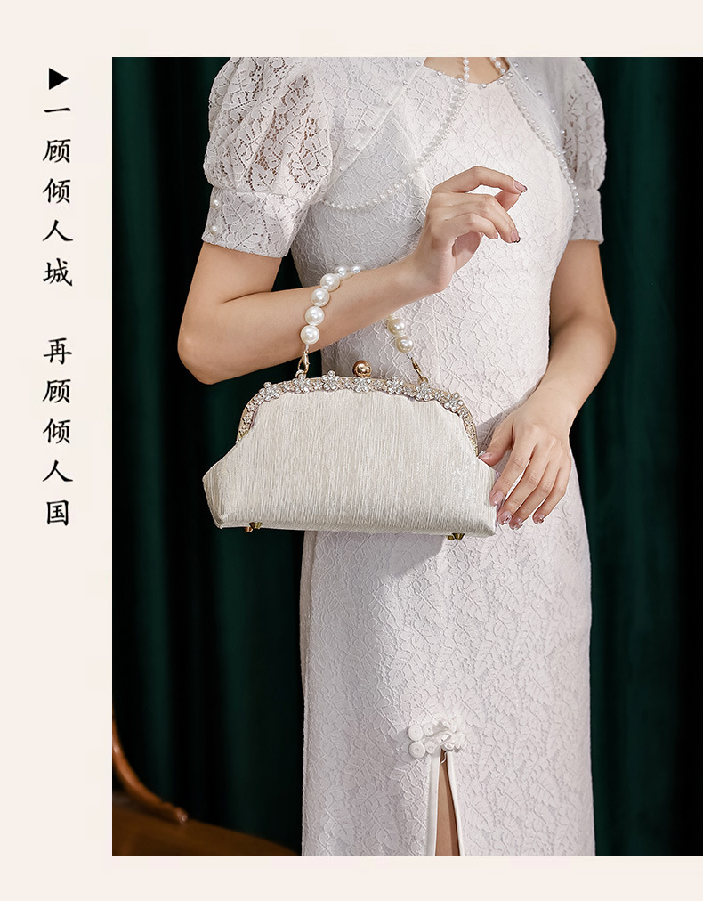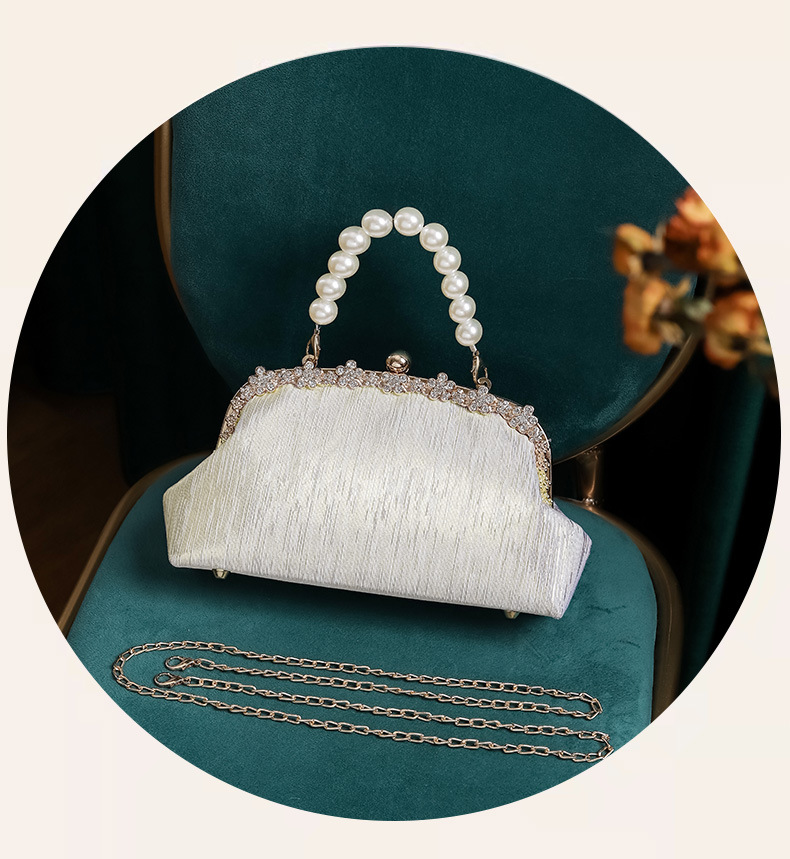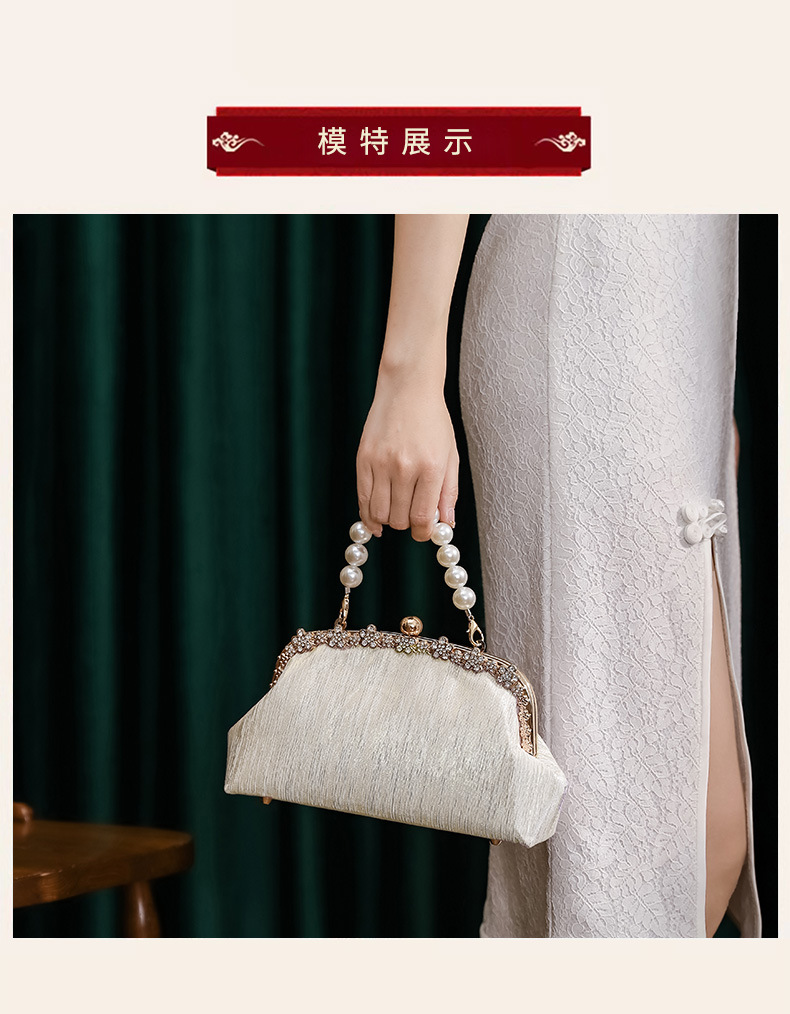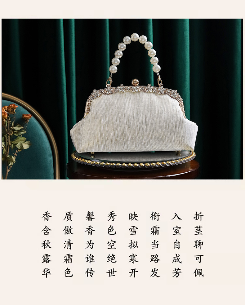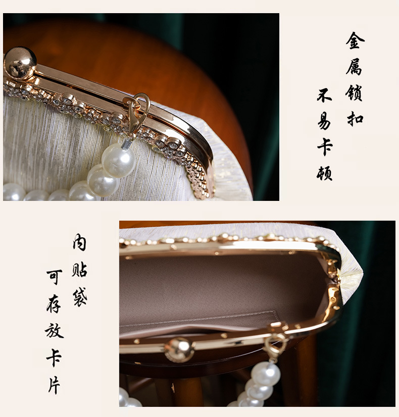 【梦中人】花朵珍珠手提包,古风旗袍宴会手拿包链条包 金属锁扣手拿单肩包QB-009