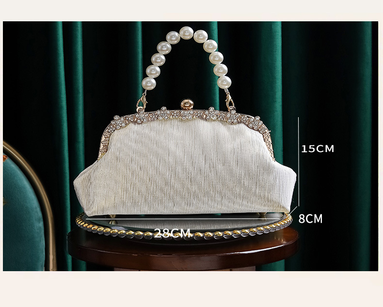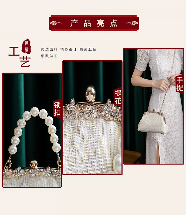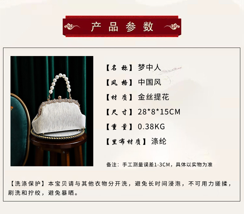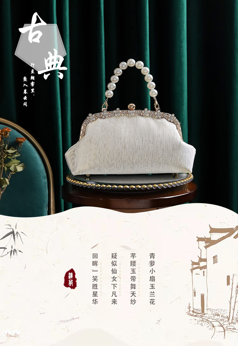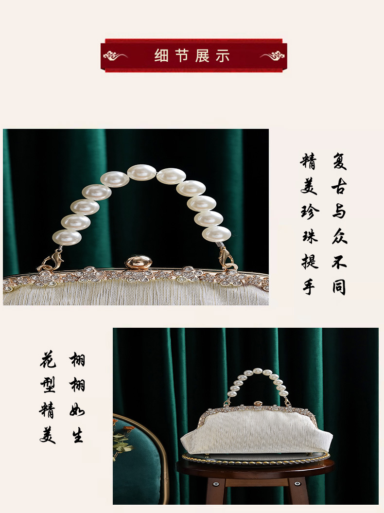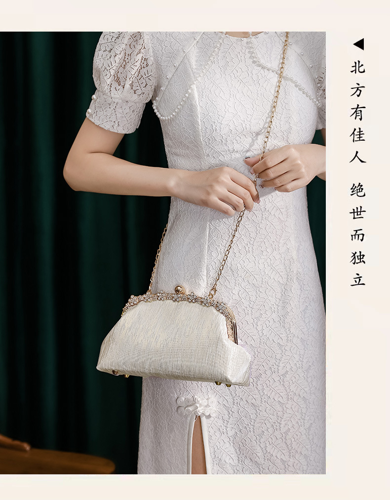 【梦中人】花朵珍珠手提包,古风旗袍宴会手拿包链条包 金属锁扣手拿单肩包QB-009