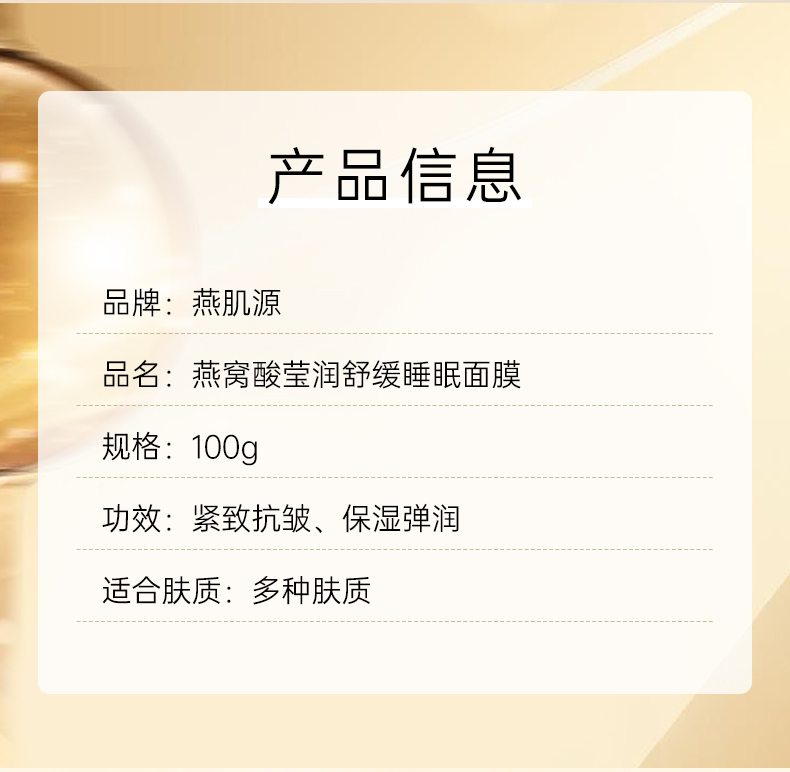 (临期特惠)燕肌源燕窝酸莹润舒缓睡眠面膜100g