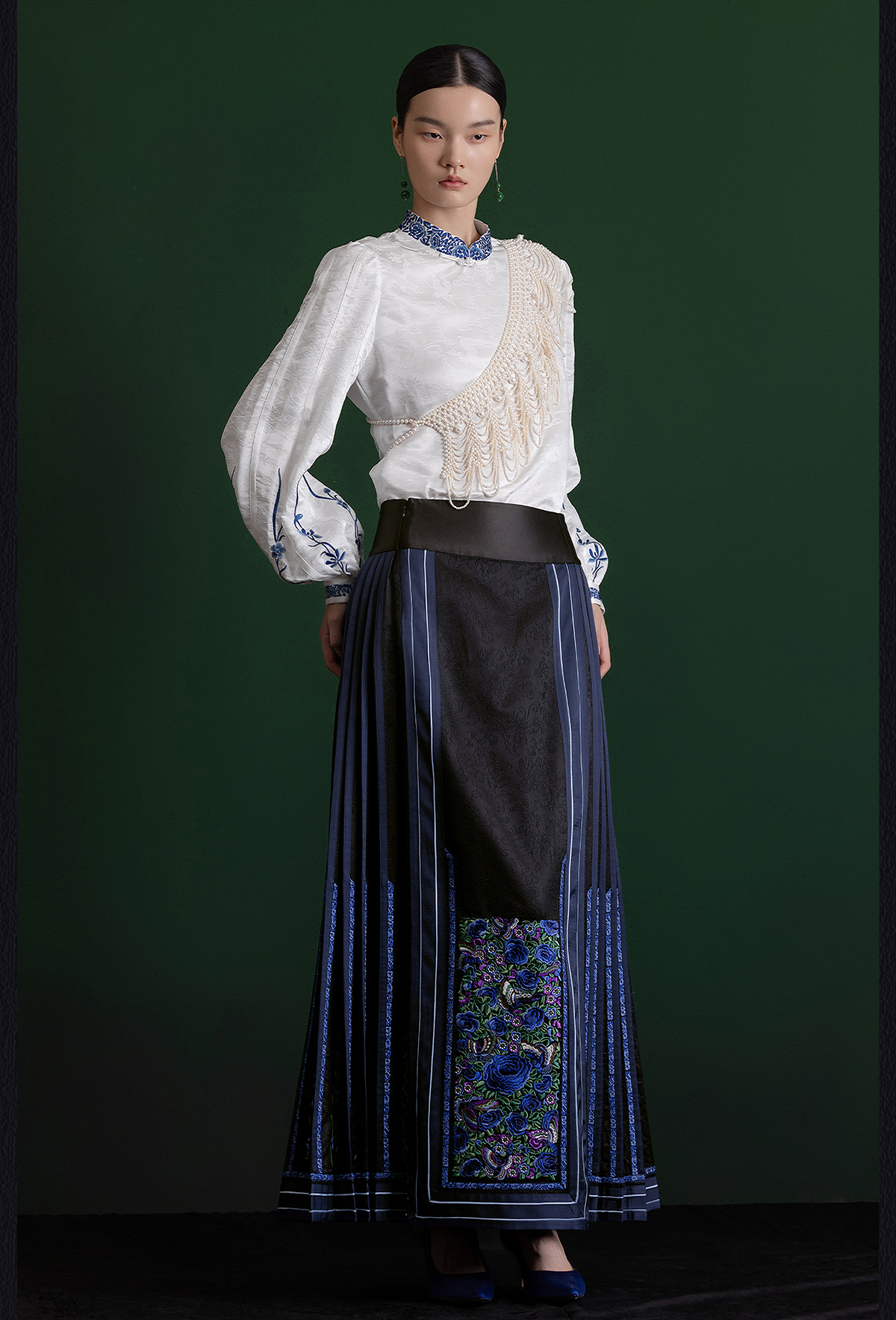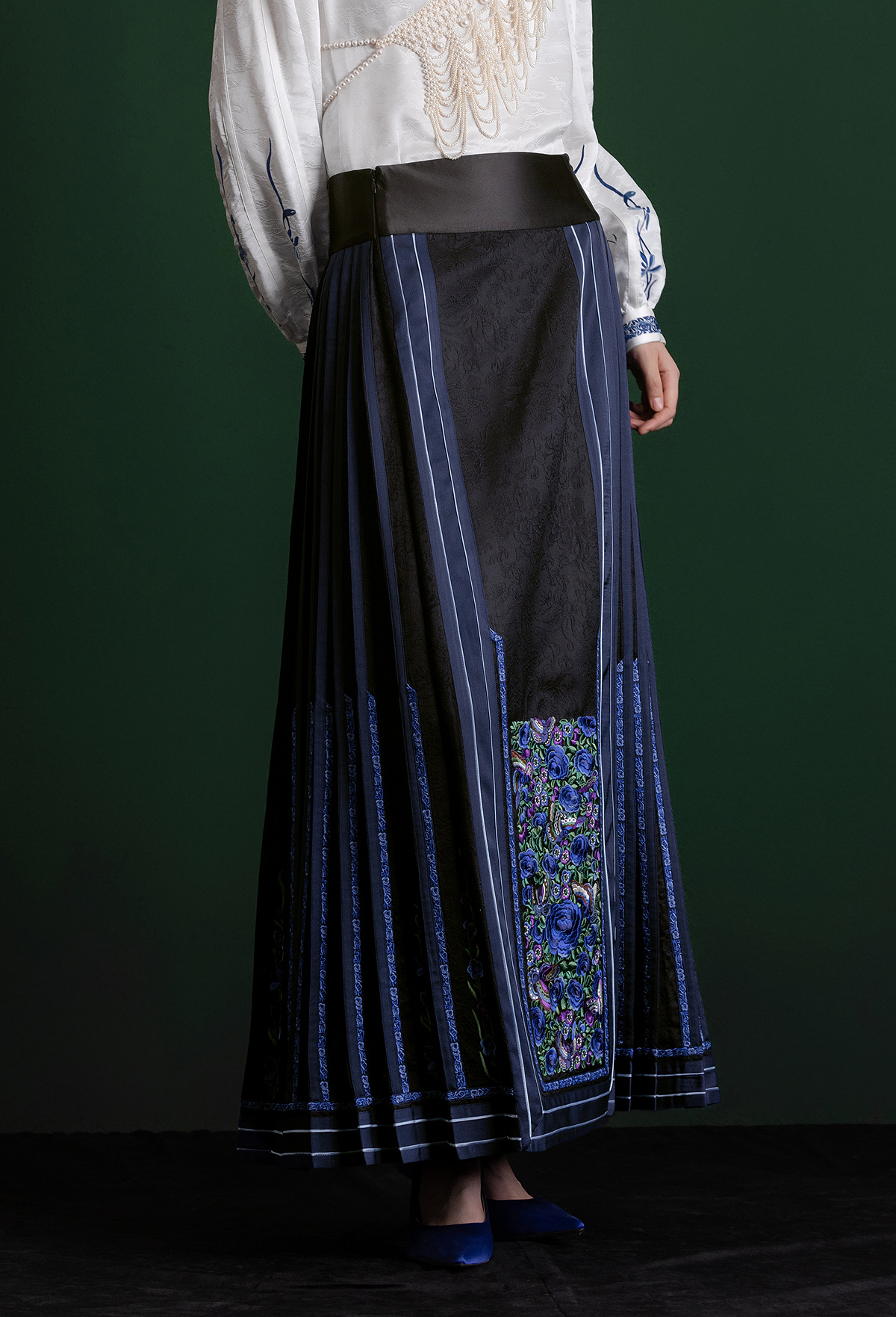 【林栖设计小店】国潮绣花改良马面裙新中式高腰显瘦2025春季新品长裙女1951040