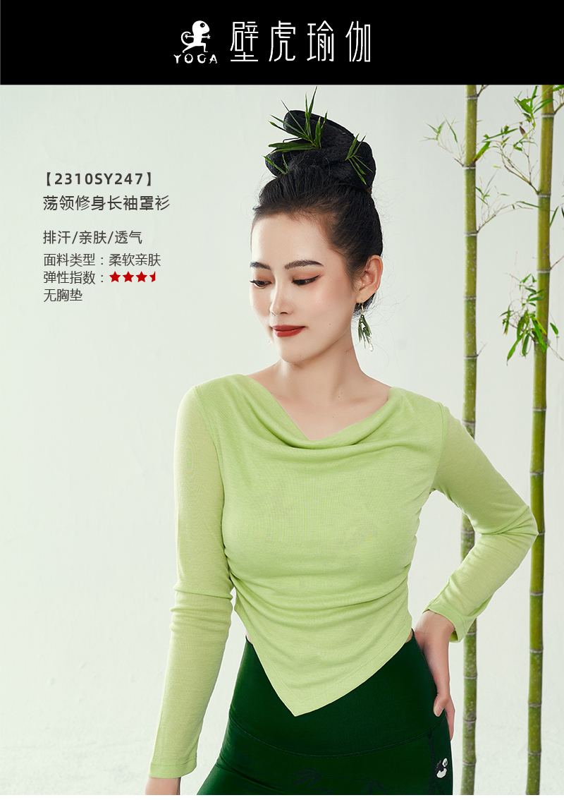 壁虎瑜伽【2310SY247】荡领修身长袖罩衫(无胸垫)【5天发货】