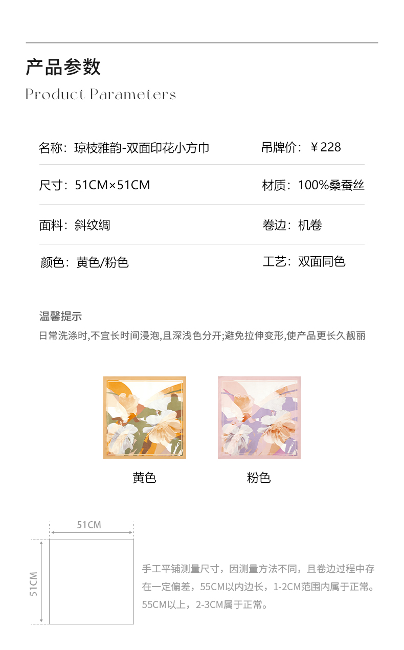 万事利双面印花小方巾-琼枝雅韵
