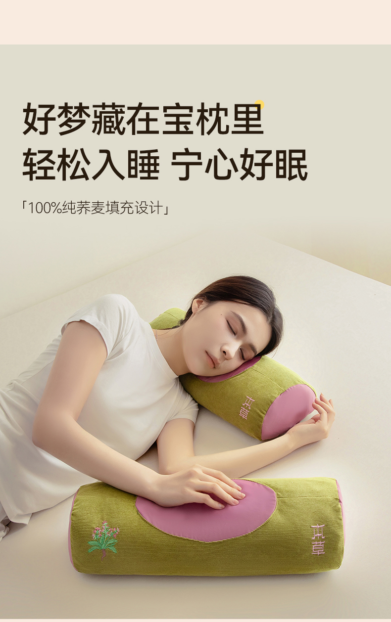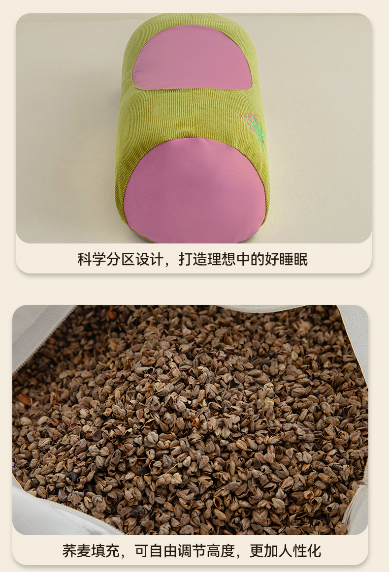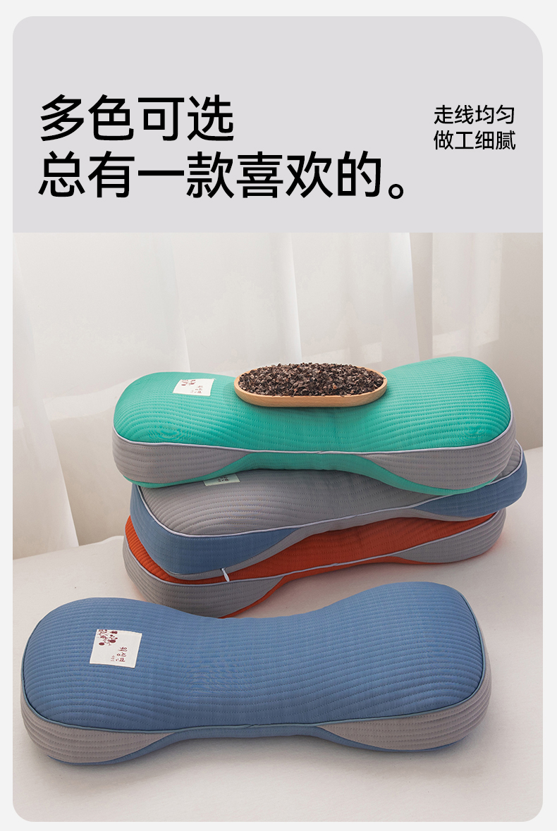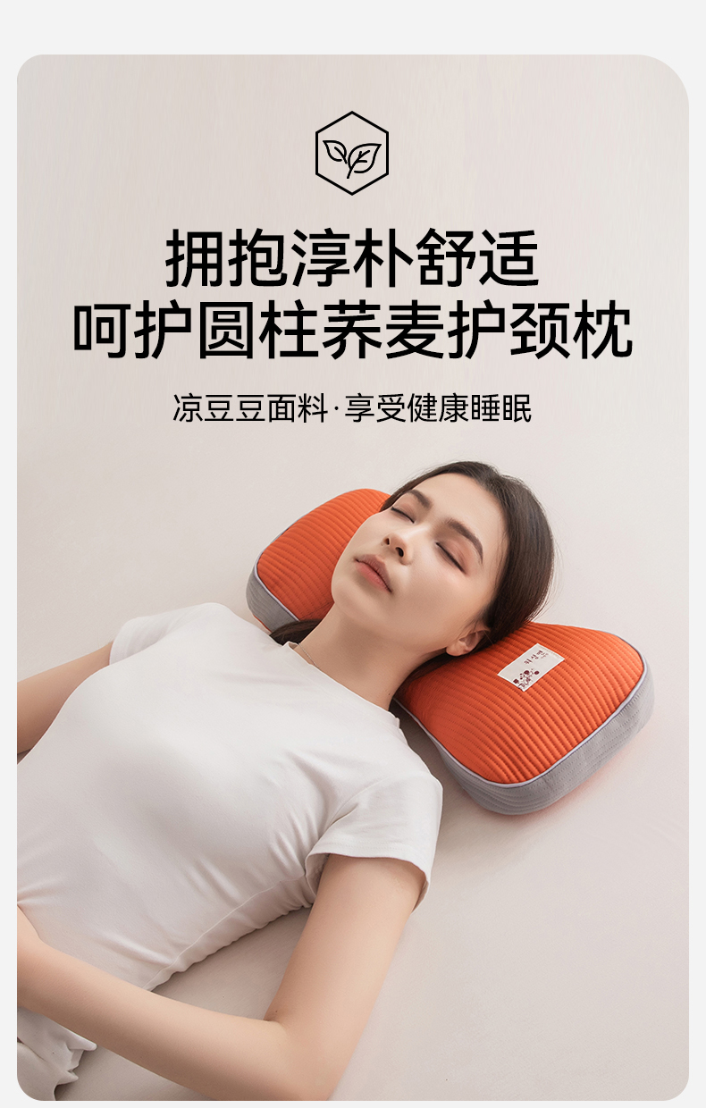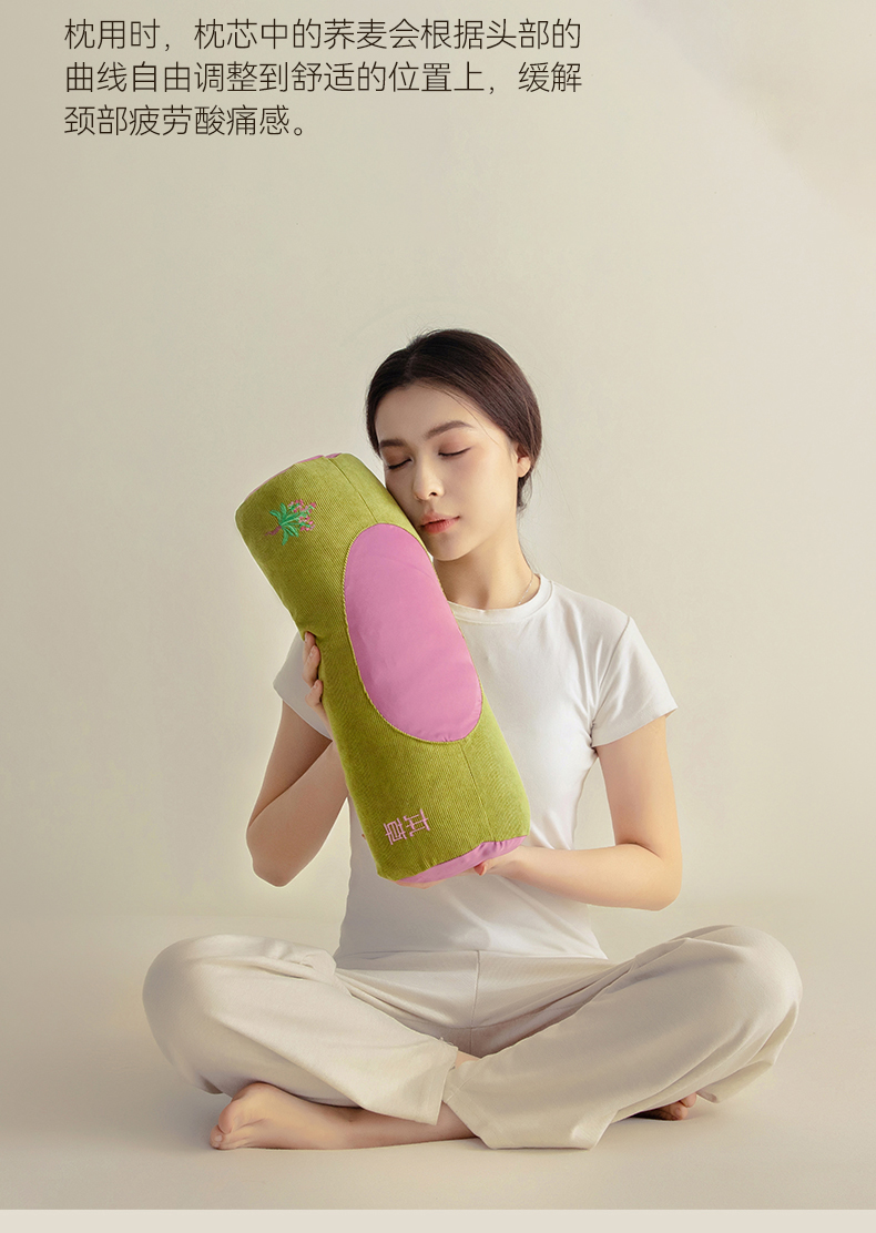 春夏圆柱凉豆豆荞麦护颈枕 吸湿透气干爽不闷热骨头颈椎枕