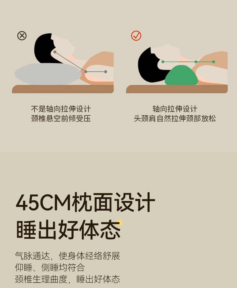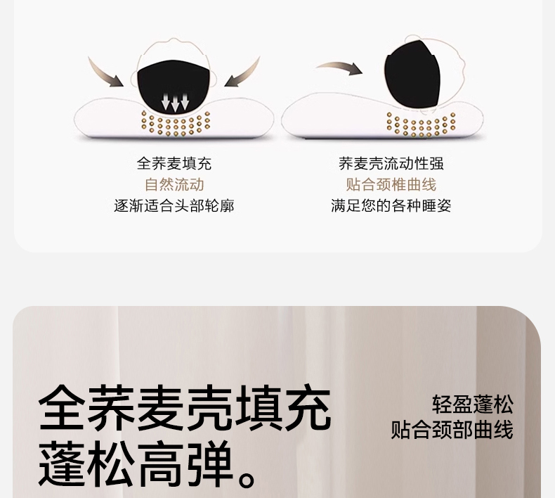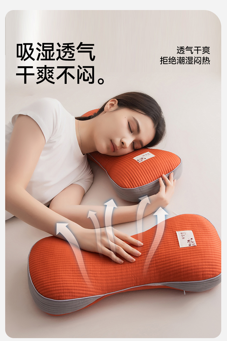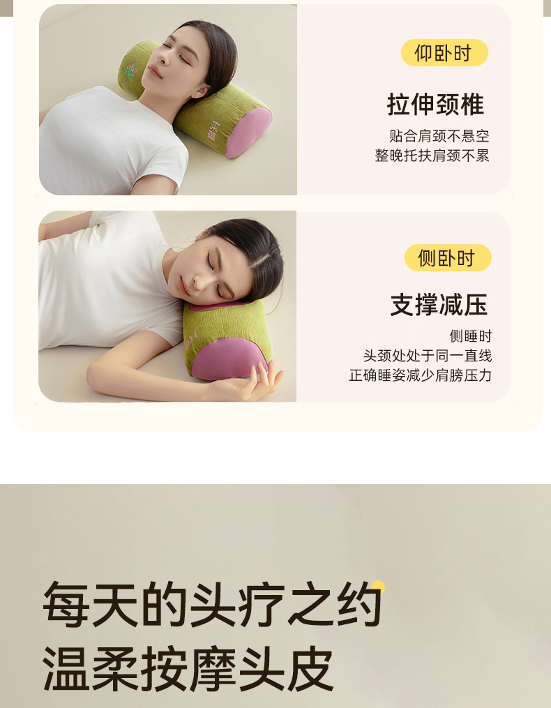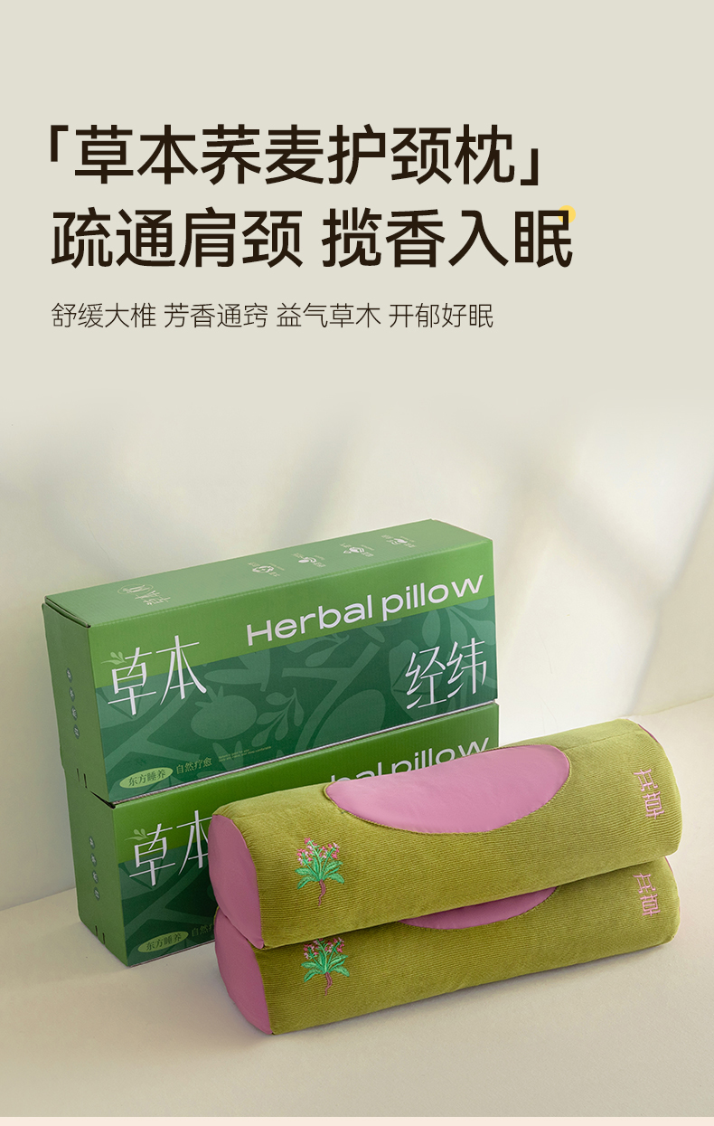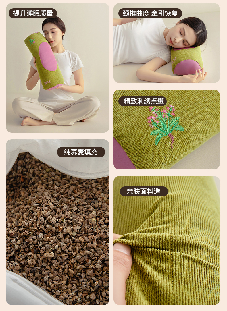 春夏圆柱凉豆豆荞麦护颈枕 吸湿透气干爽不闷热骨头颈椎枕