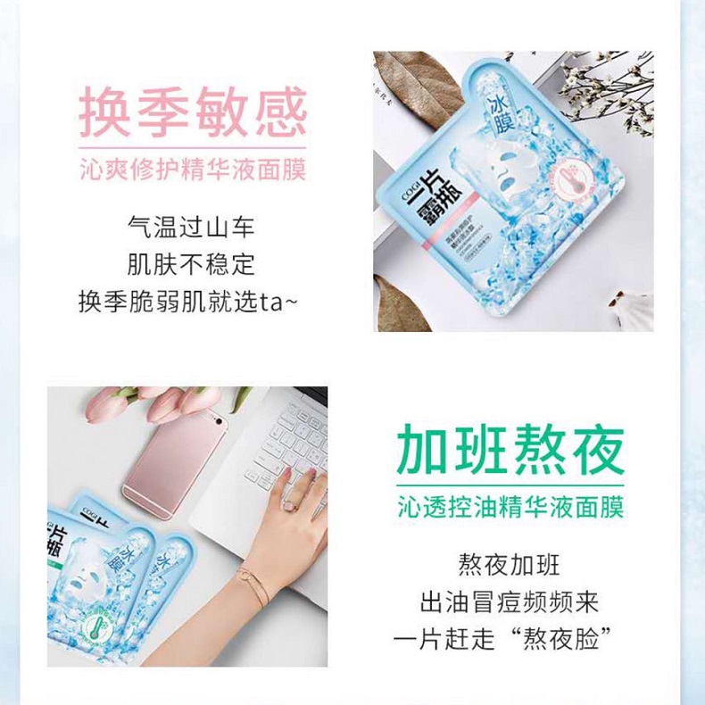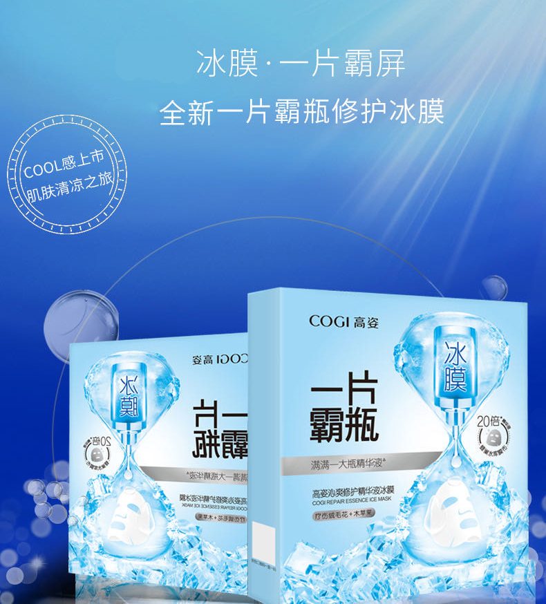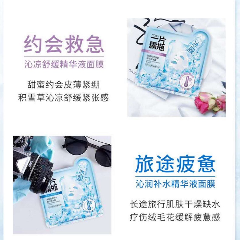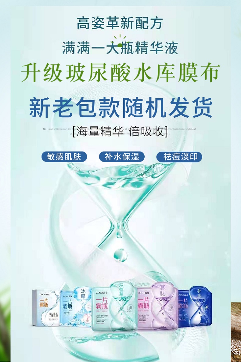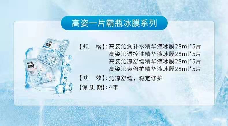 高姿-补水/提亮/倍润玻尿酸精华液面膜 沁爽修护精华液冰膜 28ml*5片