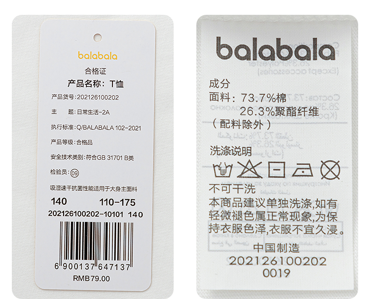 【商场同款】巴拉巴拉童装儿童长袖t恤男童2026春季新款上衣女童