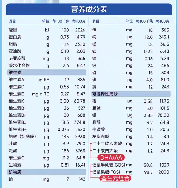 2.硒、双益生元,几种宝宝关键营养元素均有添加;