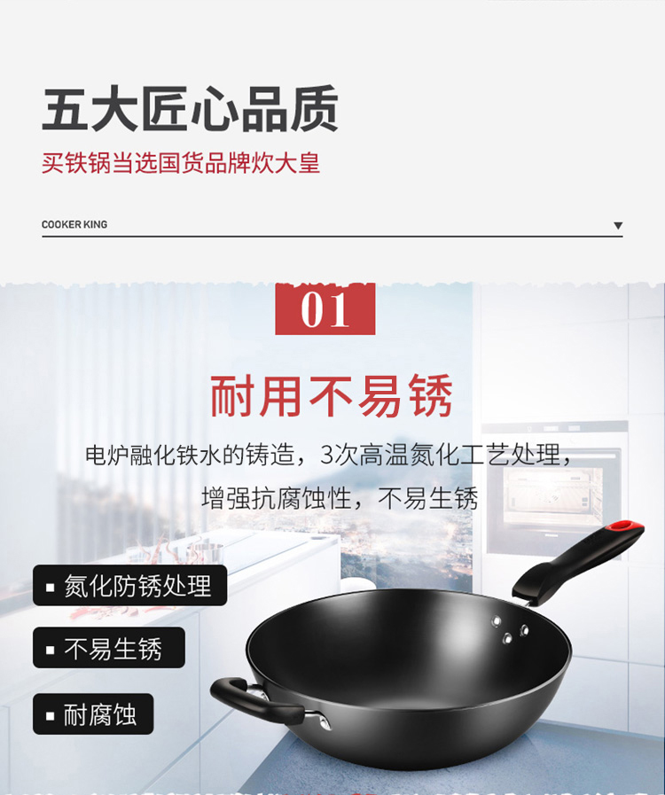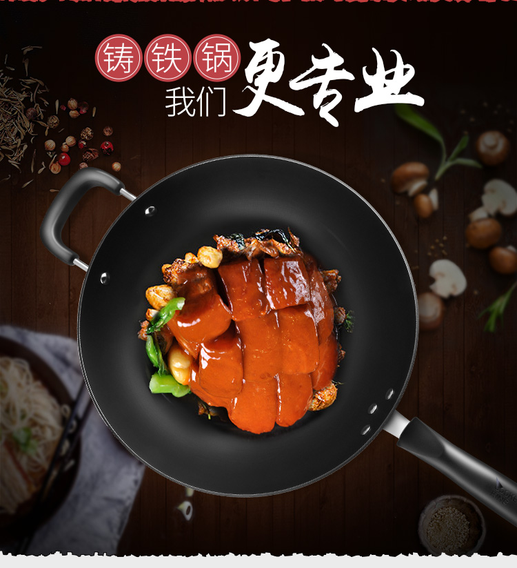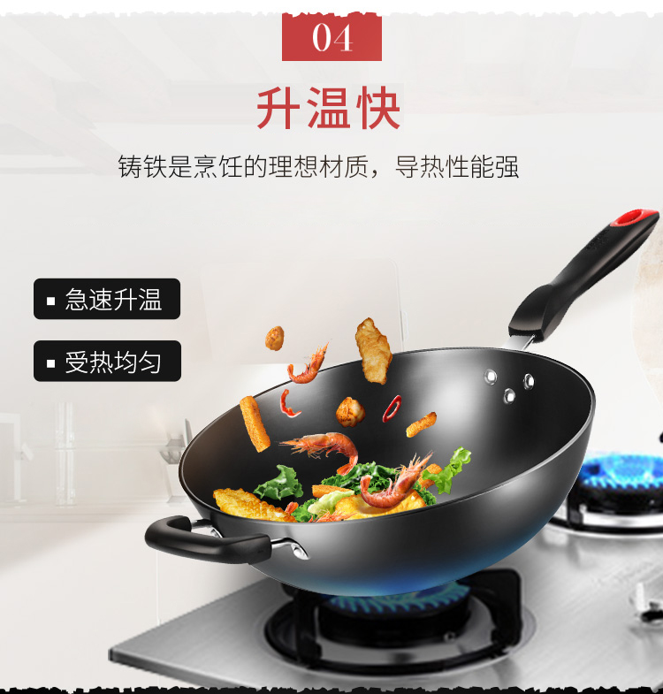 炊大皇炒锅32cm铁锅无涂层铸铁炒菜锅具电磁炉燃气煤气灶明火通用C32D2