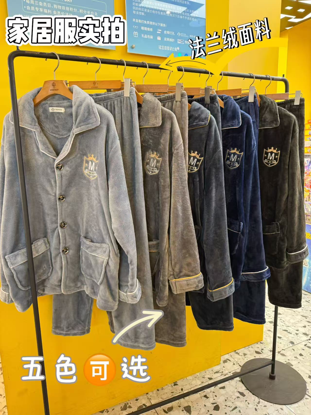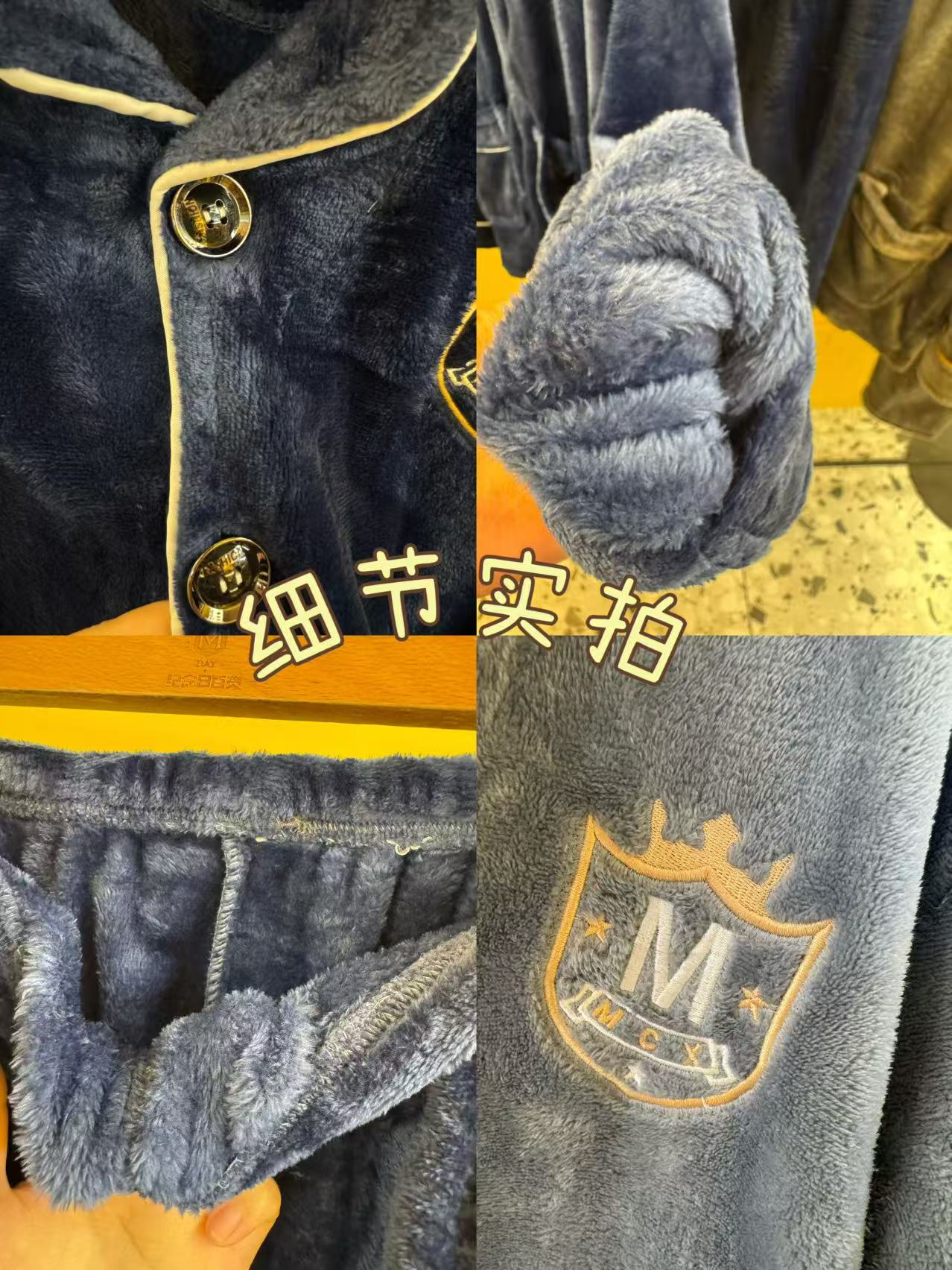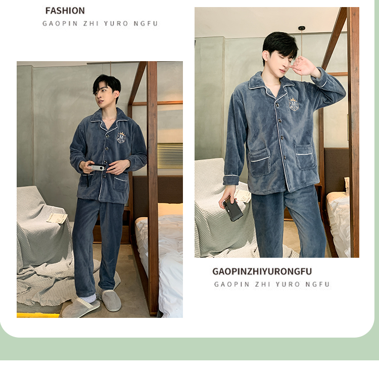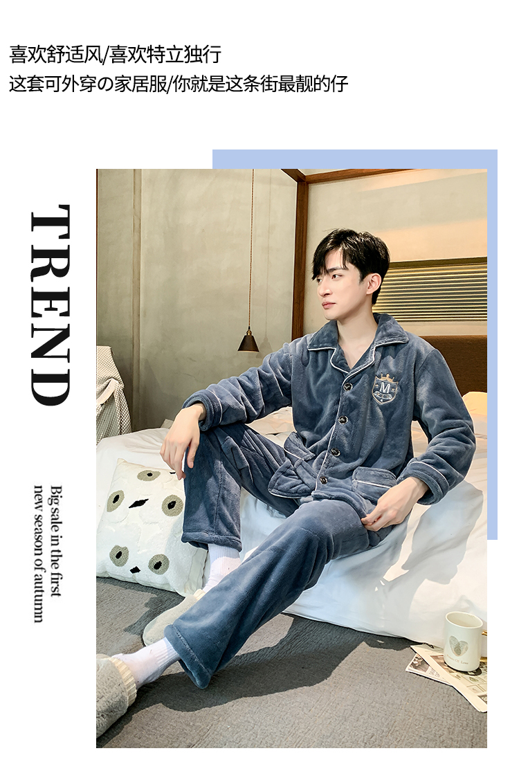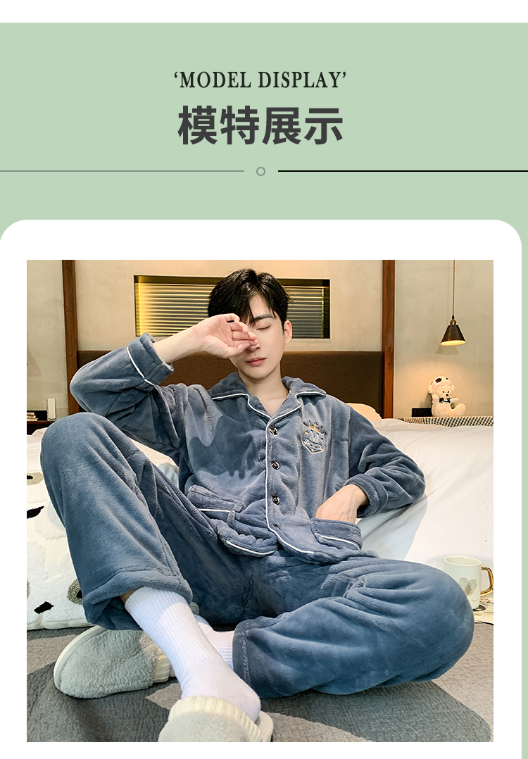 【GZ】无忧购男士法兰绒开衫两件套家居服睡衣(截单后3-5天发货)