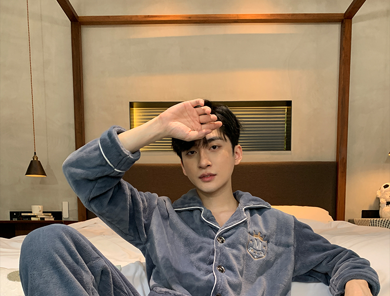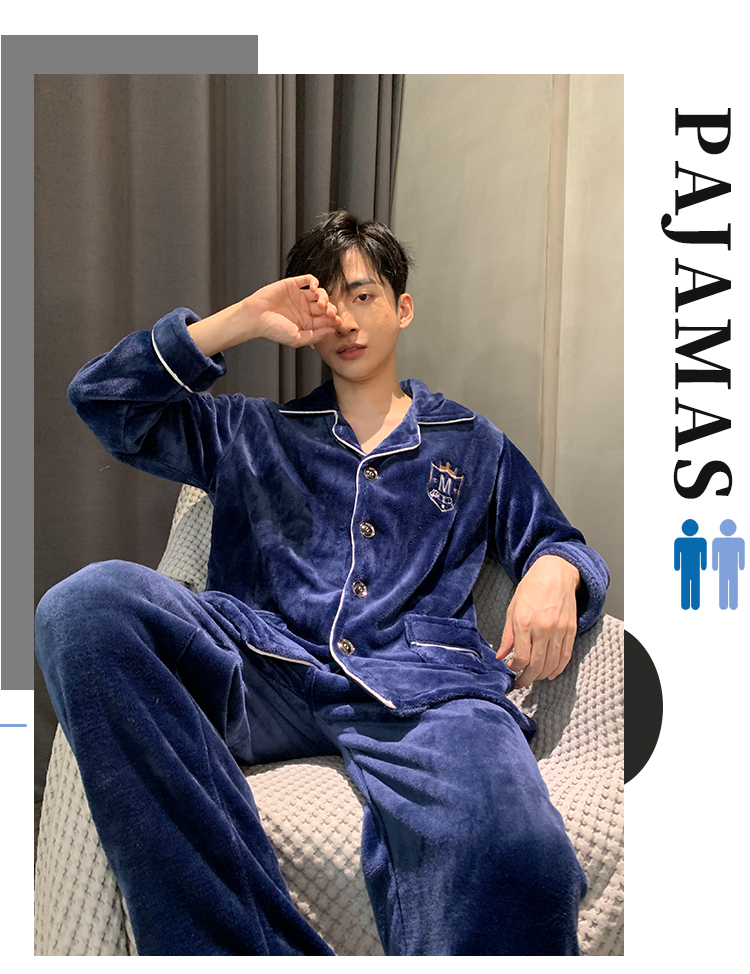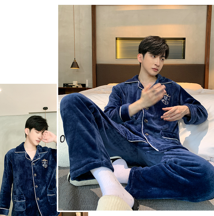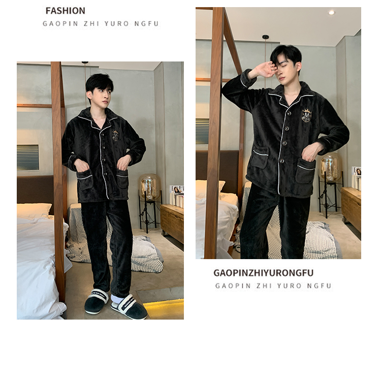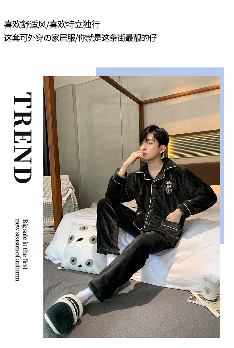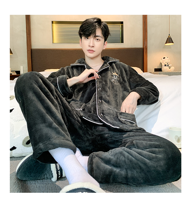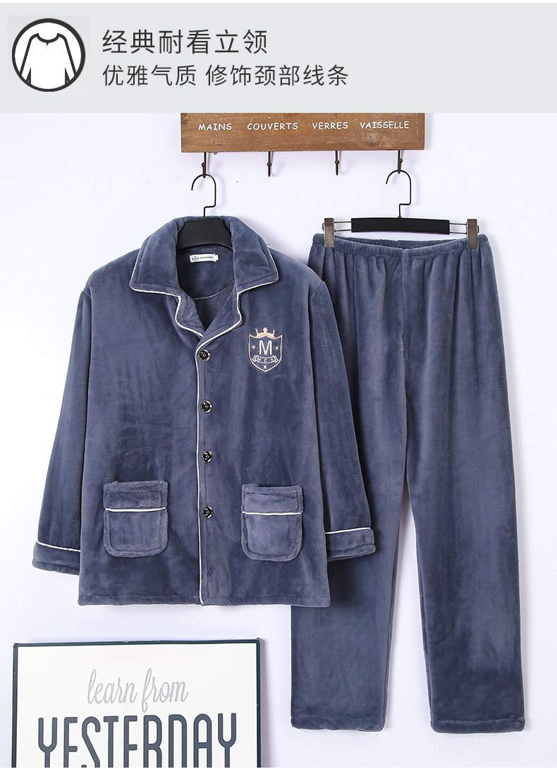 【GZ】无忧购男士法兰绒开衫两件套家居服睡衣(截单后3-5天发货)
