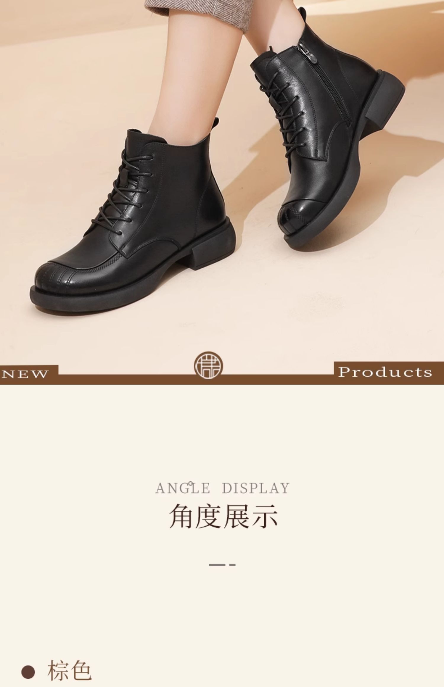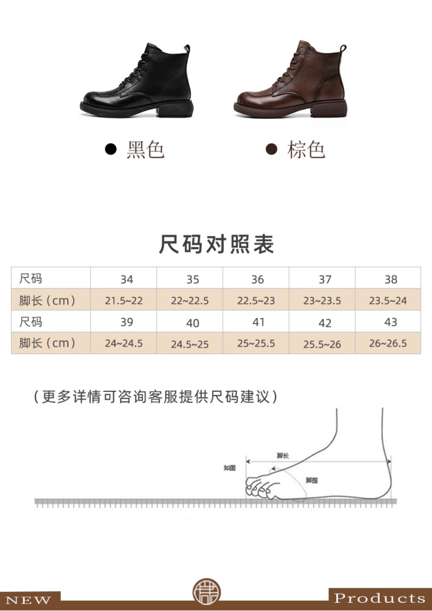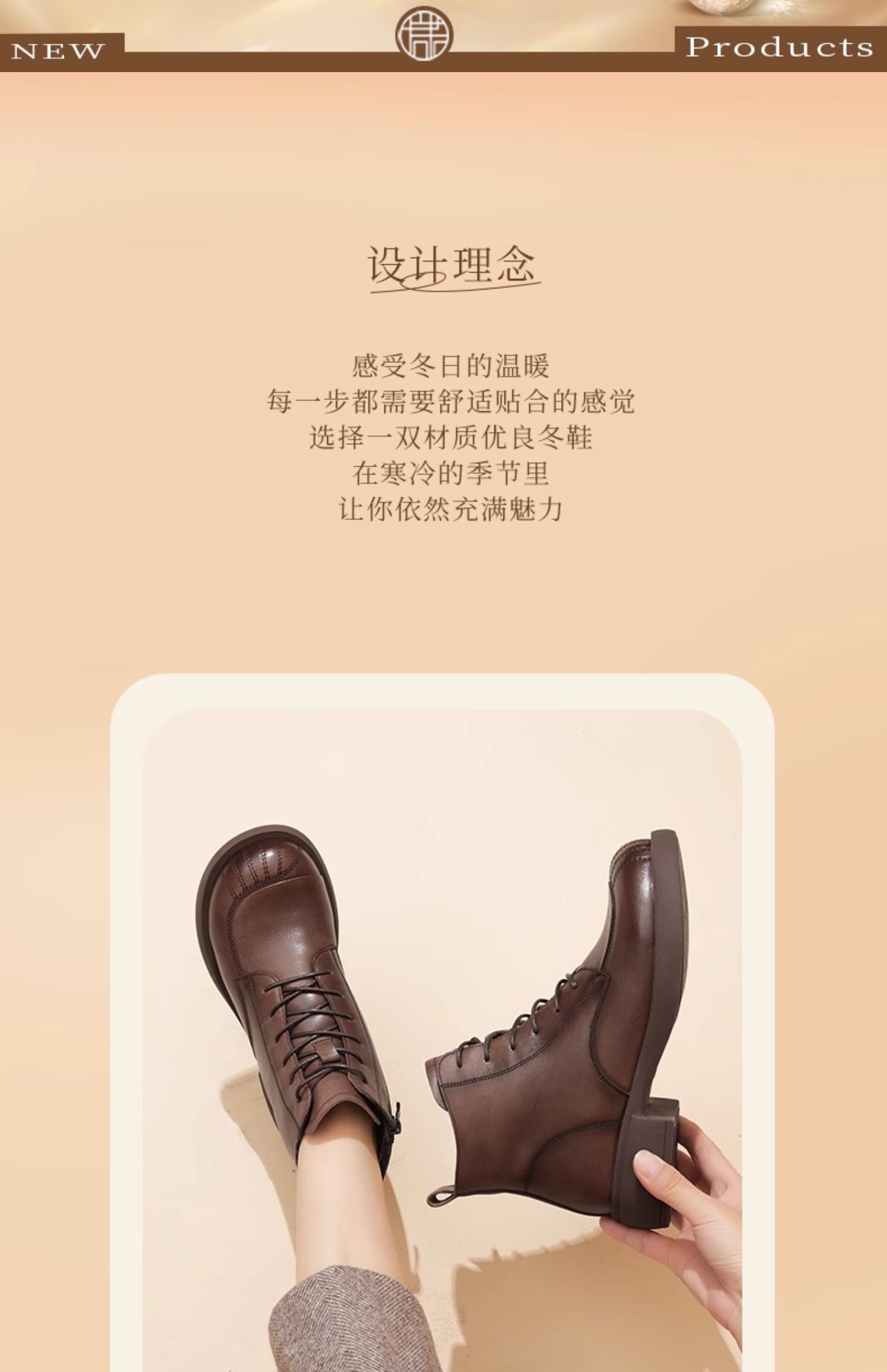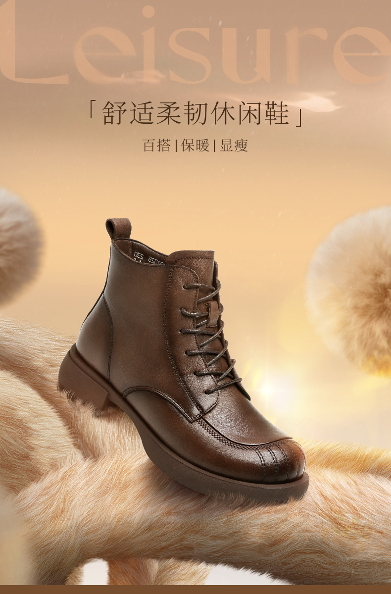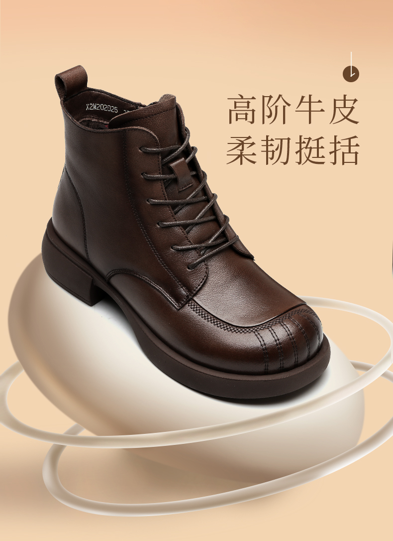信诺真皮厚底短靴女2023秋冬新款女士加绒保暖皮鞋大头马丁靴棉鞋23M178-6H