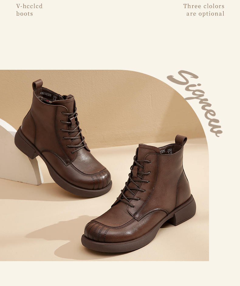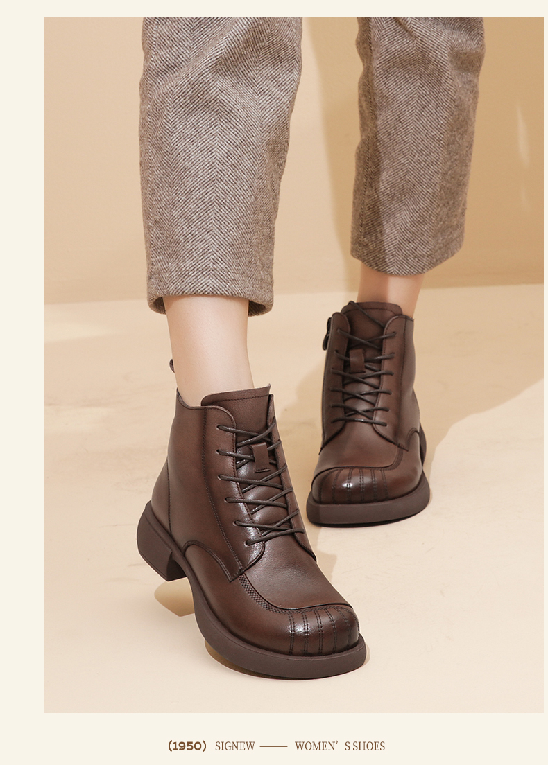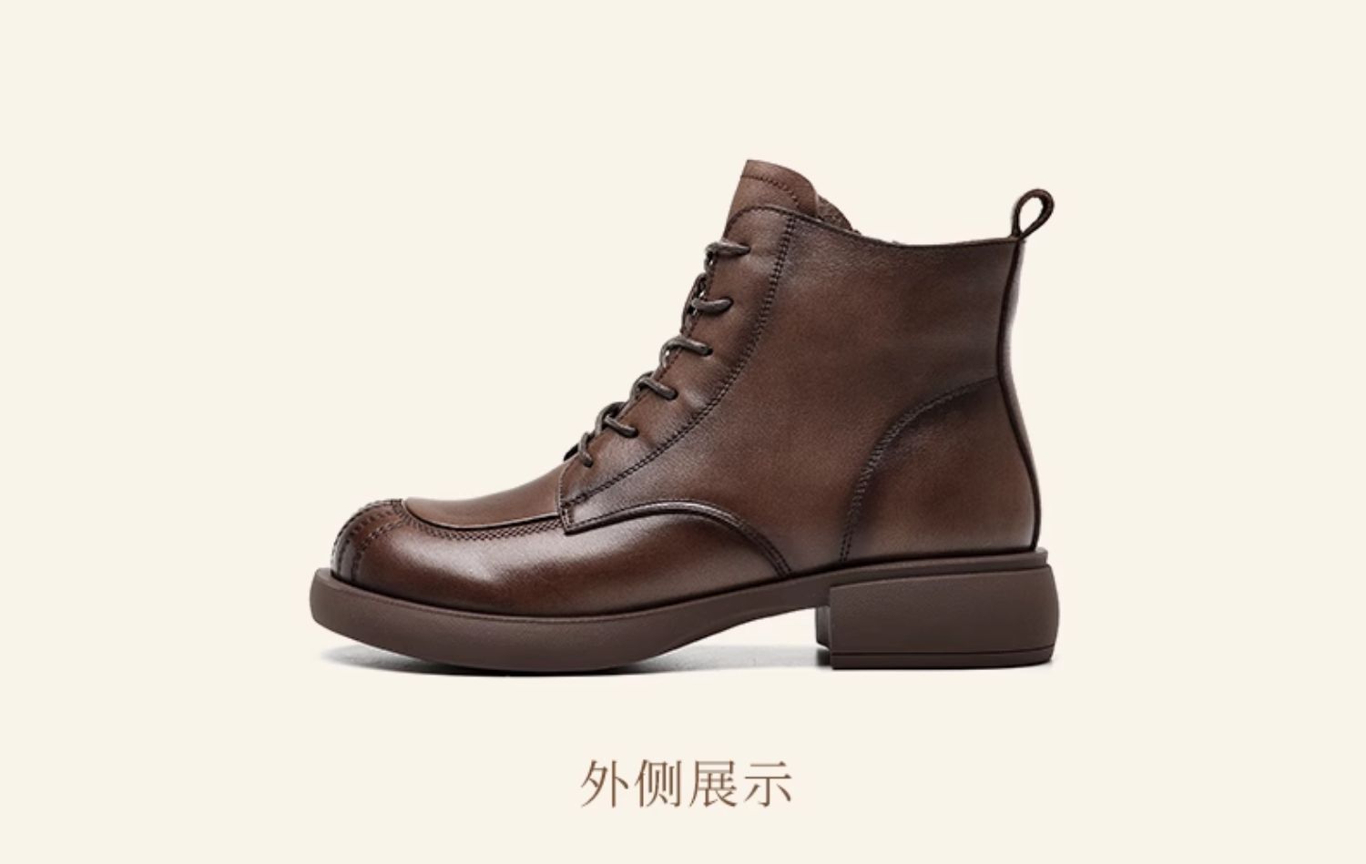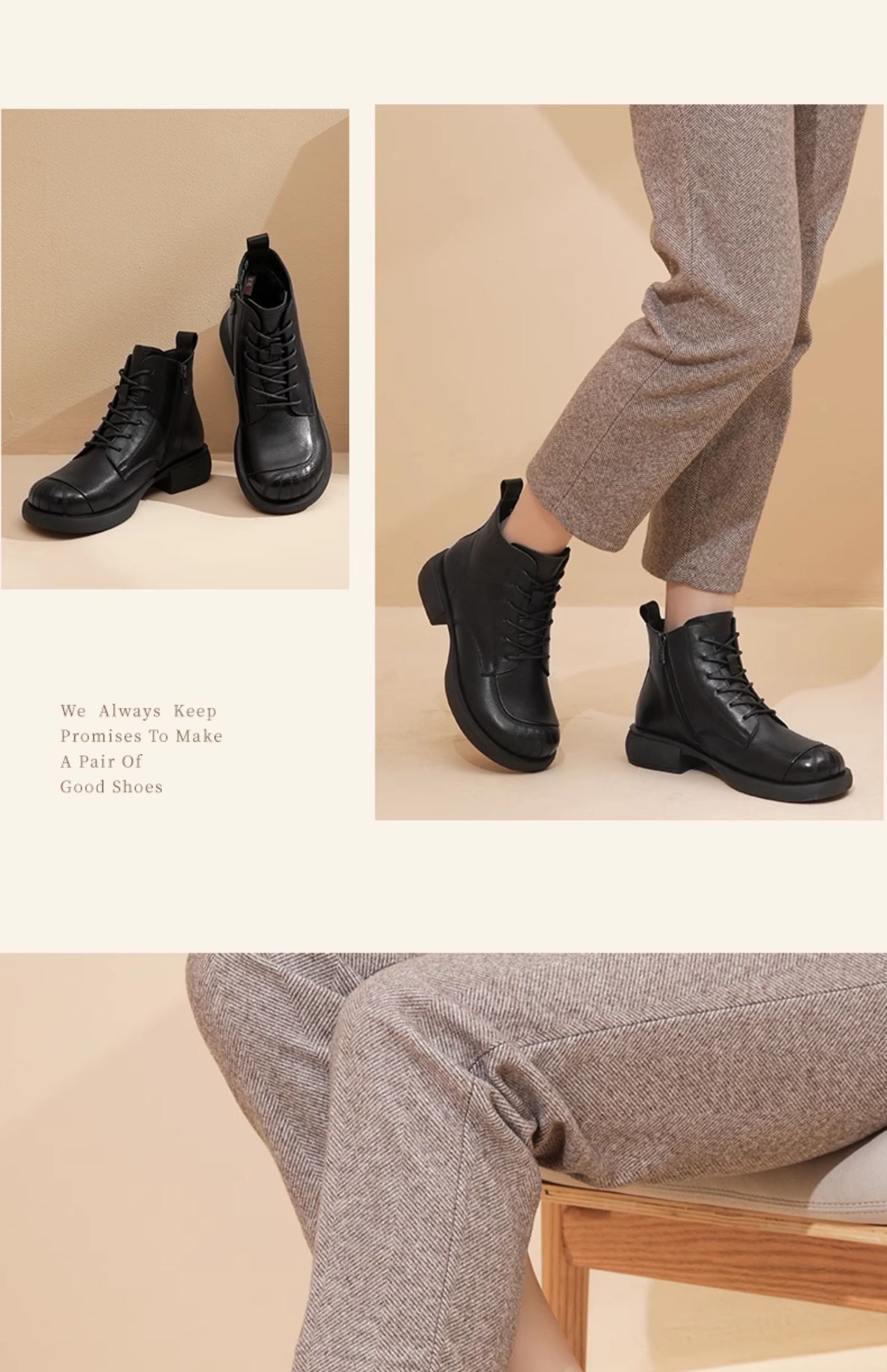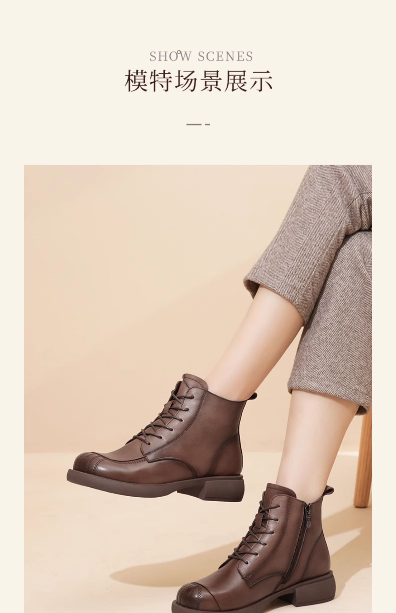 信诺真皮厚底短靴女2023秋冬新款女士加绒保暖皮鞋大头马丁靴棉鞋23M178-6H