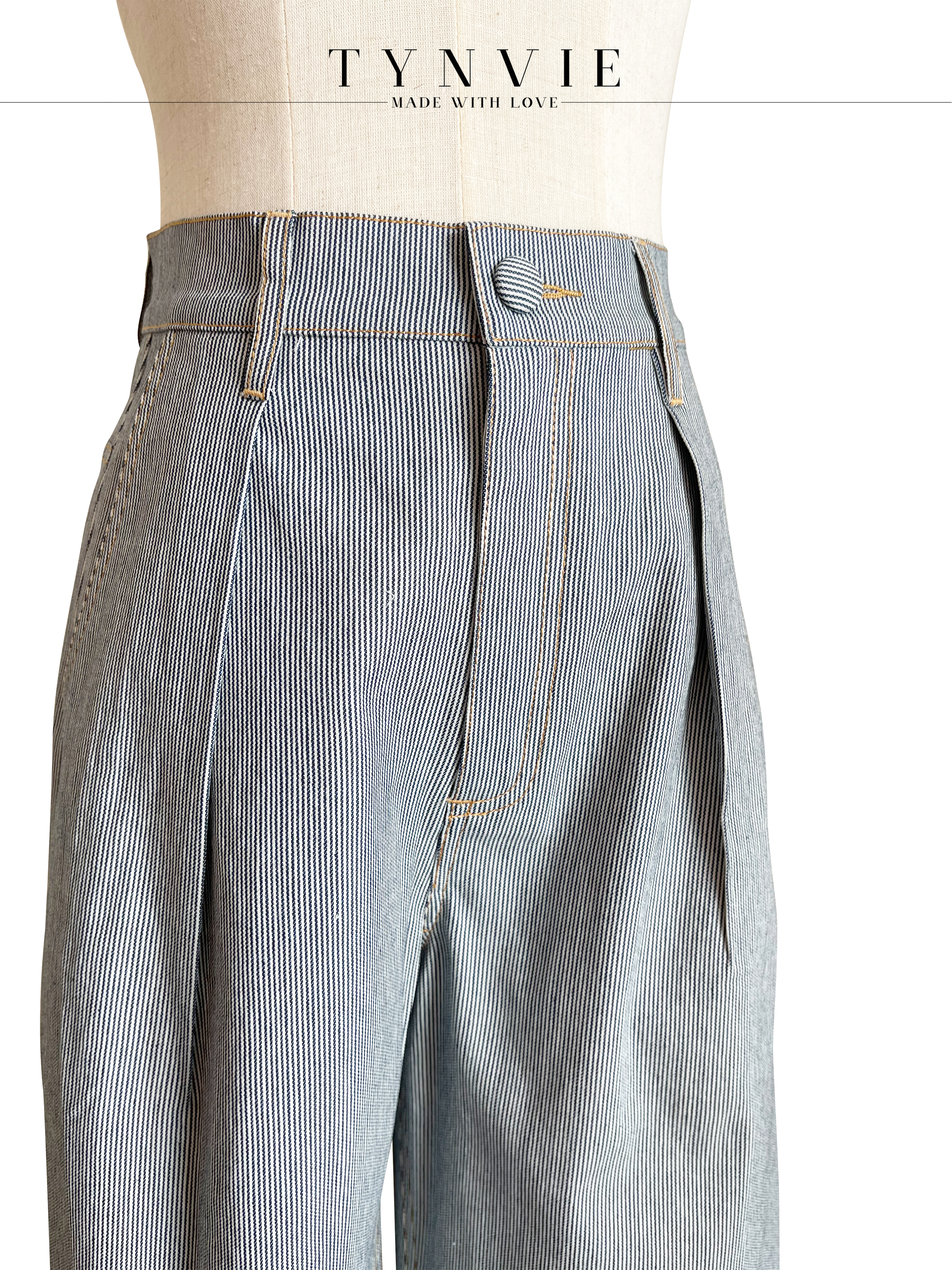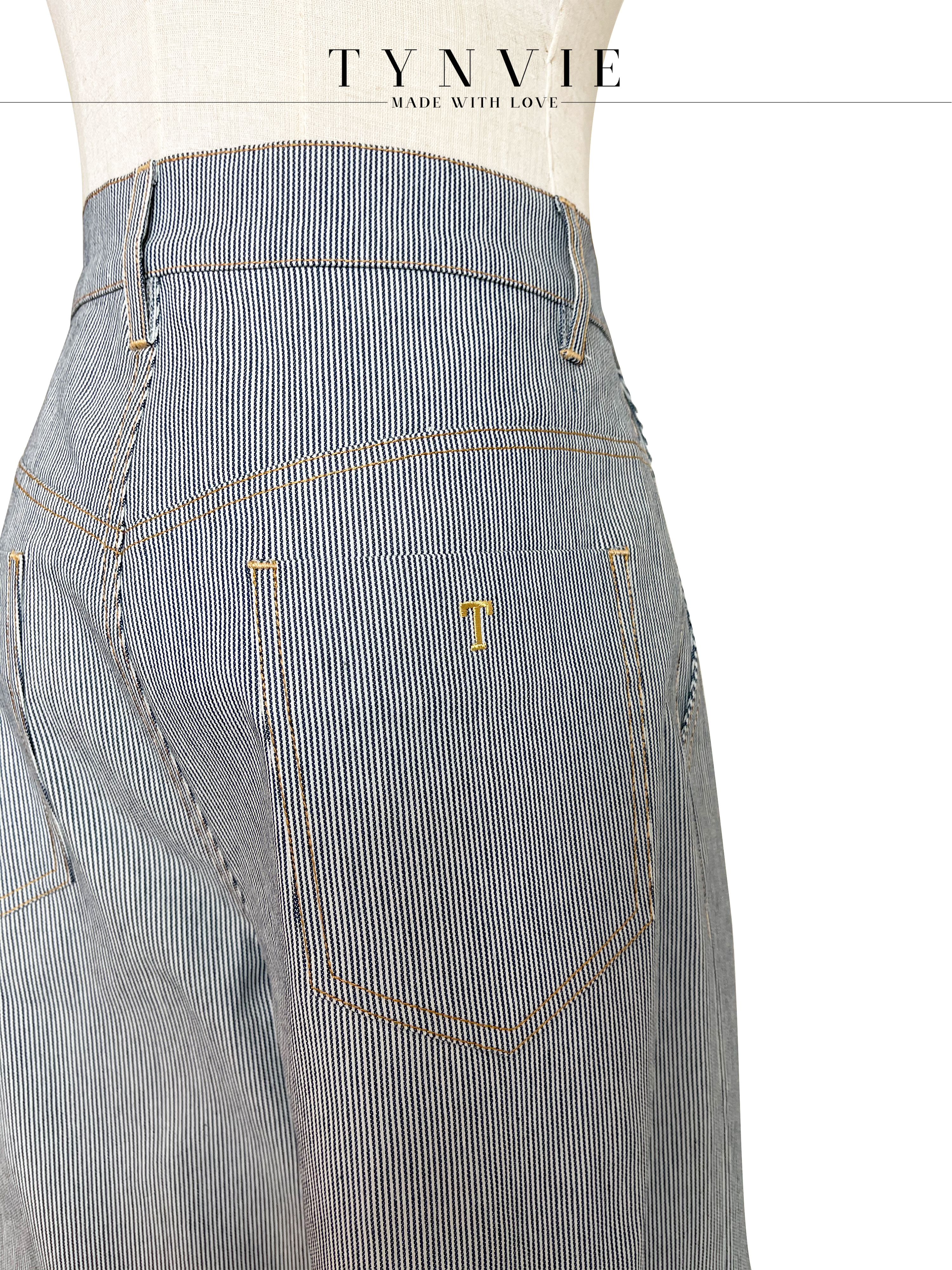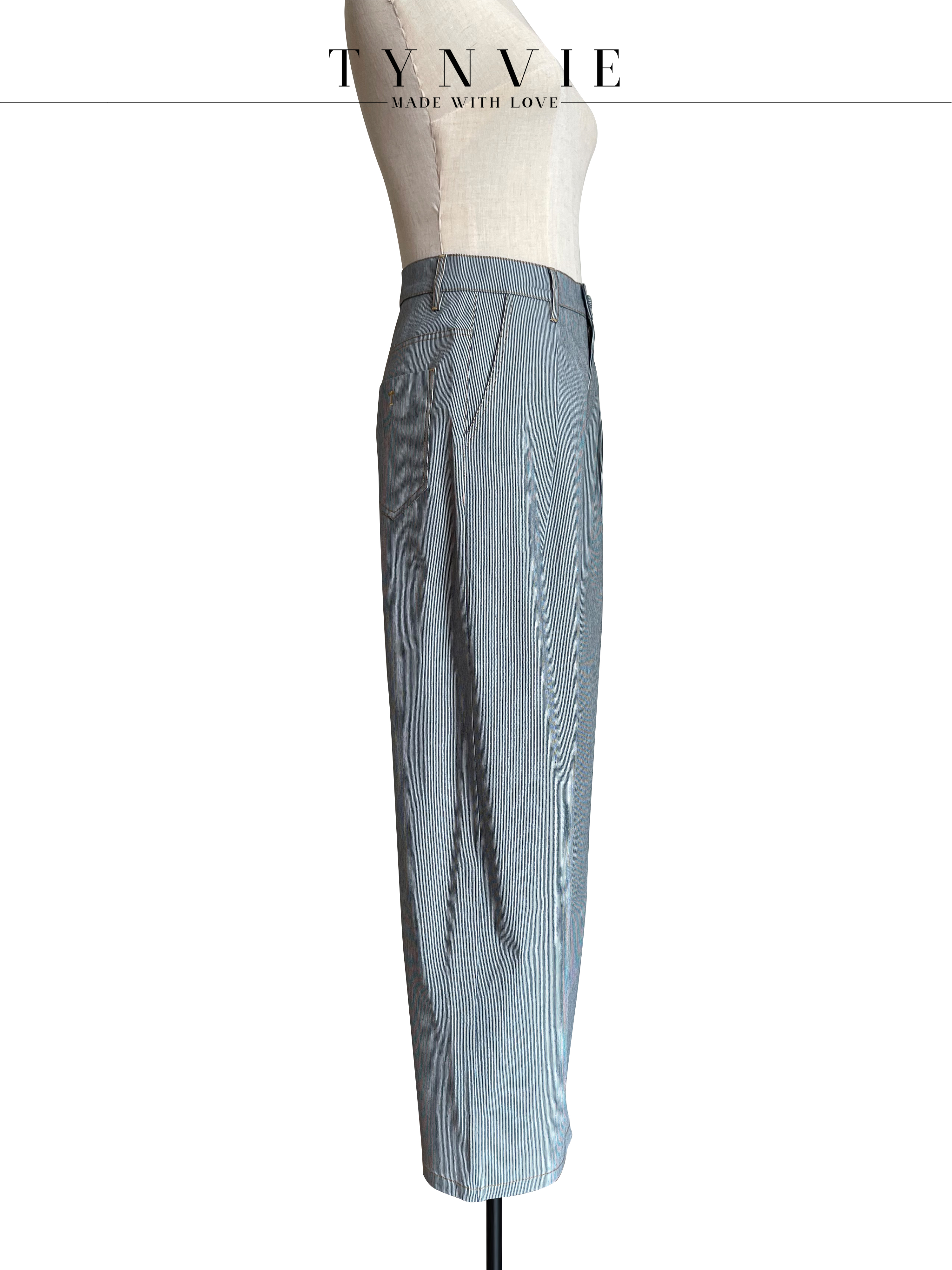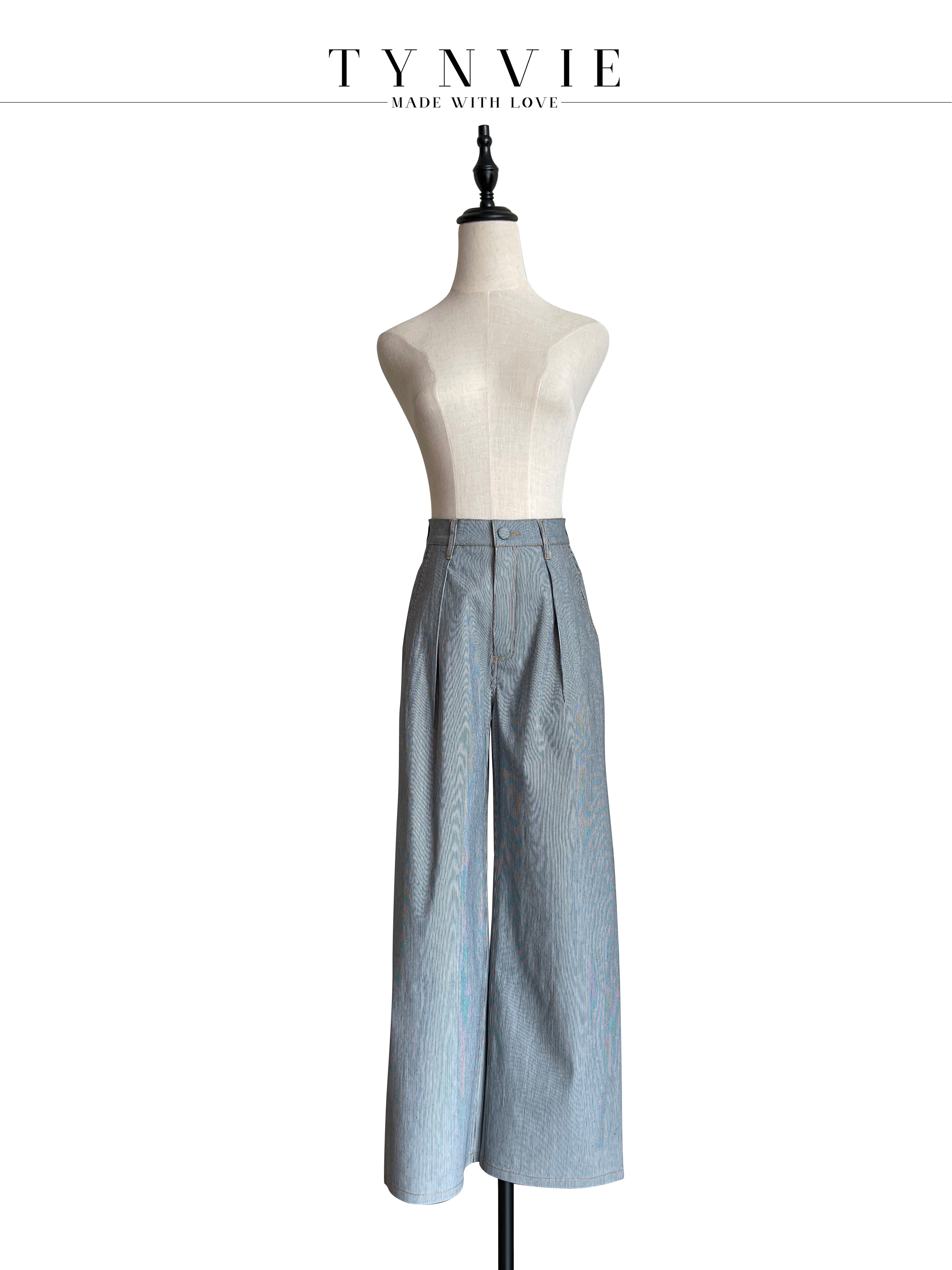 TYNVIE 插袋直筒阔腿裤-蓝条纹
