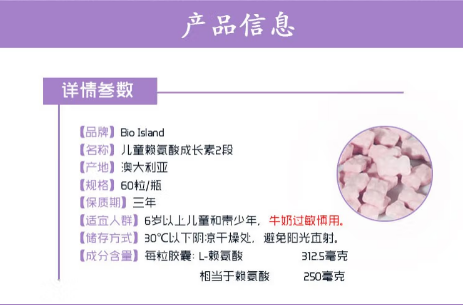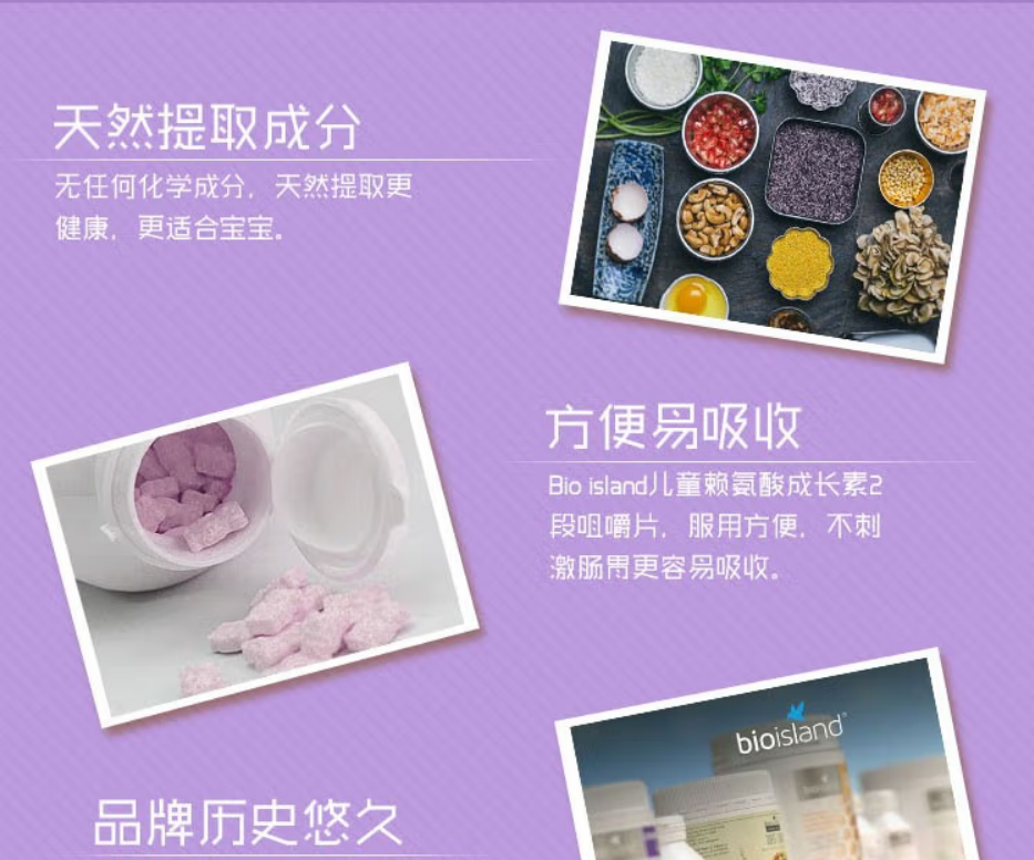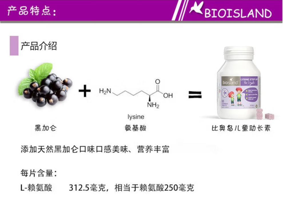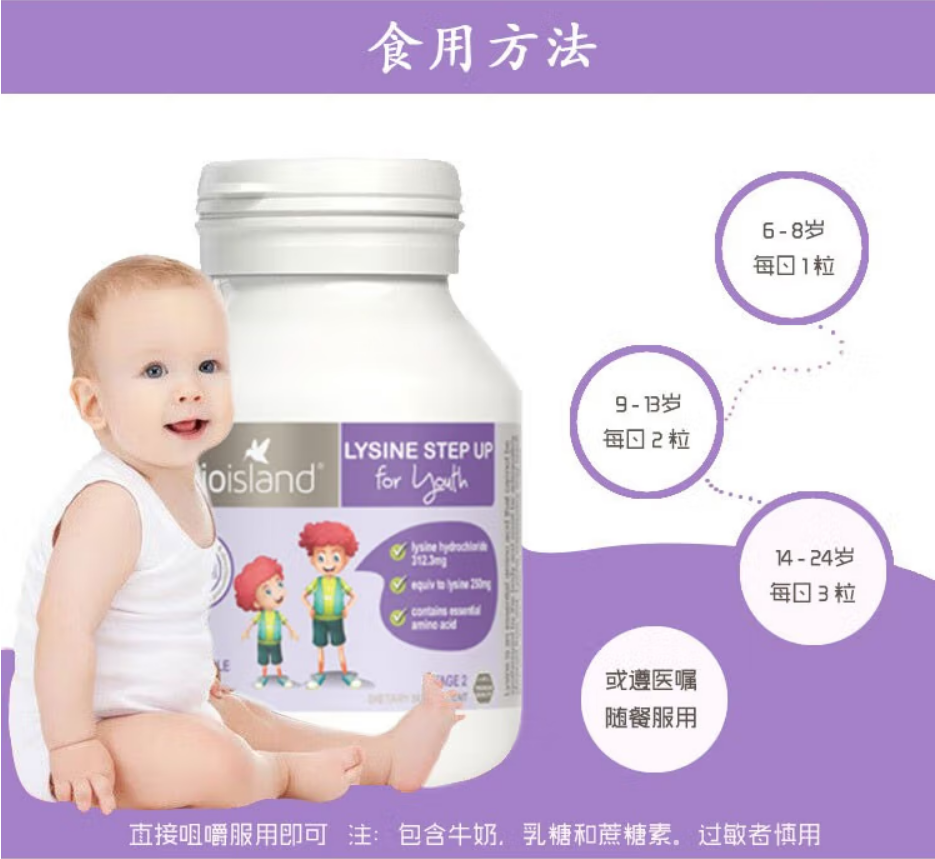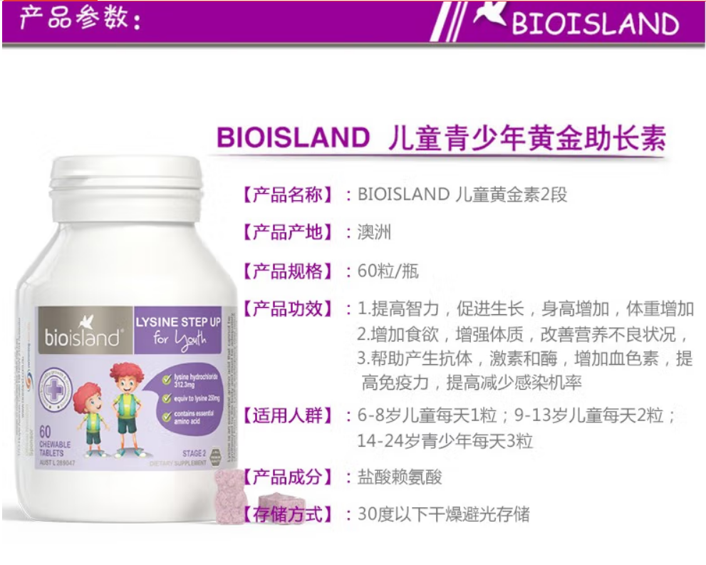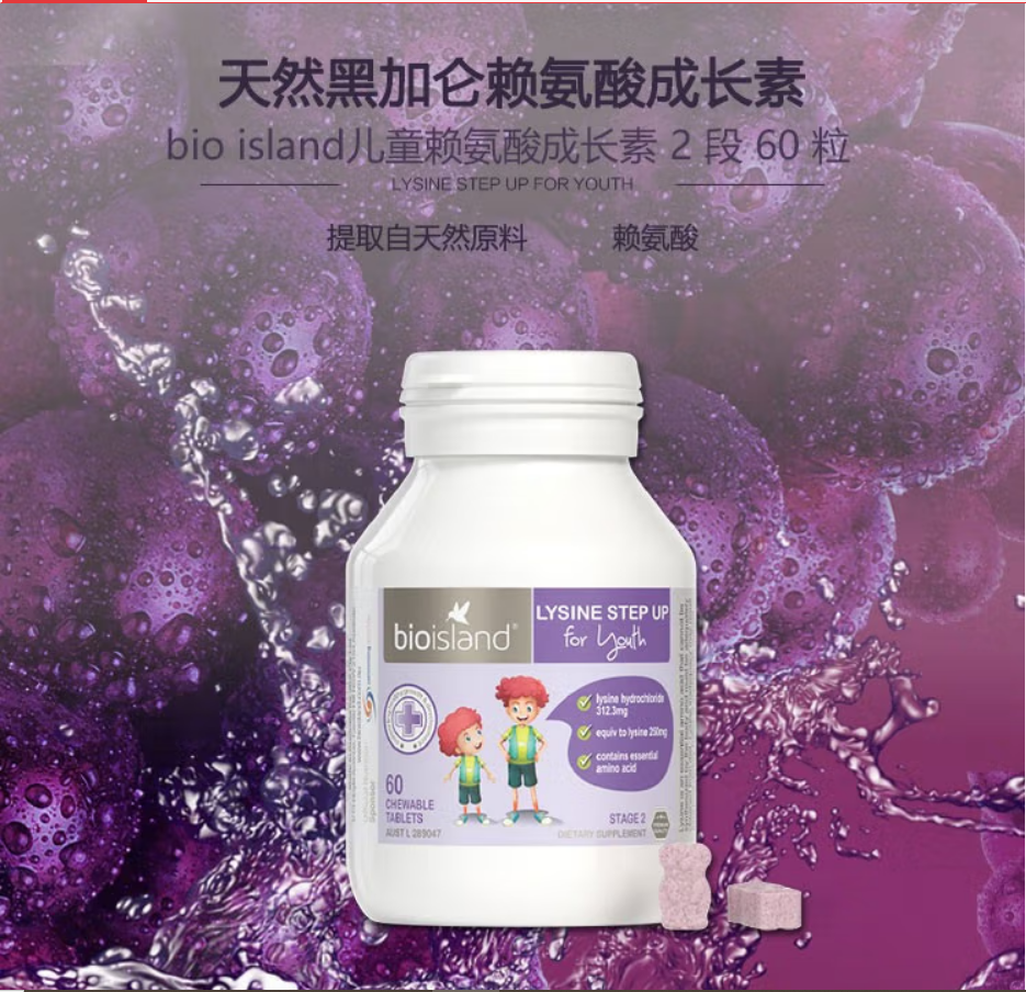 BIO ISLAND佰澳朗德 儿童青少年赖氨酸成长素胶囊2段 60片