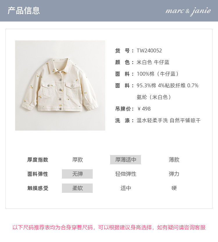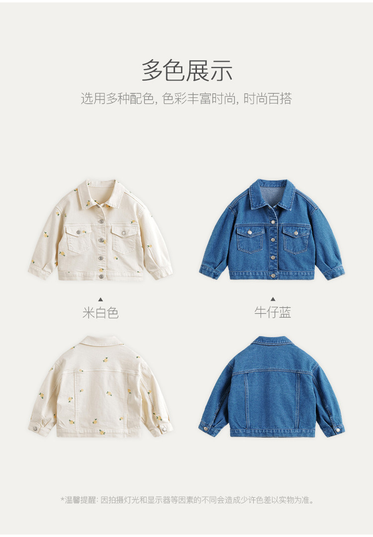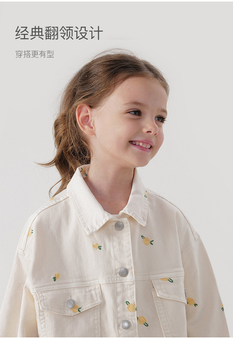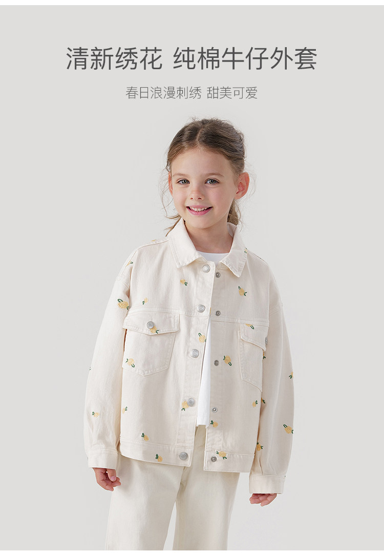 马克珍妮女童满底绣花宽松牛仔外套儿童纯棉上衣春装新款240052