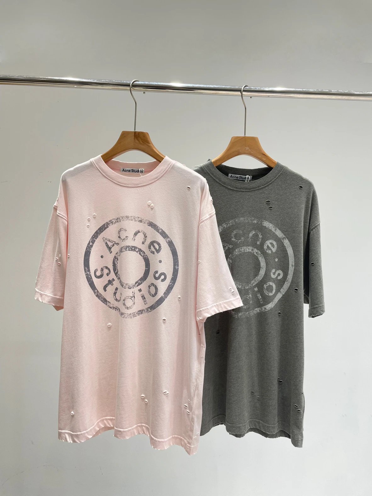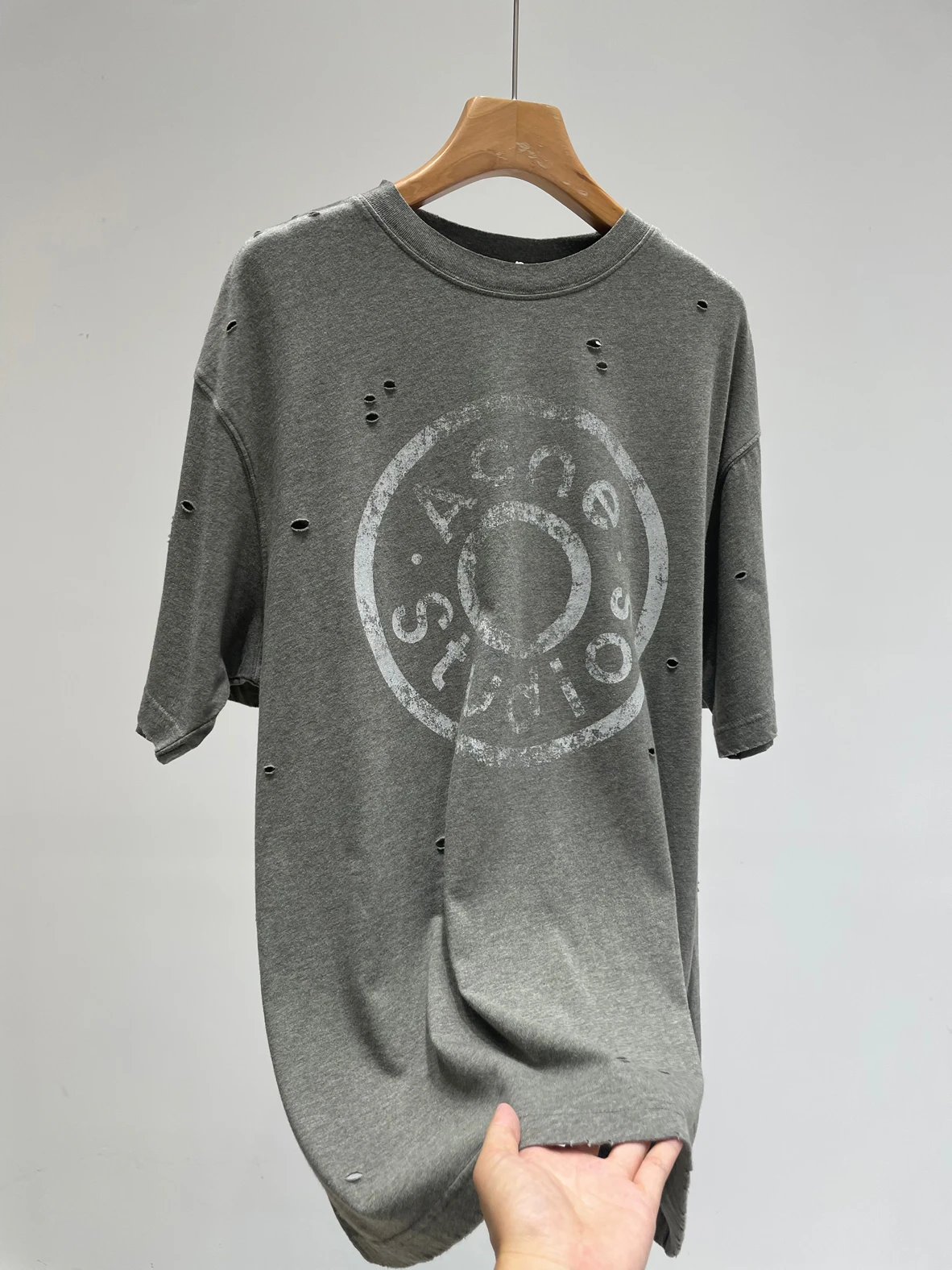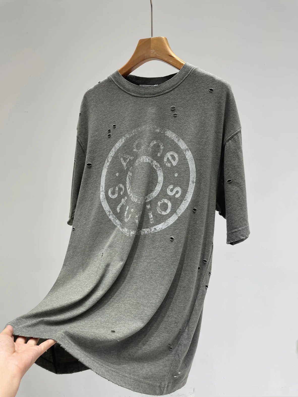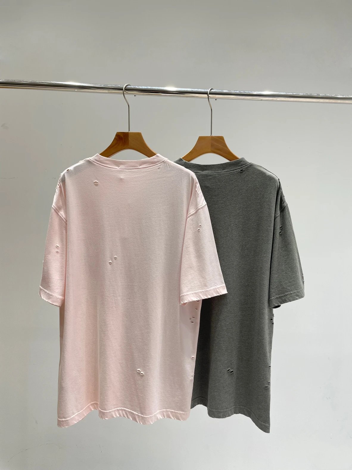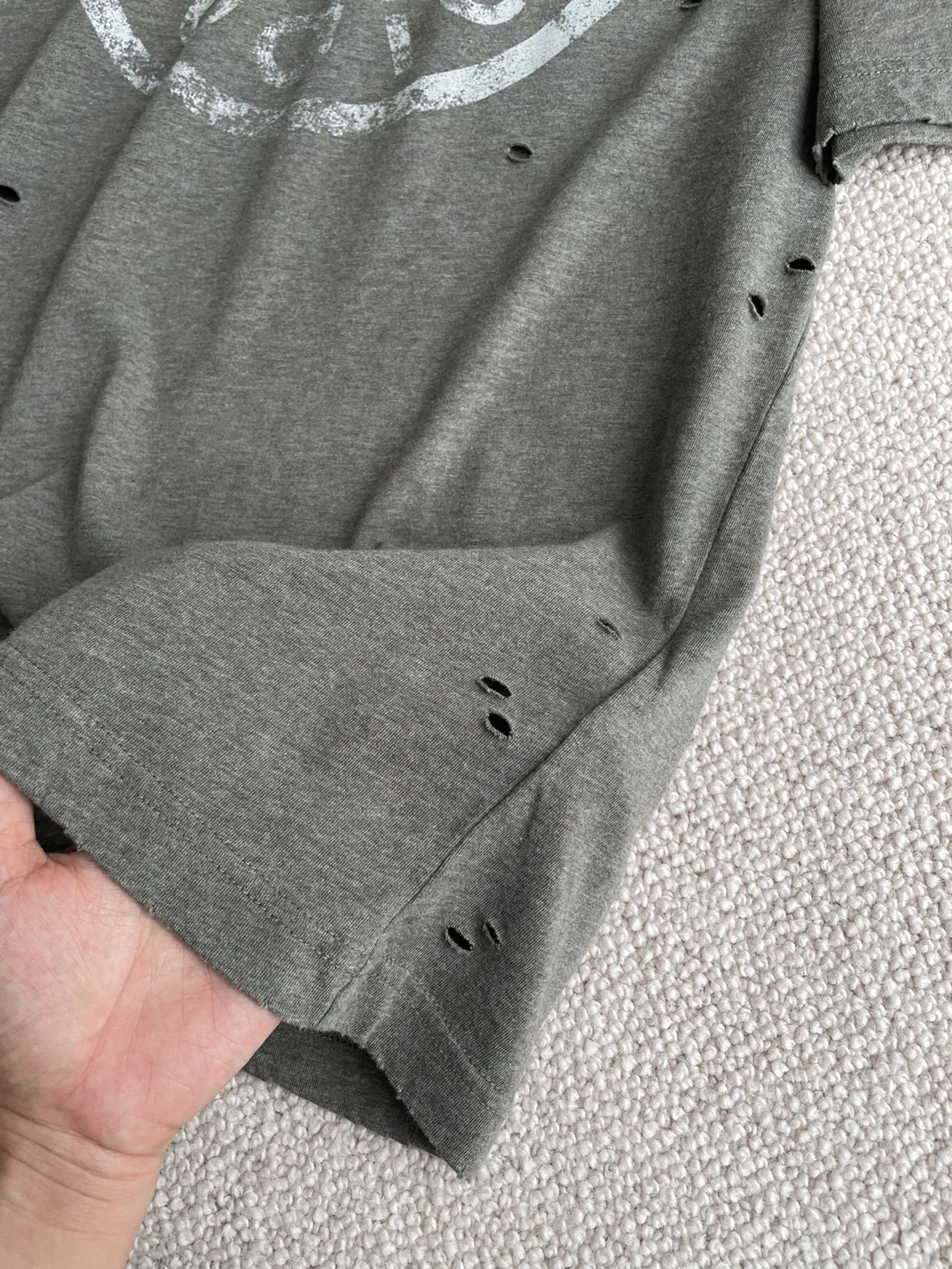 夏日必备 贸y公司 徽标破洞短袖T恤 做旧圆领短袖T恤 男女同款