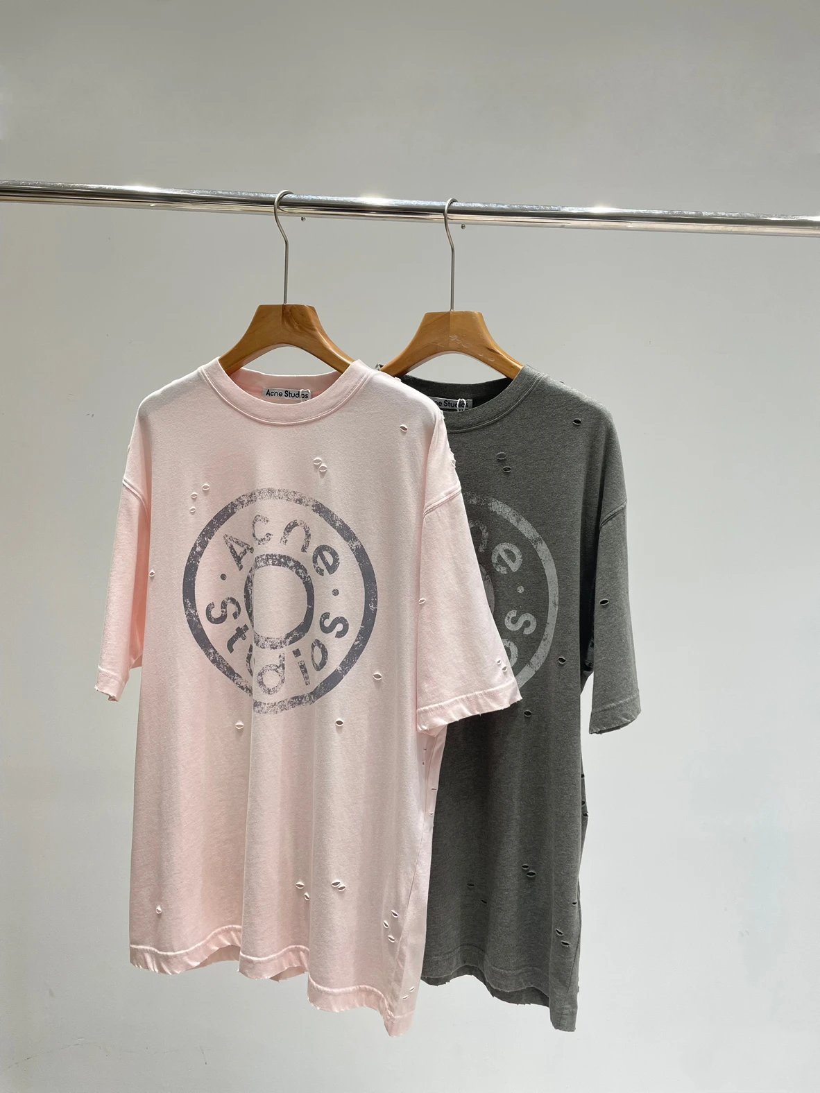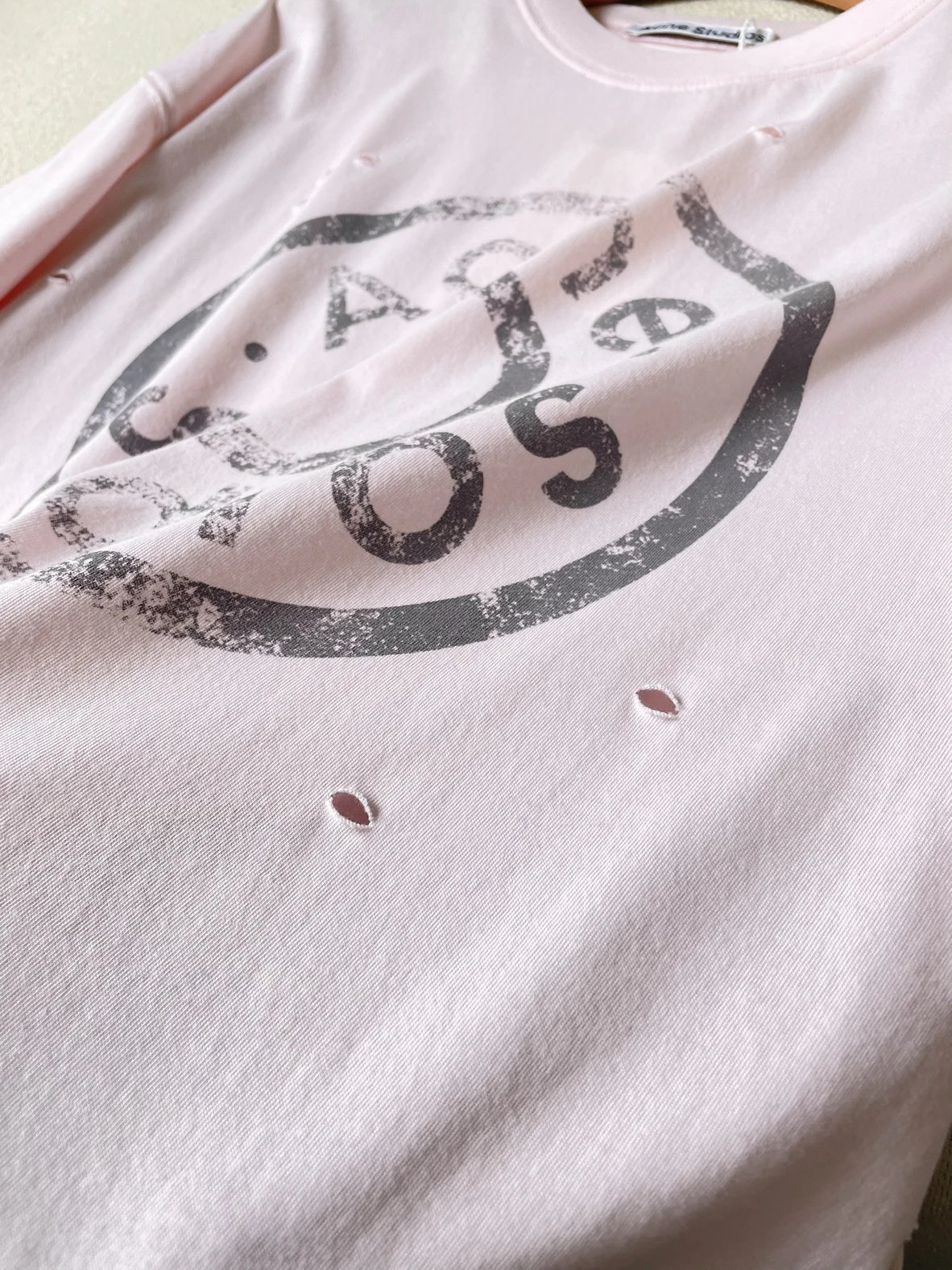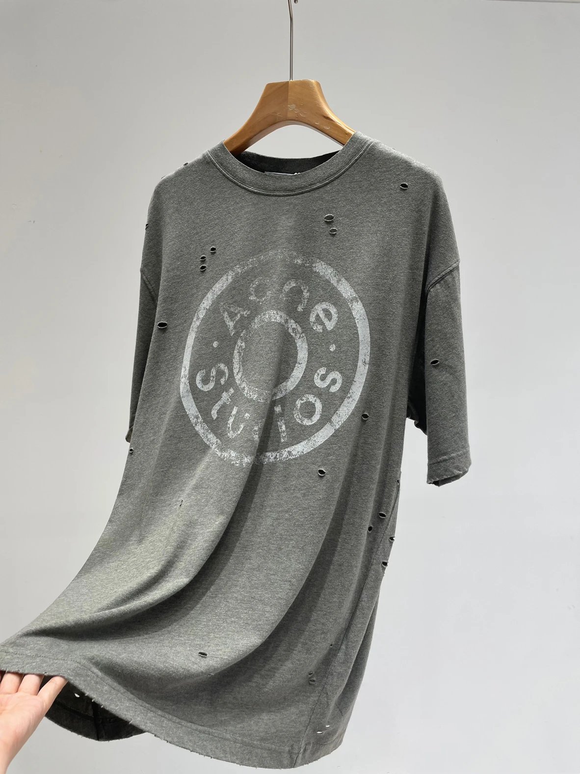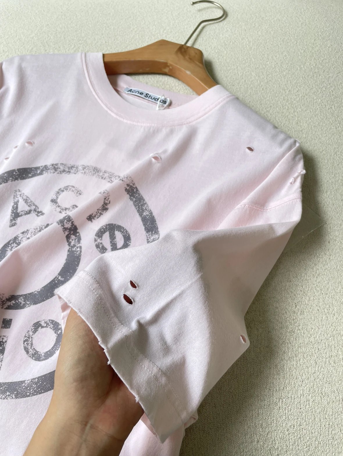 夏日必备 贸y公司 徽标破洞短袖T恤 做旧圆领短袖T恤 男女同款