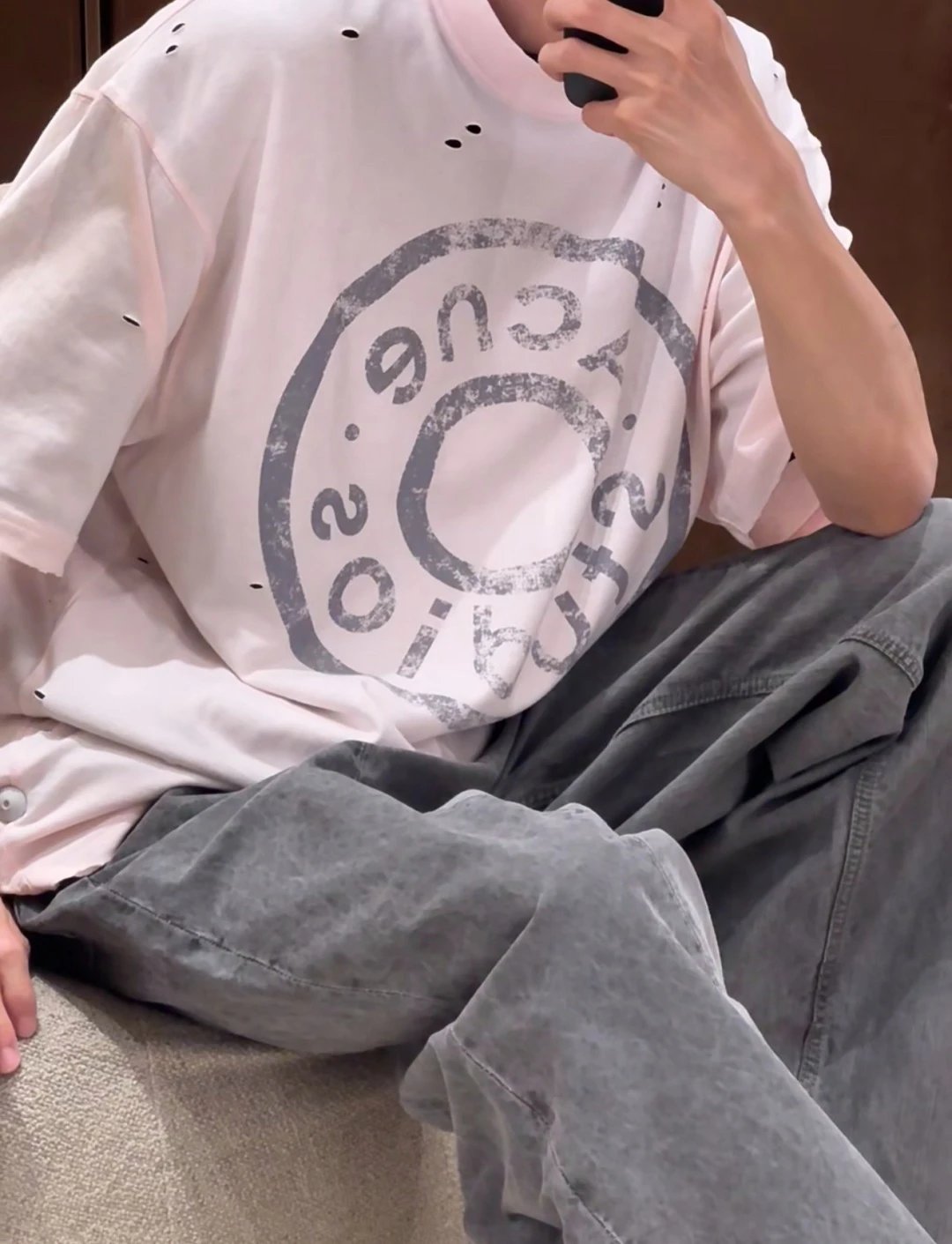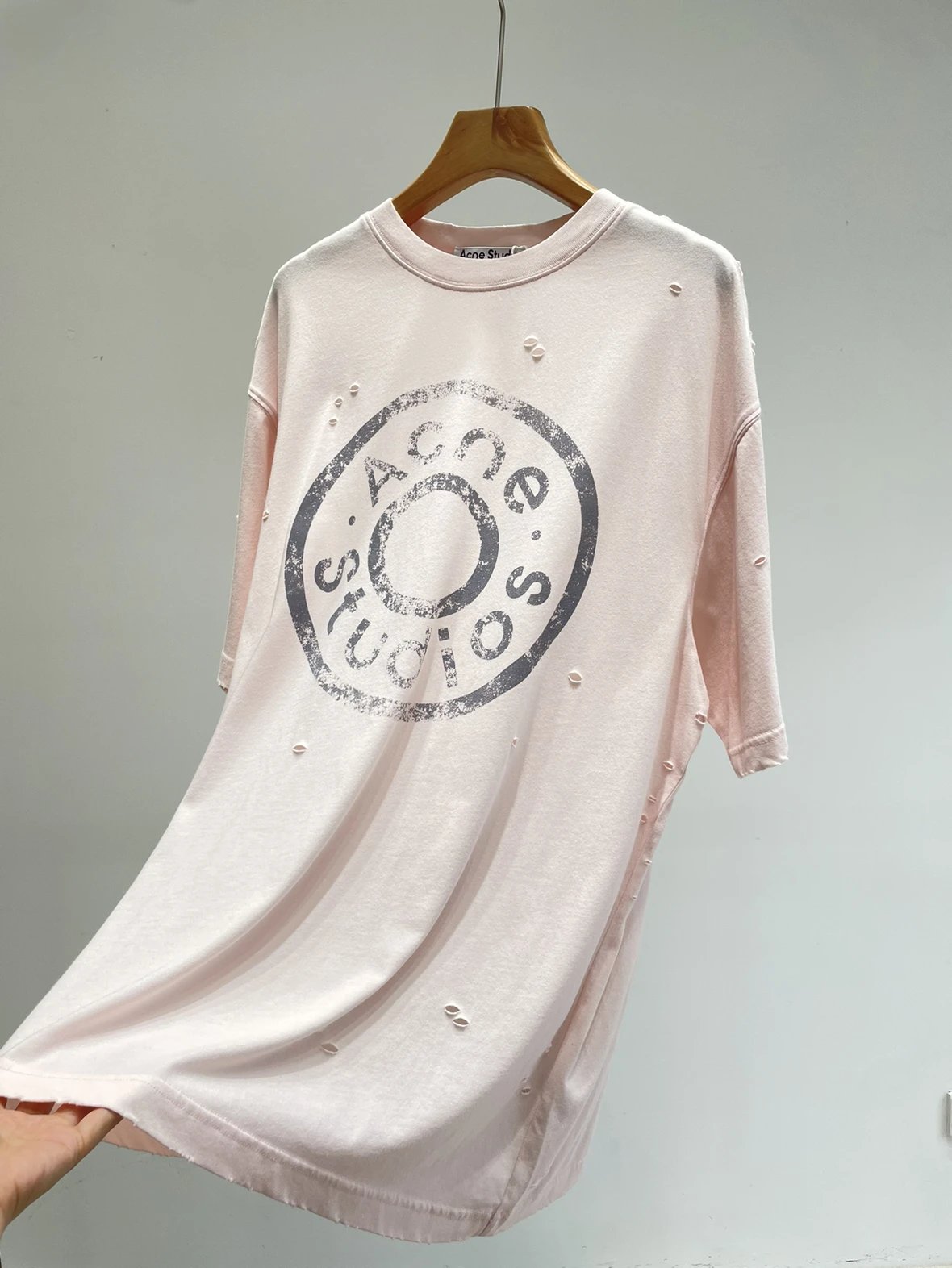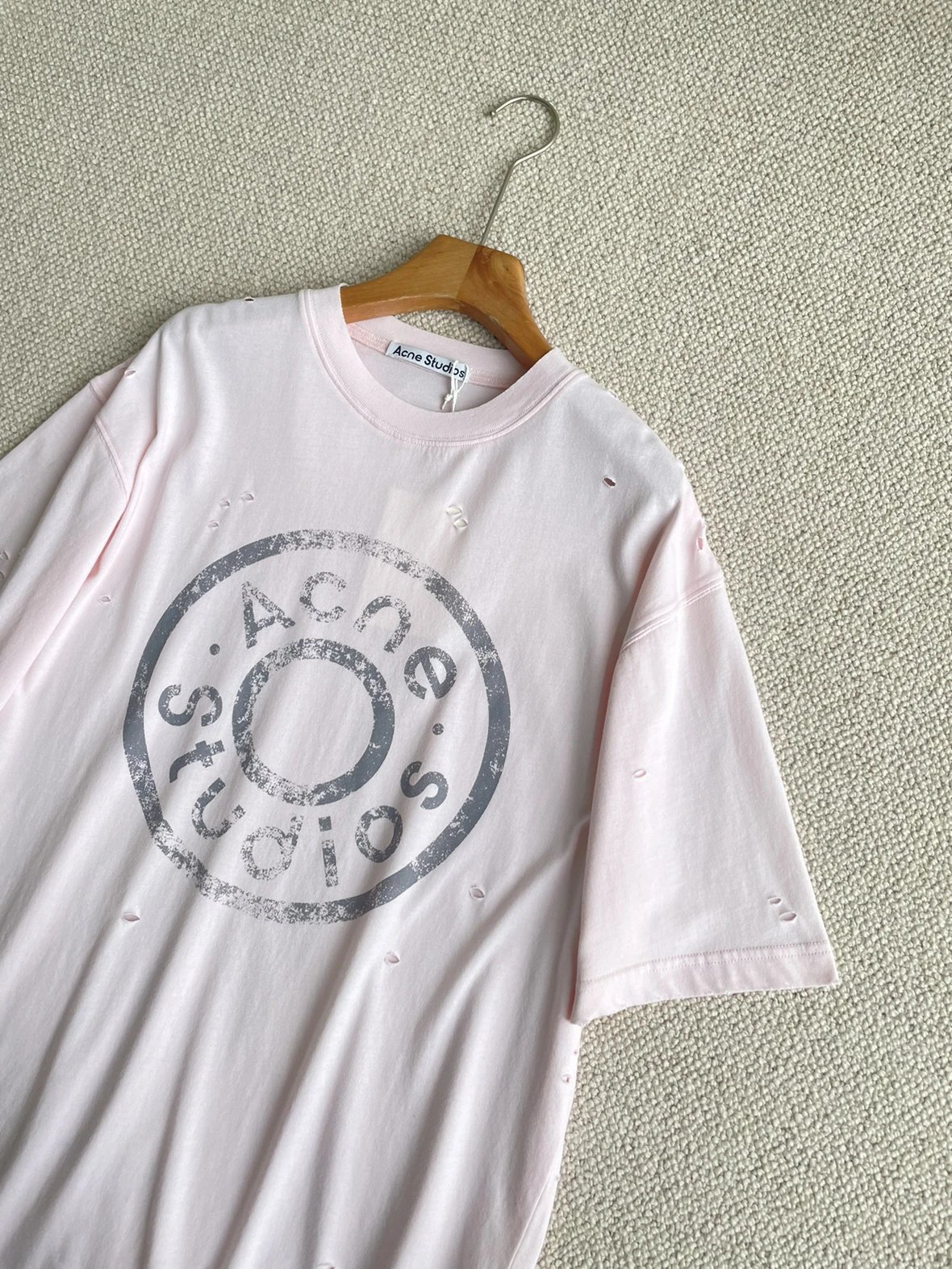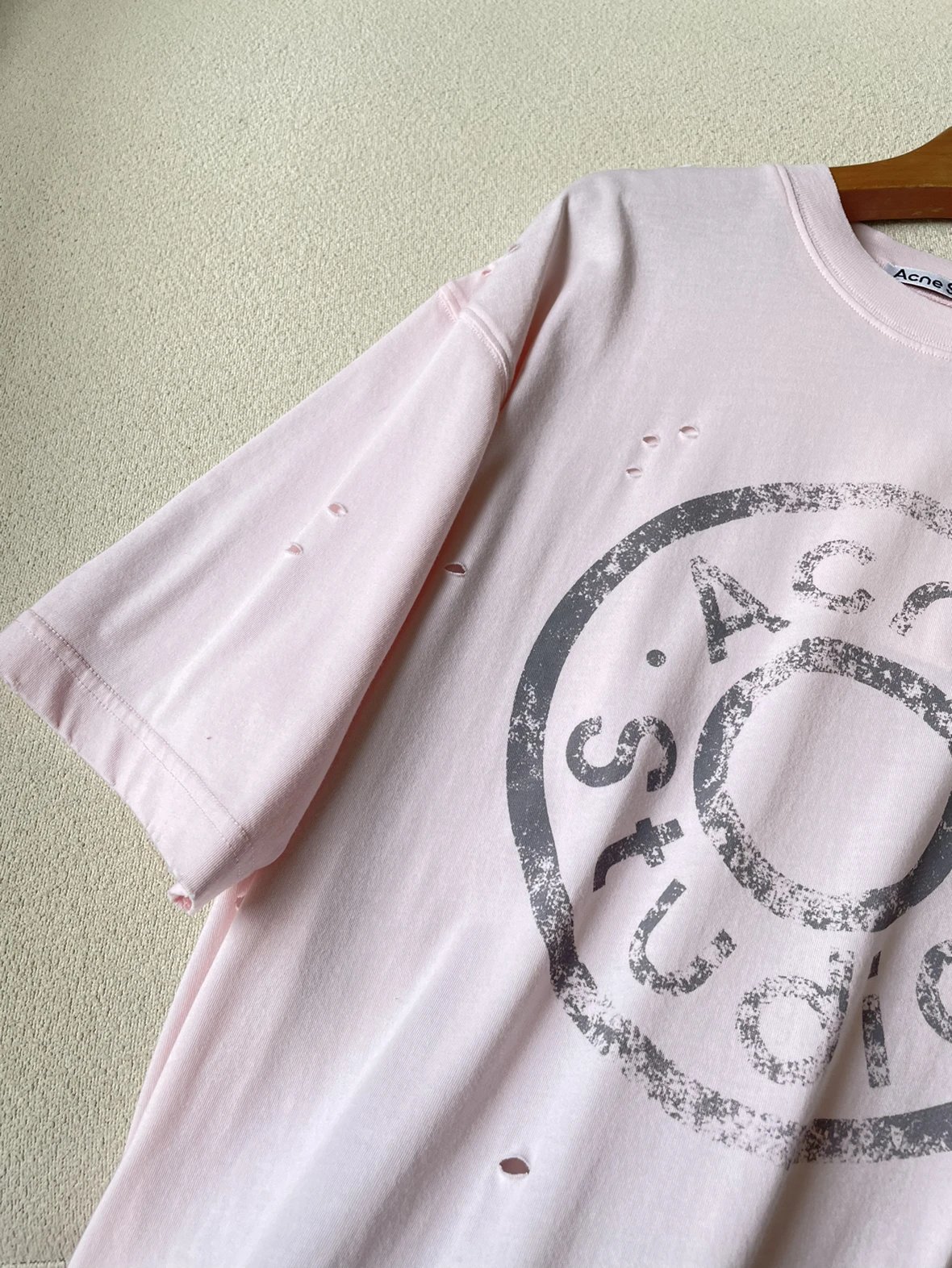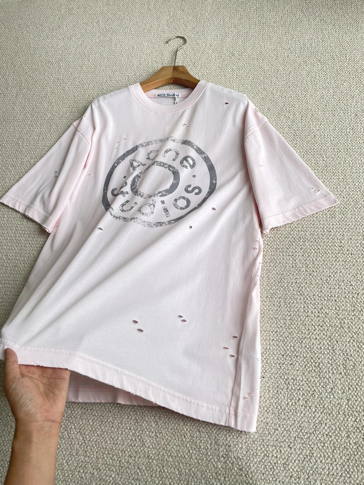 夏日必备 贸y公司 徽标破洞短袖T恤 做旧圆领短袖T恤 男女同款