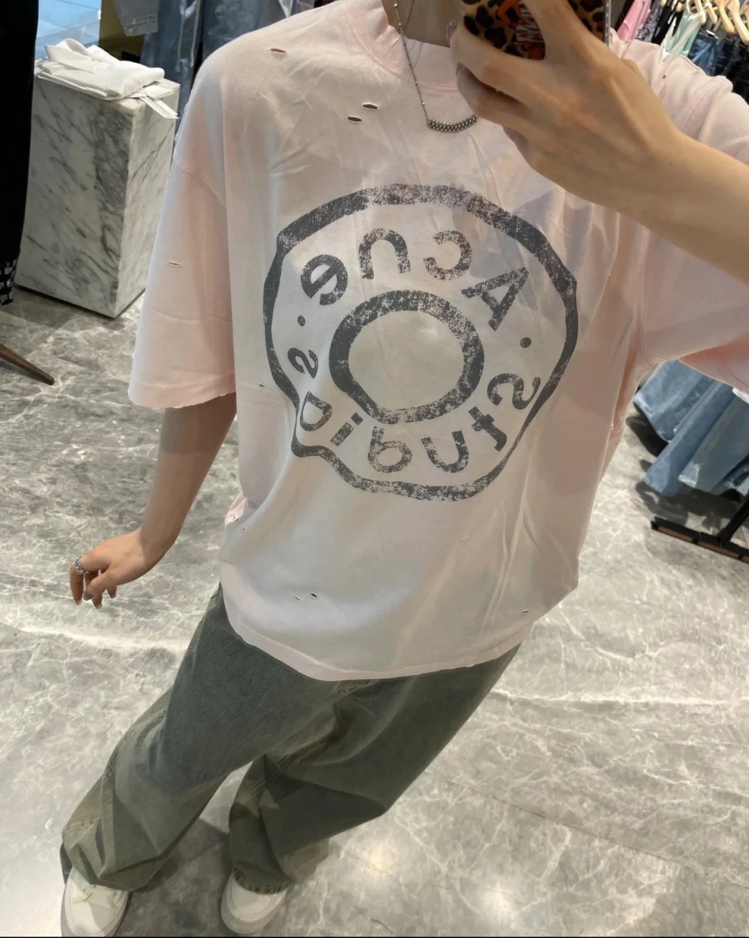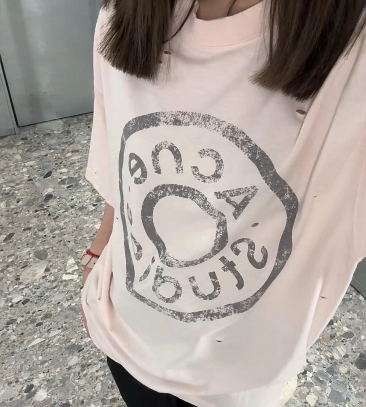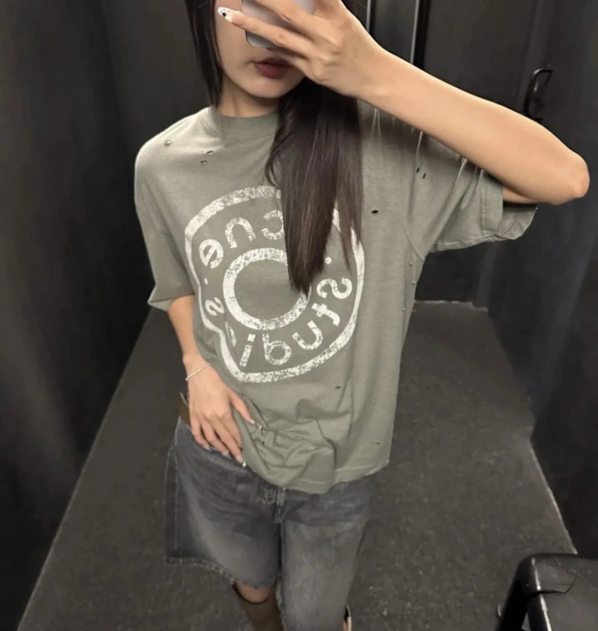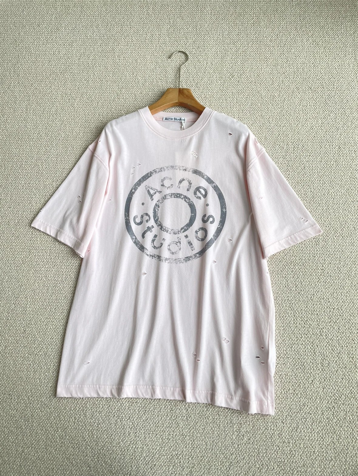 夏日必备 贸y公司 徽标破洞短袖T恤 做旧圆领短袖T恤 男女同款