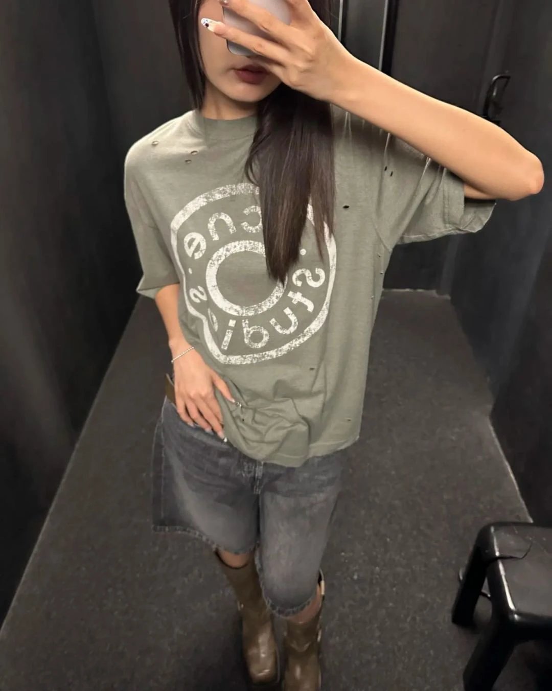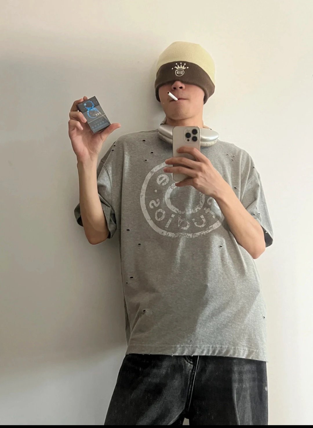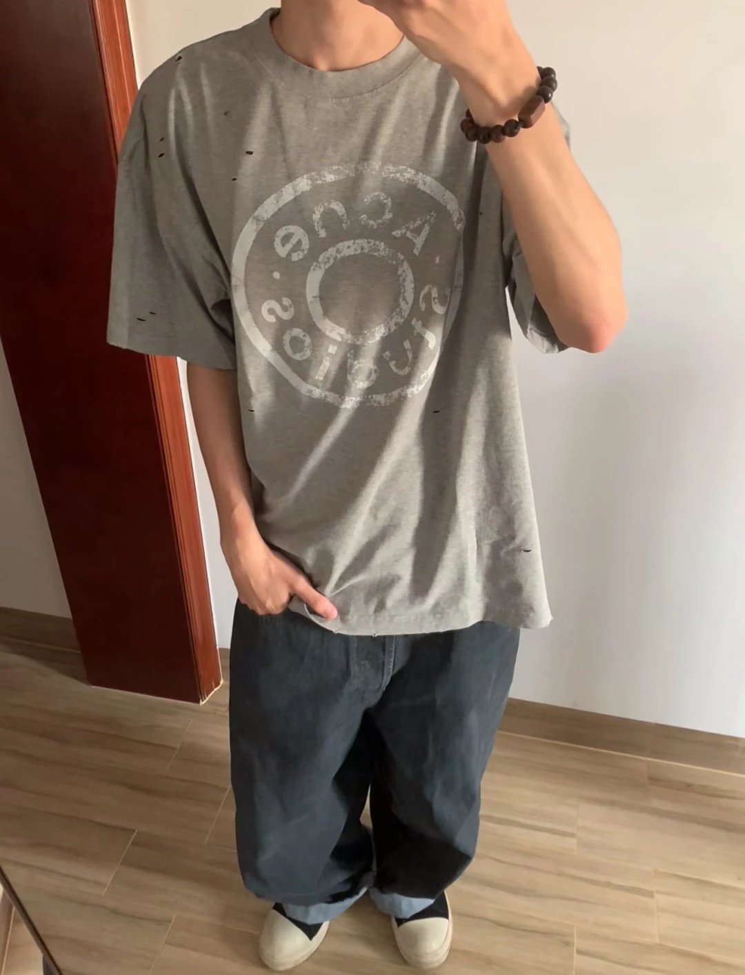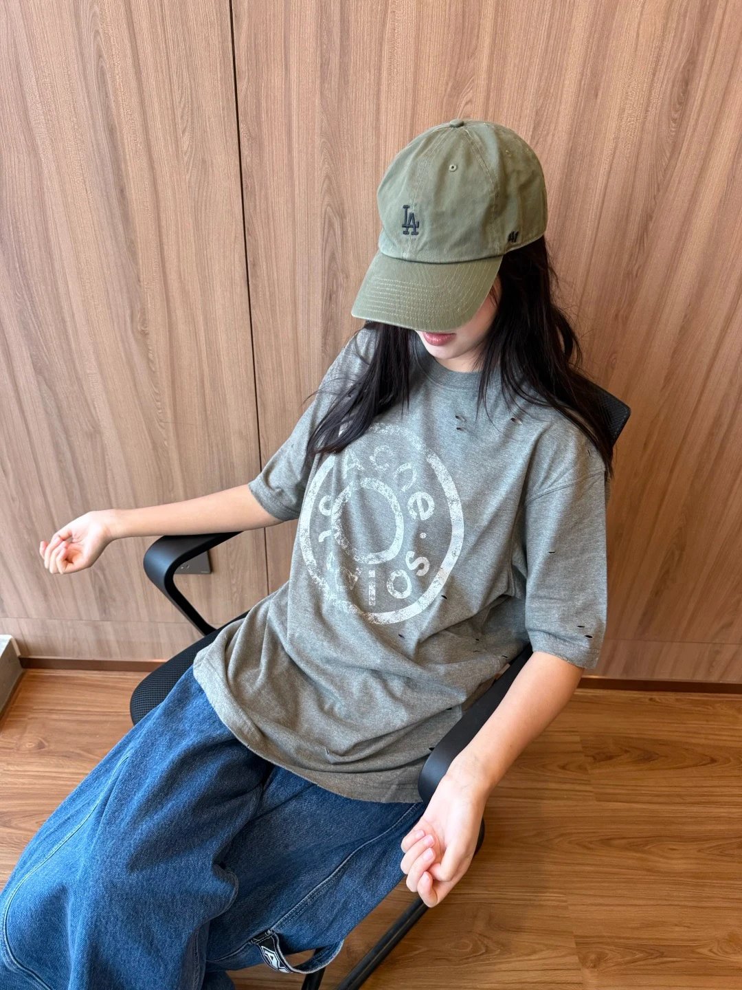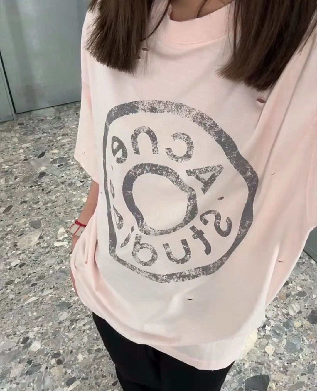 夏日必备 贸y公司 徽标破洞短袖T恤 做旧圆领短袖T恤 男女同款