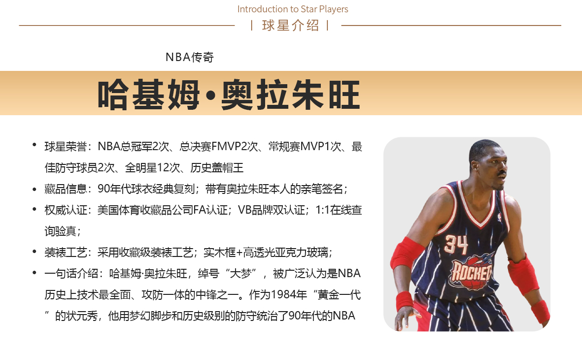 收藏系列 奥拉朱旺 火箭队34号蓝色 亲笔签名球衣(仅支持小程序下单 约45天到货)
