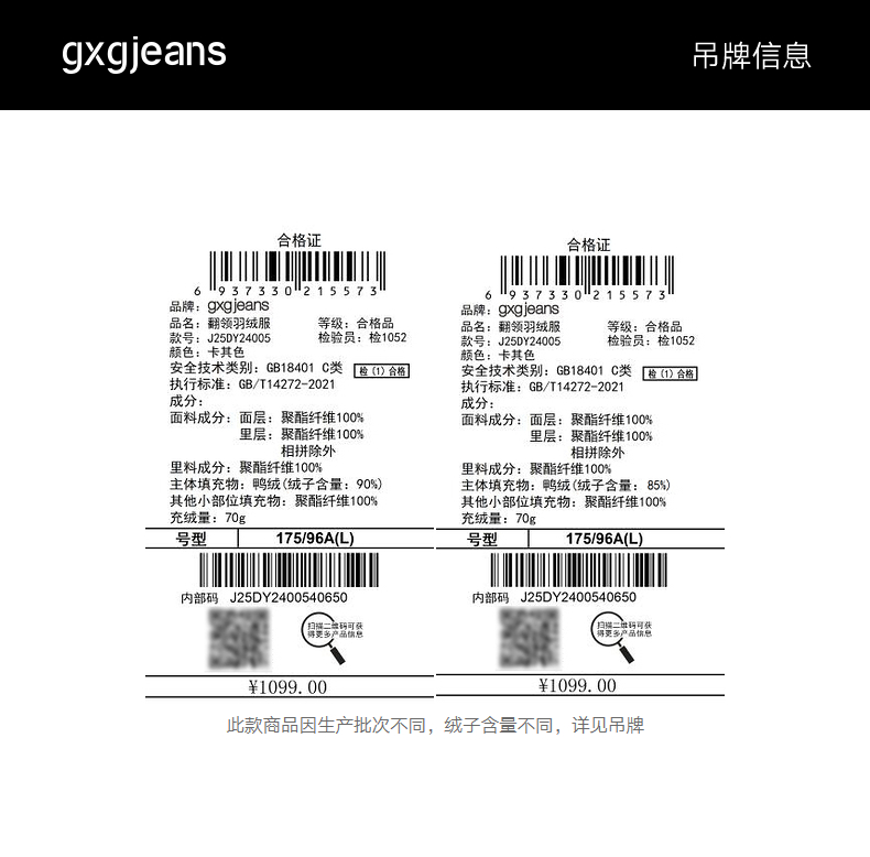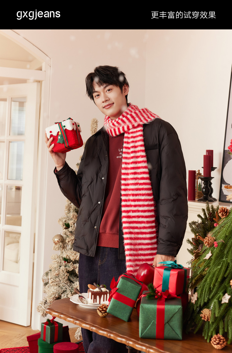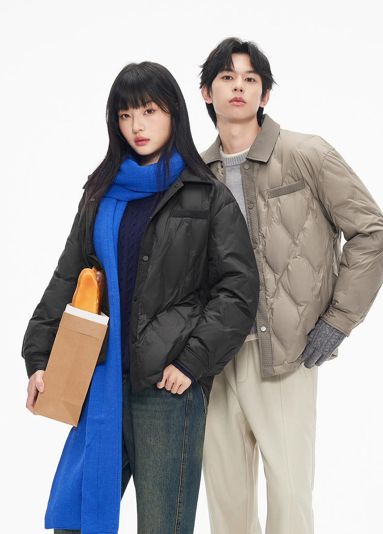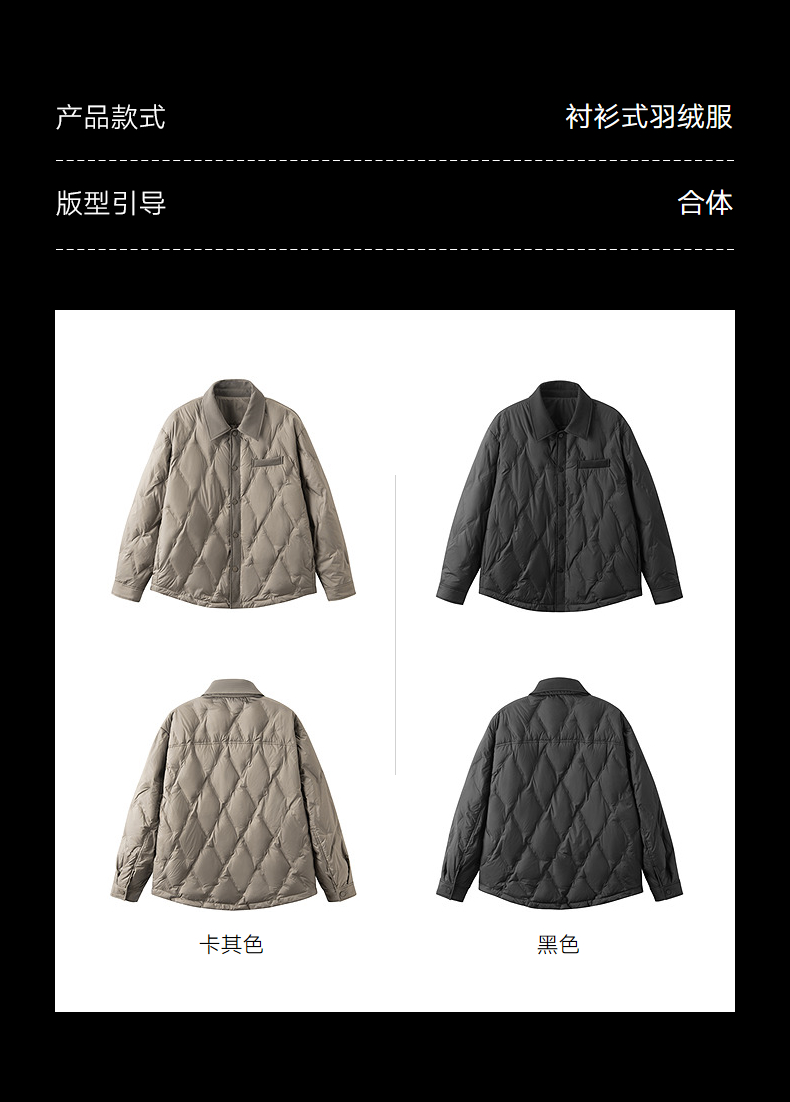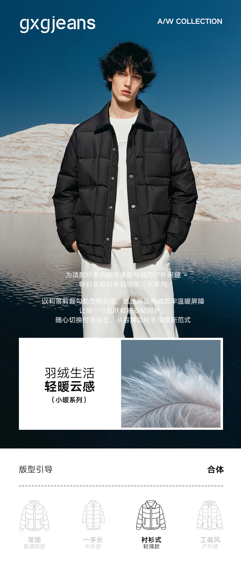gxg.jeans男装 衬衫式轻薄菱格设计羽绒服休闲外套25年冬新品